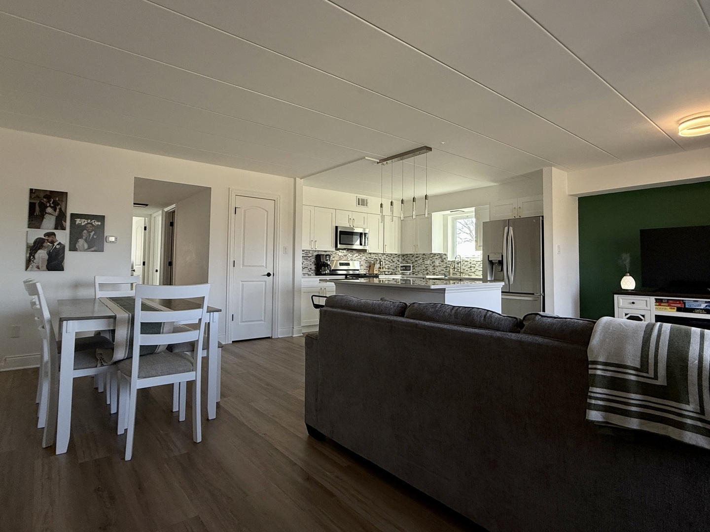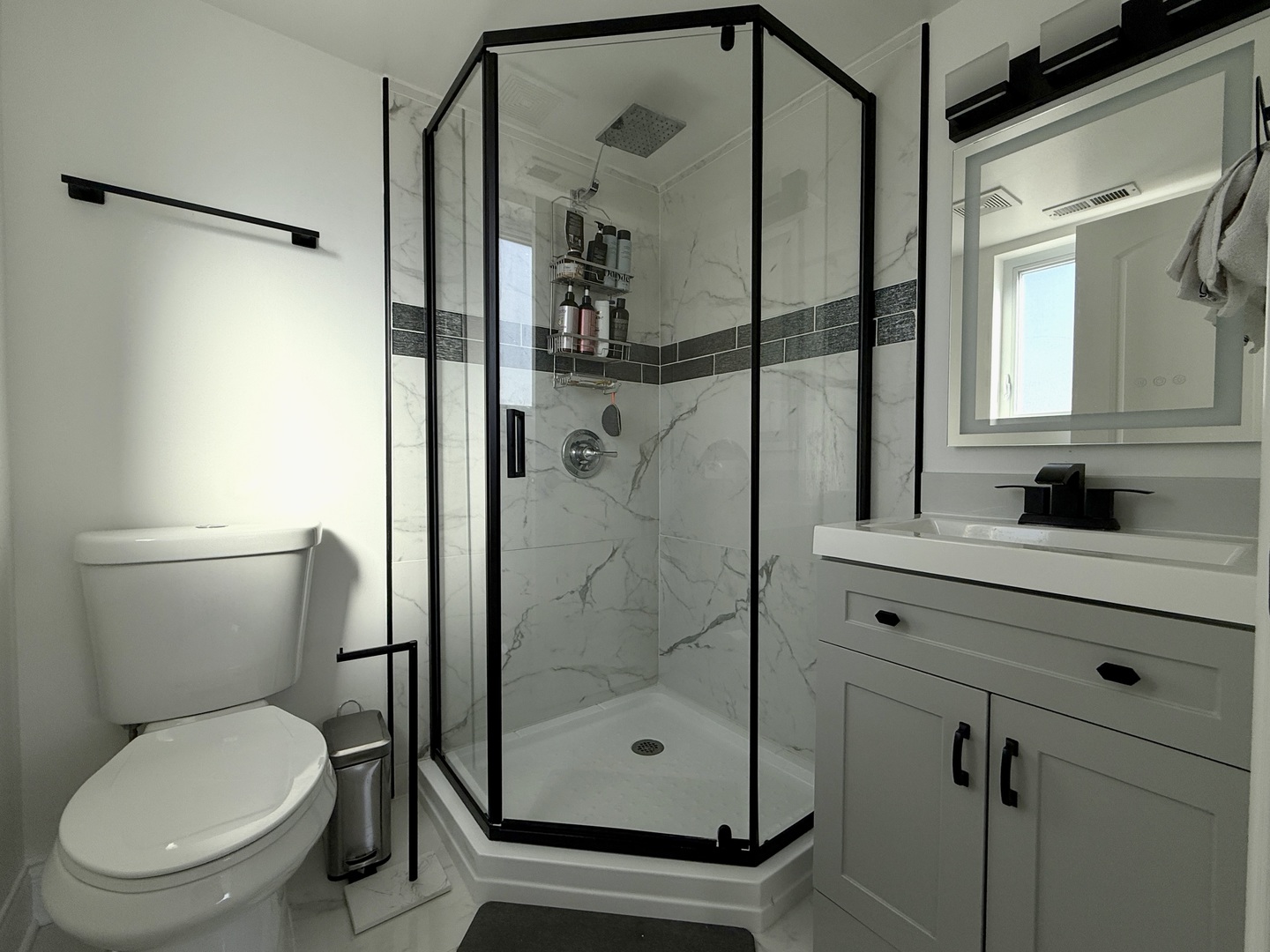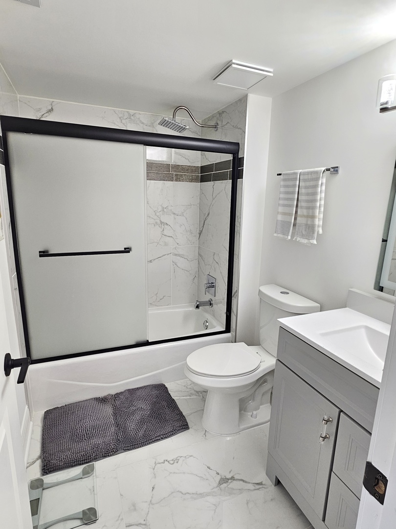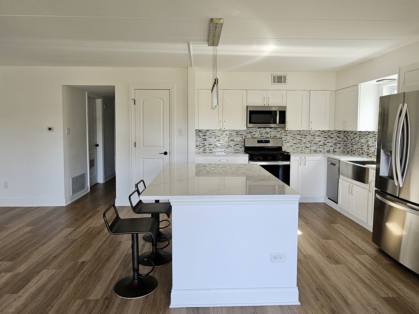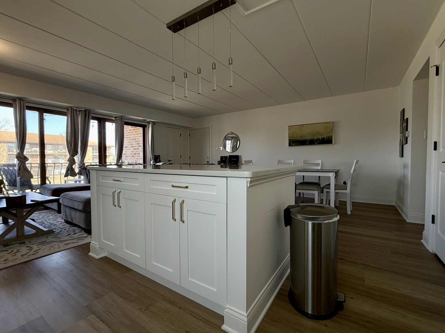 Luxuriously remodeled two bedroom, two full bath unit with full length balcony overlooking a park-like courtyard with an amazing green space. Chef’s kitchen with modern shaker cabinets, stainless steel farmhouse sink, pantry and huge island with seating. Separate table space adjacent to kitchen. Low maintenance, Waterproof vinyl plank flooring installed in all high traffic areas. Two generous size bedrooms including a master suite with separate closets and a spa-like, private bath. Laundry room features ample storage and full size washer and dryer included in sale. A brick 2 car garage features additional storage as well. New windows installed. Central air. Low real estate taxes and monthly HOA assessments! Conveniently located near parks, trails, grocery stores, shops and restaurants in a highly sough after location in Orland Park.