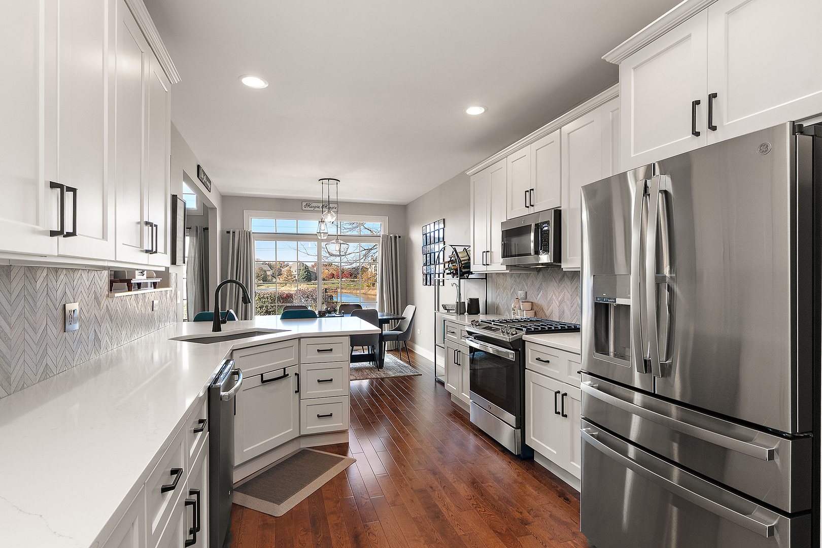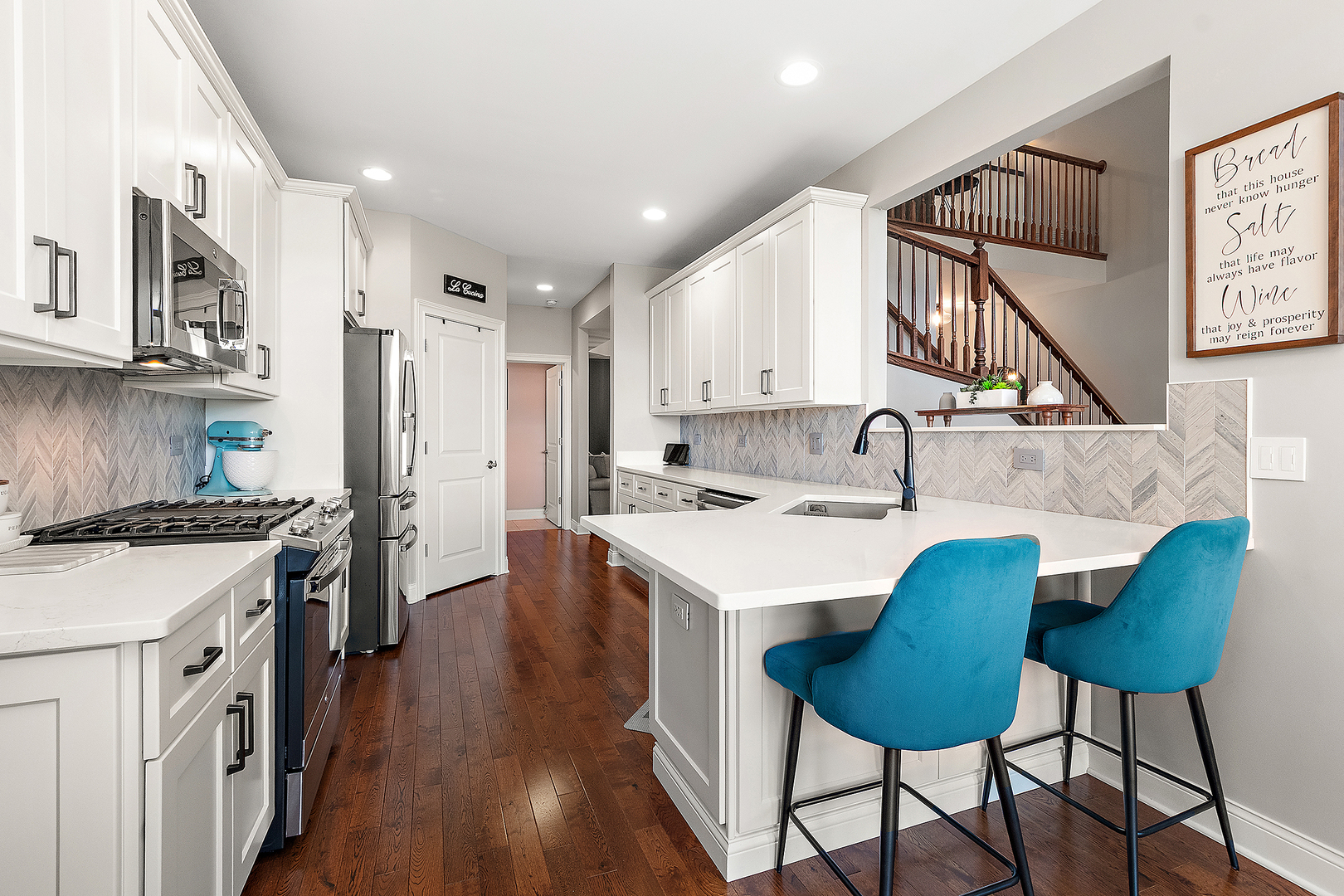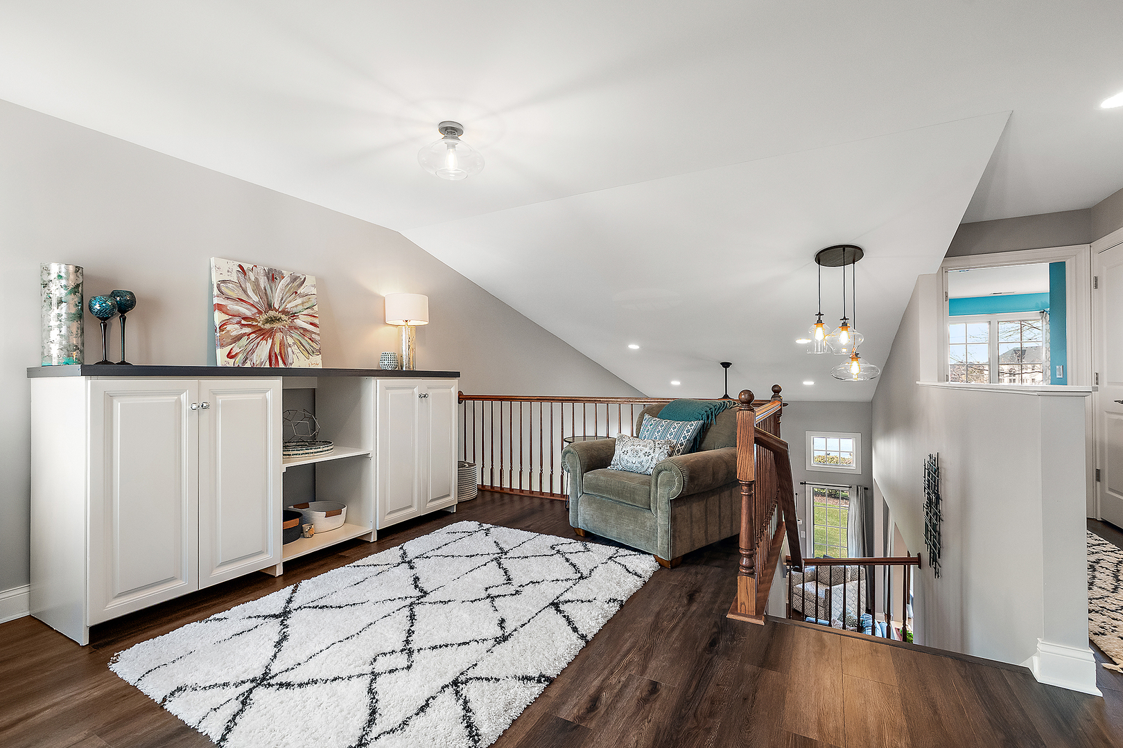 There’s a rare calm that comes with life by the water. The quiet stillness of early mornings, sunlight sparkling across still surfaces, and evenings that fade into painted skies. This turn-key, beautifully updated 2-bedroom + loft, 3.5-bath townhome in Lighthouse Pointe captures that sense of peace and connection, blending thoughtful design with effortless comfort. Inside, the two-story living room welcomes you with warmth and natural light, featuring hardwood floors, a granite-surround fireplace, and tall windows framing serene water views. The custom kitchen was curated with both style and intention, offering quartz countertops, a striking herringbone-pattern stone backsplash, stainless steel appliances, a composite sink, pantry closet, and soft-close cabinetry. The adjoining dining area opens to the patio through oversized sliding doors topped with a transom window, creating a seamless transition between indoor comfort and outdoor tranquility. A formal dining room, currently styled as a sitting area, adds flexibility and sophistication with hardwood floors and a tray ceiling. The main-level laundry room, complete with a sink and storage, adds convenience to daily living. Upstairs, the primary suite feels like a private retreat with vaulted ceilings, dual walk-in closets featuring custom organizers, and a spa-inspired bath with a whirlpool tub, separate shower, and granite double vanity. The loft provides an ideal space for work, reading, or quiet reflection, while the second bedroom enjoys gentle morning light and peaceful water views. The finished basement extends your living space with a recreation area/workout area, a full bath with heated floors and a double walk-in shower, plus a utility room and additional area for future expansion along with abundant storage space. This home has been meticulously maintained and offers maintenance-free living, with landscaping and snow removal fully managed so you can truly relax and enjoy the setting. Outside, the concrete patio invites you to unwind beneath the open sky, perfect for morning coffee, sunset gatherings, or simply a moment of stillness at the end of your day. Ideally located near Starbucks, scenic walking paths, and with access to Old Plank Trail, this home offers a tranquil waterfront lifestyle that combines natural beauty, everyday convenience, and easy access to major expressways for commuters.
