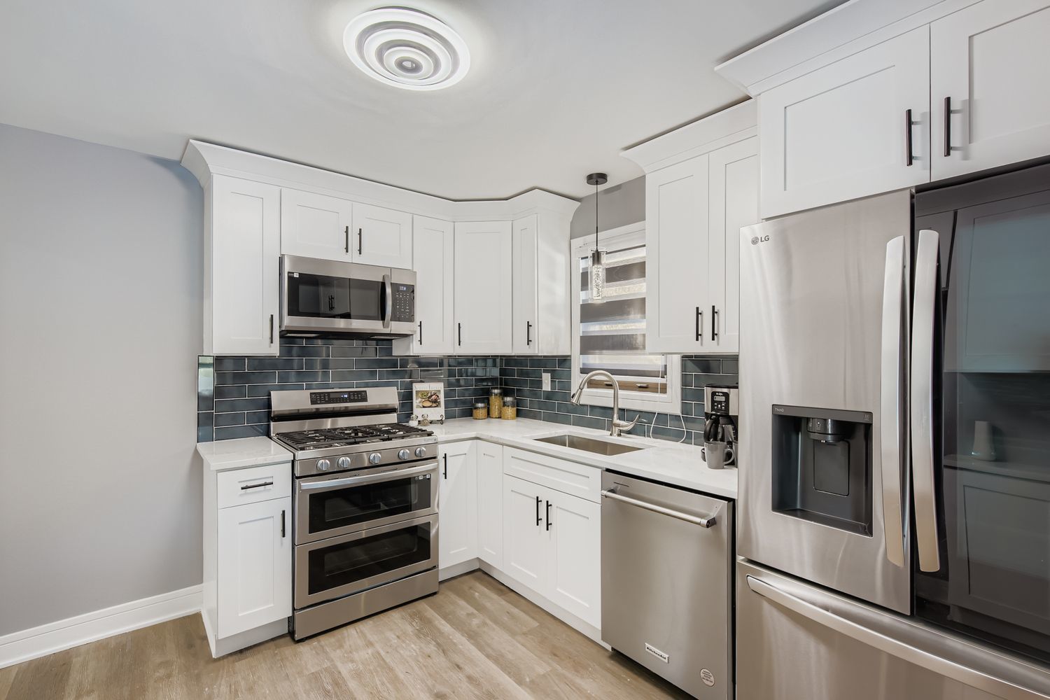 Fabulous cape cod in great location ready for a new family! 3+1 bedrooms and 2 1/2 baths. New tear-off roof, kitchen with quartz counters, soft closure cabinets + SS appliances. Full finished basement. Large back porch that leads to gigantic pool with platform that doesn’t take away from large backyard! Oversized 2.5 car garage.