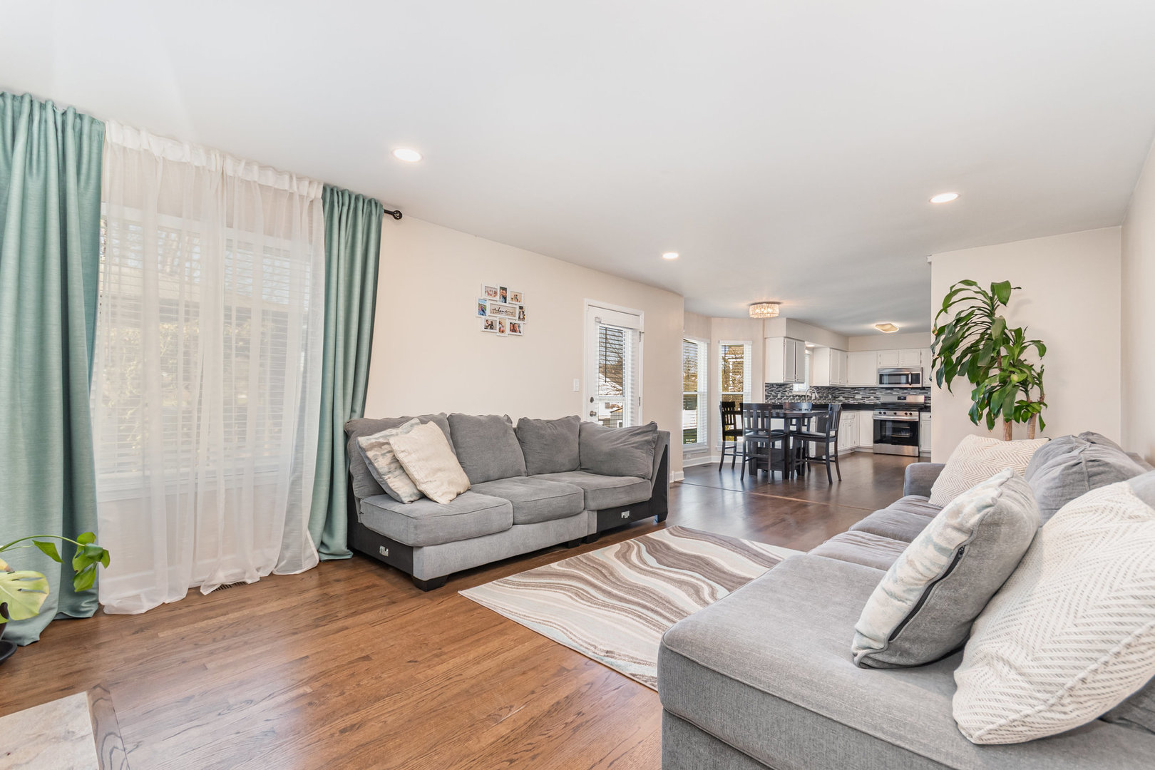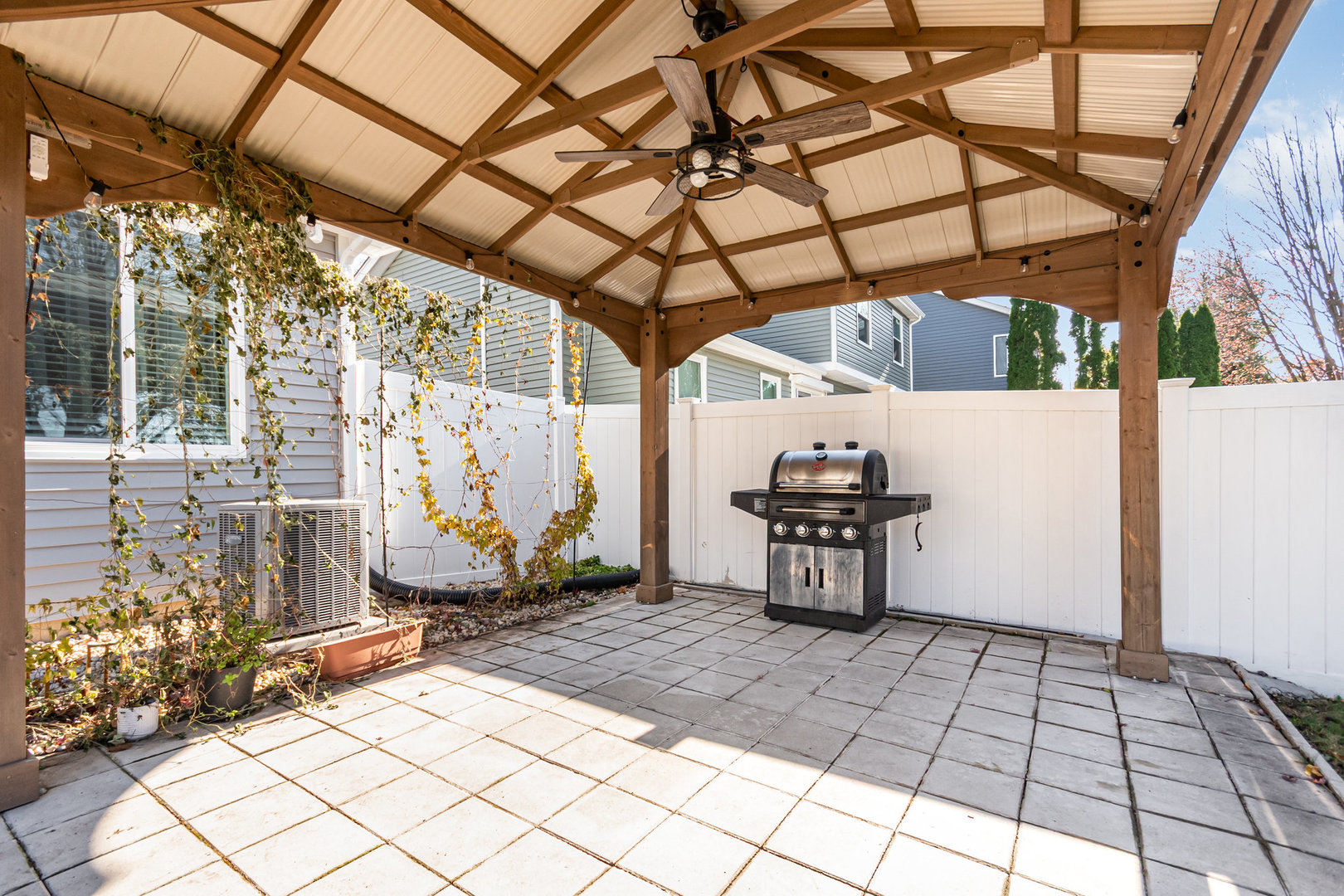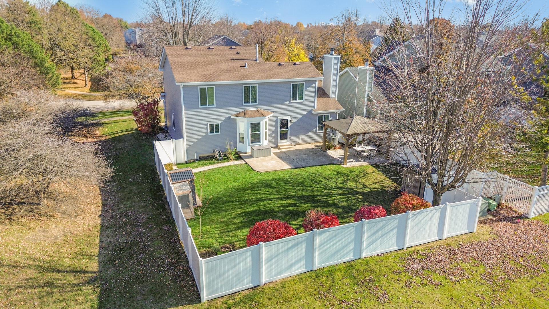 Welcome to this beautifully maintained and extensively updated 4-bedroom home, perfectly situated at the end of a quiet street and backing to open green space-one of the most desirable locations in Lakewood Crossing. Inside, gleaming hardwood floors (2022) flow throughout the main level, creating a warm and inviting first impression. The living and dining rooms lead seamlessly into the updated kitchen, featuring refaced cabinetry (2022), quartz countertops (2022), mosaic tile backsplash (2022), stainless steel appliances including a new stove (2025), and a dedicated breakfast area. The adjacent family room, complete with a natural stone fireplace, offers a comfortable space for everyday living and entertaining. A refreshed half bath (2022) completes the main level. Upstairs, newer carpet (2022) adds comfort throughout. The primary suite includes an en-suite bath updated in 2025 with new vinyl flooring, lighting, and a freshly coated tub. Three additional bedrooms and a full hallway bath provide ample room for family, guests, or home office needs. The finished basement, updated with new vinyl flooring (2022), offers valuable additional living space-perfect for a rec room, home gym, or media area. Major improvements provide peace of mind, including interior paint throughout (2022), updated doors (2025), light fixtures (2022), ejector pump (2024), new washer (2025), all new windows (2024), driveway coating (2025), hardscape enhancements (2025), and all new siding (2025). The fully fenced backyard is a private retreat with plenty of room to relax or play, featuring a patio and a charming gazebo (2023). Located within the highly rated Indian Prairie School District and just minutes from the Route 59 shopping corridor and the 1,829-acre Springbrook Prairie Forest Preserve-offering trails for walking, jogging, biking, and horseback riding-this home combines comfort, convenience, and exceptional updates. A must-see!