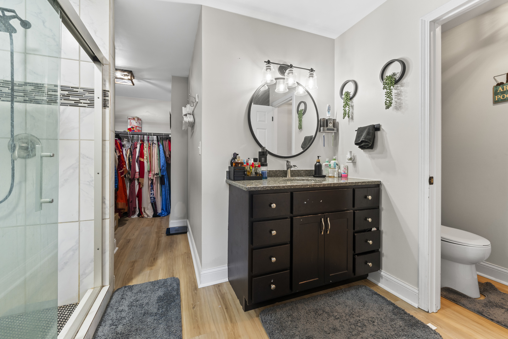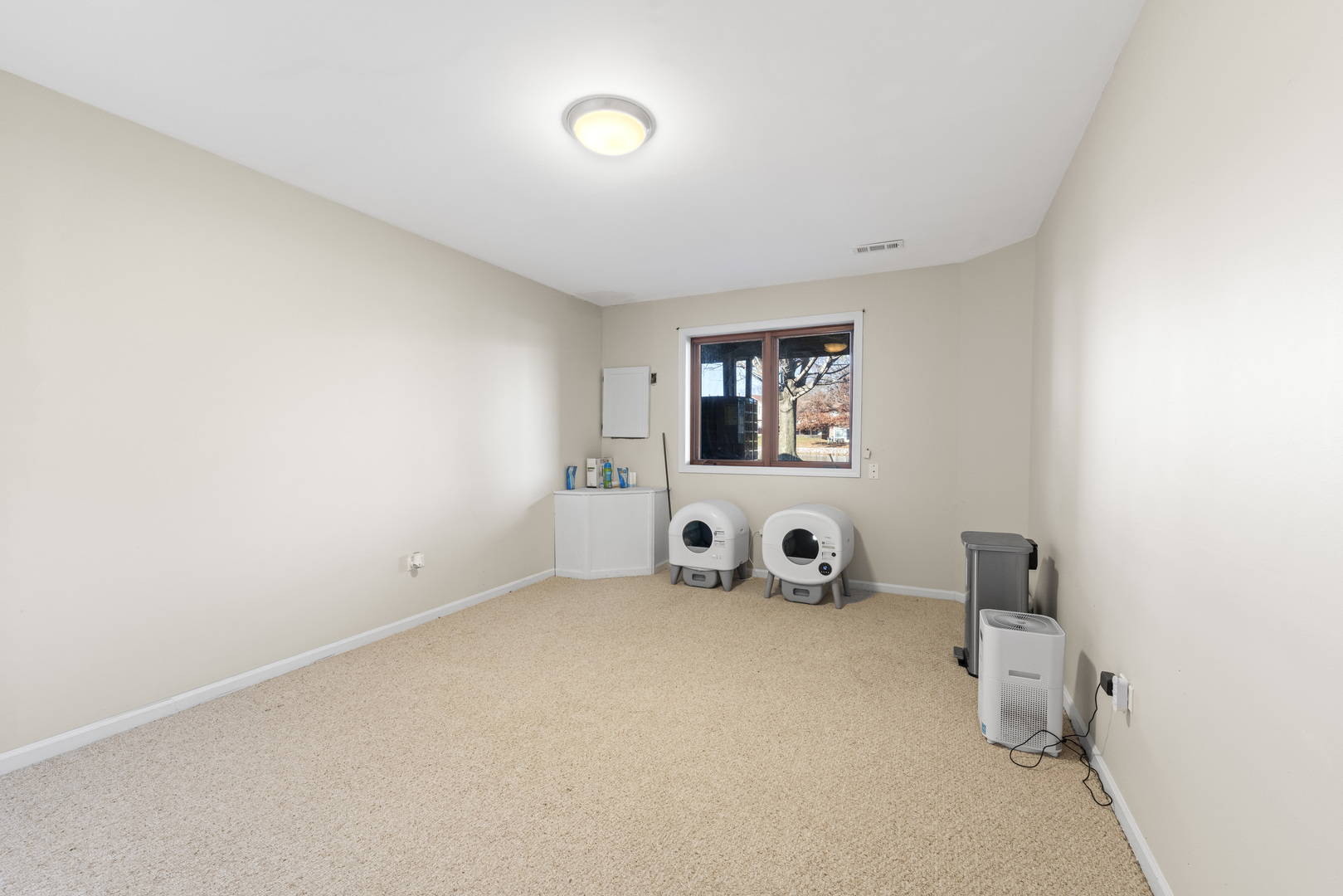 Well maintained 3 bedroom, 3 bathroom ranch-style townhome in Orland Park with a basement and a water view behind the property. The main level includes an open living area, kitchen, dining space, and a primary bedroom with an attached bathroom. The home features two additional bedrooms and a full hall bath on the main floor. The basement provides additional finished living space, storage options, and a third full bathroom. The backyard offers a view of the pond, providing a calm setting from the deck or patio area.