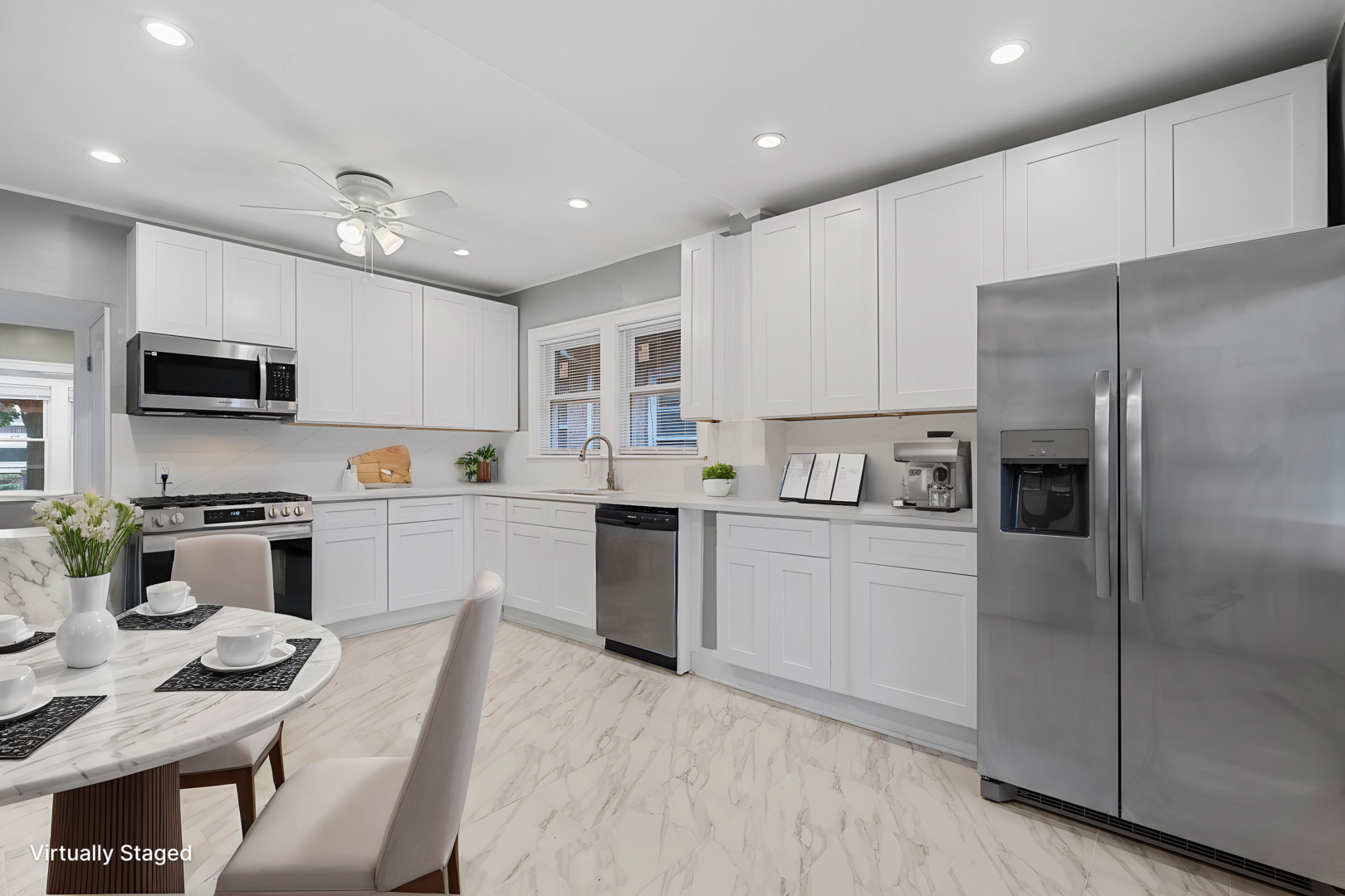 This charming 4 bedroom, 2 bathroom single-family home at 8924 S Elizabeth offers a perfect mix of modern updates and timeless appeal in the heart of Washington Heights. Featuring a finished basement, a first-floor primary bedroom, and a spacious eat-in kitchen, this home is designed for both comfort and functionality. Inside, you’ll find brand-new flooring and windows throughout, filling the home with natural light. The large eat-in kitchen stands out with contemporary cabinetry, stainless steel appliances, and plenty of room for casual dining. For those who prefer a more traditional layout, the kitchen is thoughtfully separated from the dining room, offering a cozy, semi-closed concept. The first-floor primary bedroom is generously sized with a walk-in closet for ample storage. Just steps away, the main-level bathroom offers a spa-like experience with a full-body spray shower, perfect for relaxation. The separate living and dining rooms provide versatile spaces for entertaining or quiet evenings at home. The finished basement adds even more living space, featuring a large family room, dedicated home office area, updated full bathroom, laundry hookups, and an exterior exit for added convenience. Step outside to enjoy the newly built deck off the kitchen, ideal for outdoor dining or unwinding in the sunshine. A newly constructed 2 car garage offers both security and ease for your daily routine. With its thoughtful updates and desirable location, 8924 S Elizabeth is ready to be your next home in the vibrant Washington Heights neighborhood.