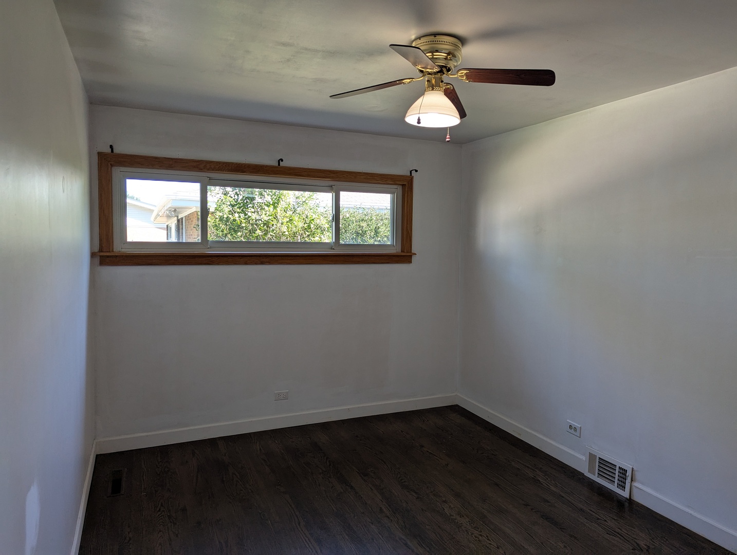 Home on a 8,832 sf rectangular lot on a quiet dead-end street, steps away from desirable district 67 Hynes Elementary School. 3-bedroom, 1-bath, brick ranch with restored hardwood floors throughout. Kitchen features newer cabinets and granite countertops. Dining room doors open to outdoor concrete patio and large open backyard. Full wide open unfinished basement is ready for build out with 3-year old furnace (and A/C unit) and newer electrical panel. Detached two-car garage built 4-years ago offers 240V, 50-amp electrical service for vehicle charging. Exterior improvements include roofing, siding and gutters; all done 4-years ago.
