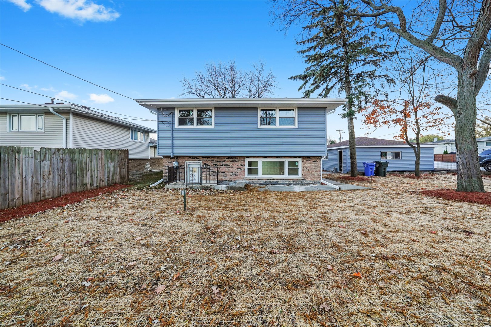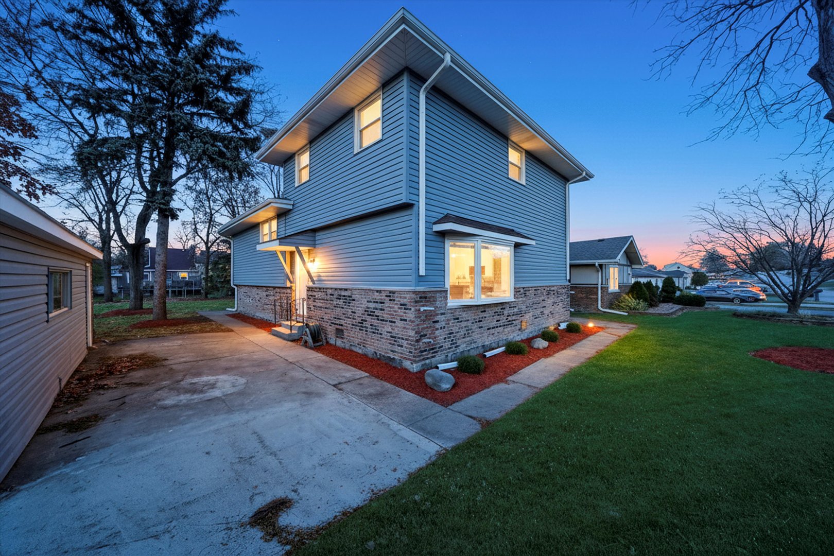 Remodeled 5-bedroom, 2.5-bath split-level home located in Justice (Cook County). Features a modern open-concept kitchen with island, quartz countertops, stainless steel appliances, and decorative range hood. Home includes two furnaces, two central air units, and two water heaters for comfort and efficiency. Spacious bedrooms, stylish bathrooms, and laundry area with washer and dryer. Exterior highlights include landscaped yard, red mulch accents, and a detached 2-car garage. Convenient location near I-55, I-294, parks, and schools – a perfect blend of space, style, and function.