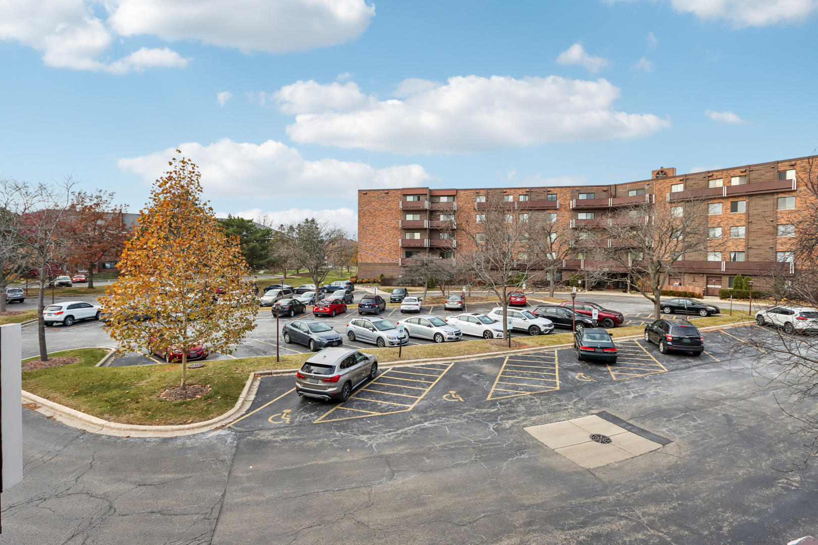 Welcome home to this fabulous 2 bedroom, 2 bathroom condo. Kitchen is tastefully updated with shaker cabinets, quartz countertops and marble backsplash. Bright and sunny living room, spacious bedrooms, primary bedroom with full ensuite bathroom and large walk-in closet. New maintenance free Trex balcony flooring. Additional storage unit and laundry room conveniently located on the same floor. Well-maintained elevator building and complex with swimming pool, tennis courts, and walking and biking path, great for people who love staying active. Unbeatable location!!! Near Woodfield mall, Busse woods, a variety of restaurants, coffee shops and grocery stores, Alexian Brothers hospital, min away from major highways. Monthly HOA includes: Gas, Water, Heat, Air conditioning, Garbage,CableTv/Internet, Snow removal, Lawn care, Exterior maintenance. Rentals are not allowed.