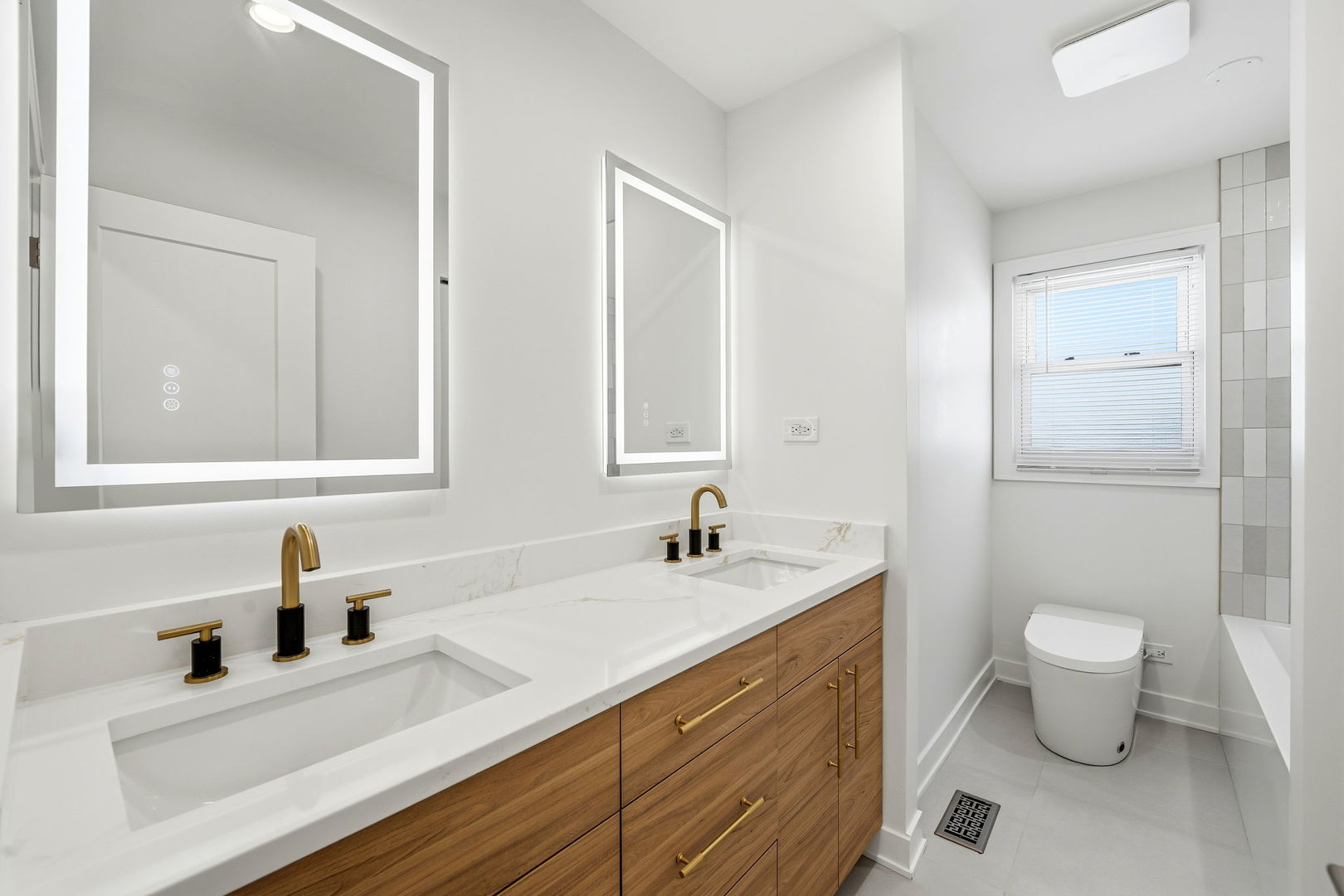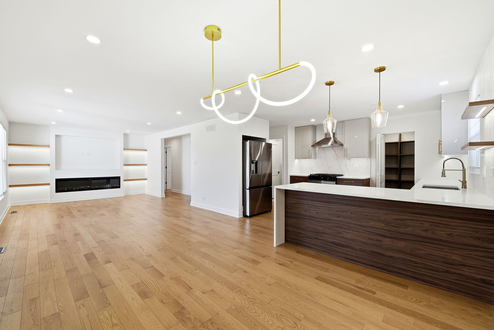 Welcome to this beautiful move-in-ready home in the heart of Elk Grove Village. Brand-new kitchen featuring sleek cabinetry, quartz countertops, an impressive walk-in pantry and brand new stainless steel appliances-perfect for both daily living and entertaining. The home also offers all-new hardwood flooring, fully updated bathrooms, high-end bidet toilet in the common bathroom, and a fresh, contemporary design throughout. The living room offers a sleek electric fireplace and ample wall space to accommodate an 80-inch television, creating a polished yet inviting gathering space. A tiled mudroom seamlessly connects the attached garage to the laundry area, which includes new Samsung smart washer and dryer. Tucked away on a quiet street, this home is just minutes from Rainbow Falls Waterpark, and Busse Woods, where you can enjoy scenic trails, fishing, and outdoor recreation, and a short drive to Woodfield Mall for premier shopping and dining. Families will appreciate the highly regarded school district, while commuters will love the easy access to I-90 and nearby public transit.