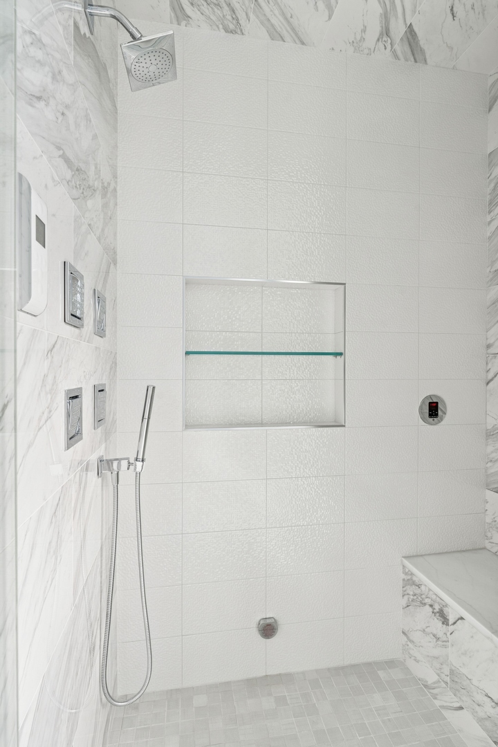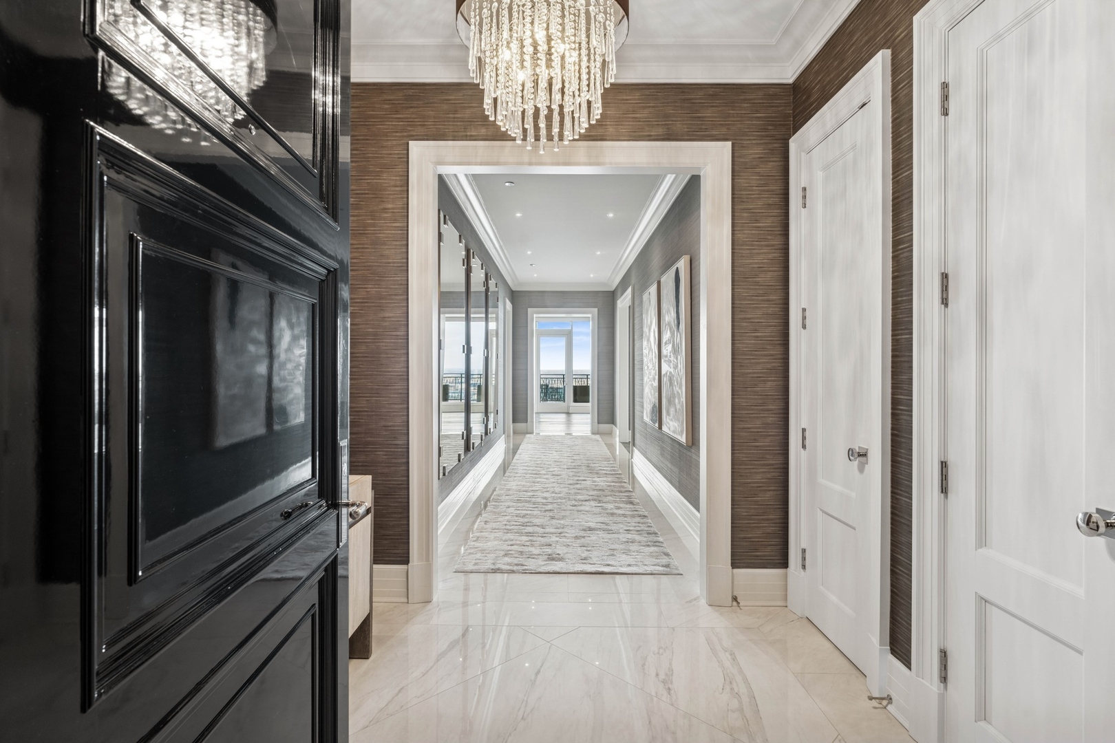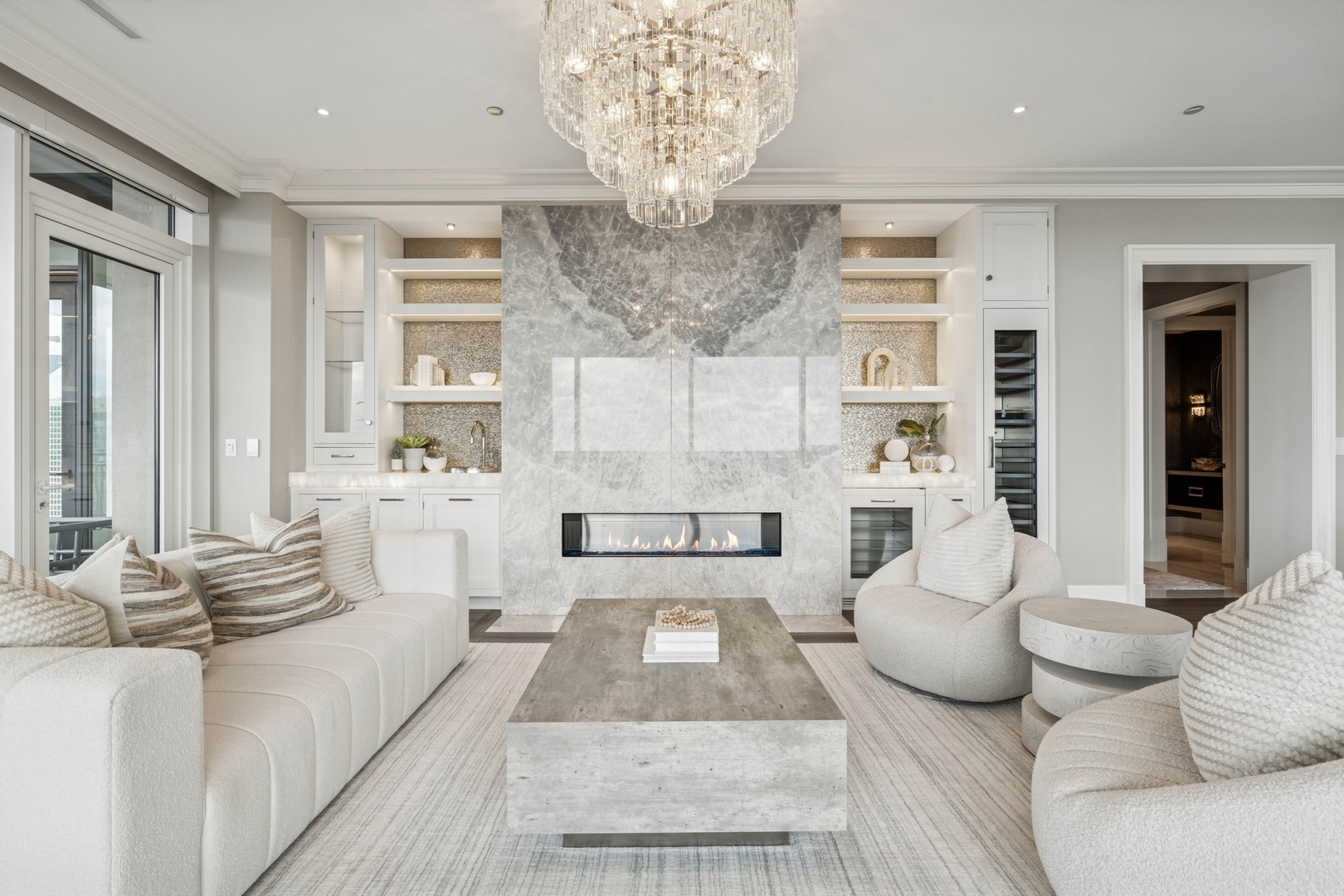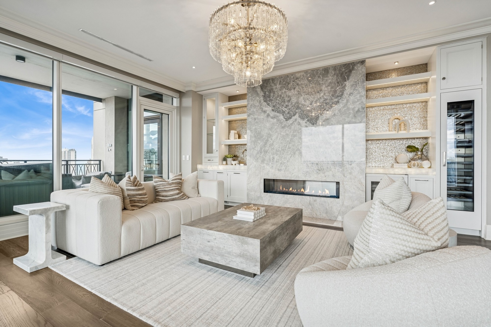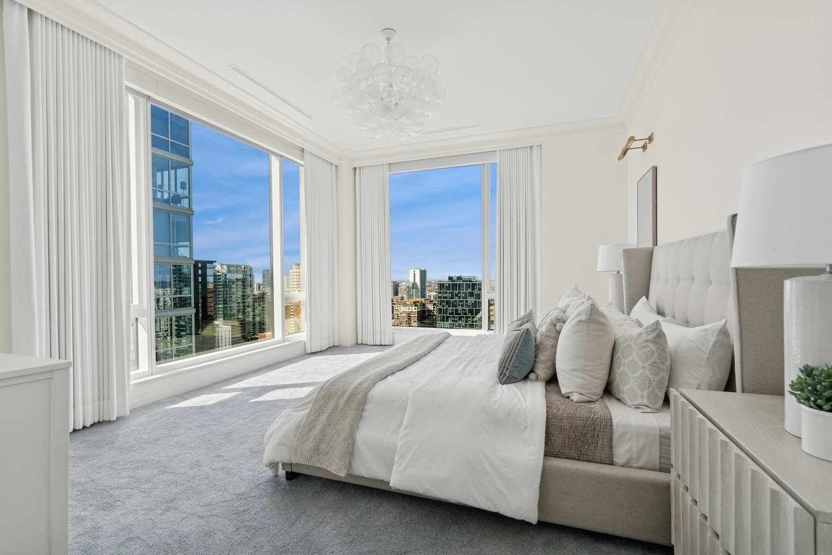 Experience the pinnacle of luxury living at the highly coveted 9 W. Walton in Chicago’s prestigious Gold Coast. Residence 2802 is an exquisite half-floor home spanning 4,500 sq. ft., complemented by an expansive 750 sq. ft. wrap-around terrace featuring a hot tub and overhead heaters for year-round enjoyment. This meticulously upgraded 3-bedroom + office/den, 3 1/2 bathroom home offers unparalleled craftsmanship, cutting-edge automation, and premium finishes throughout.The state-of-the-art kitchen is equipped with a Wolf 60″ range, dual full-size ovens, a steam oven, warming drawer and a built-in Wolf coffee maker. Two full-size Gaggenau refrigerators/freezers, two Miele dishwashers, and The Galley sink with dual faucets ensure effortless entertaining. The 14′ waterfall island, adorned with Azul Imperial Quartzite, is both a statement piece and a functional hub, complete with pop-up outlets and custom O’Brien Harris cabinetry. The living room is anchored by a 60 inch linear ventless fireplace framed in Iceland bookmatched porcelain. Custom millwork and shelving by O’Brien Harris seamlessly integrate a tall wine refrigerator, Sub-zero beverage refrigerator, and a silver hammered bar sink with an ice maker, all set against underlit Iceberg quartzite countertops. Escape to the opulent primary suite, which includes a large sitting room/office/den outfitted with closets, a built-in bar, Miele coffee maker, and a Sub-Zero beverage refrigerator. The massive walk-in closet provides generous storage, while the spa-like primary bathroom indulges with an oversized dual shower with a TV, steam, body sprays, and a rain shower, a custom bathtub with a pop-up TV lift and built-in champagne bucket, and a separate water closet with a Toto Washlet toilet. Luxurious Princess White Quartzite counters, a towel-warming drawer, custom cabinetry and large windows complete this serene retreat.Additional features include heated stone hallways with inlaid runners, heated bathroom floors throughout, a large laundry room with custom cabinetry and sink, and fully updated Control4 automation for lighting, shades, and sound. This exceptional residence includes two valet parking spaces and a storage unit. Residents of No. 9 Walton enjoy unparalleled five-star amenities, including a multi-level fitness center, an indoor pool, a steam room, and a sauna. For recreation and entertainment, the building features a golf simulator and an elegant hospitality room with a bar, catering kitchen and an expansive terrace. Additional luxuries include two well-appointed guest suites, a house car service, 24-hour white-glove door staff, and onsite professional management.