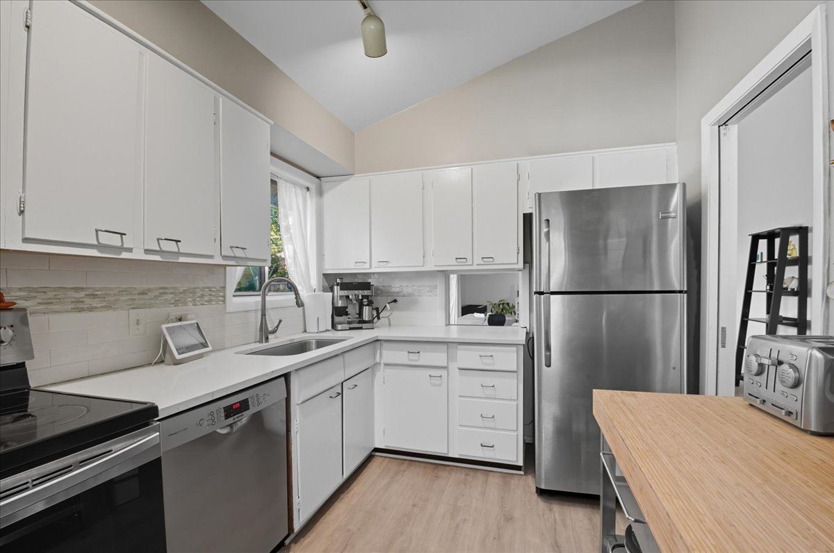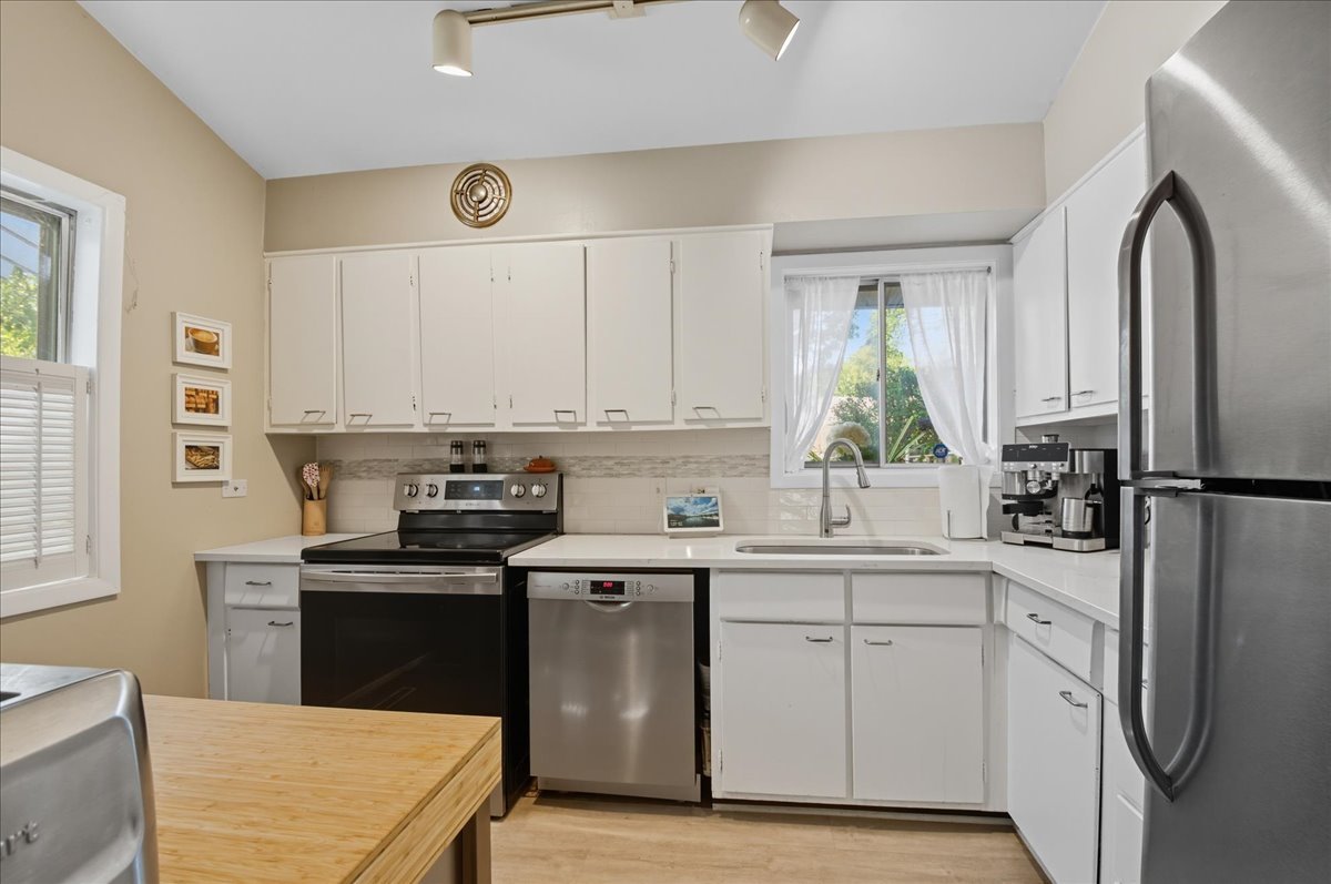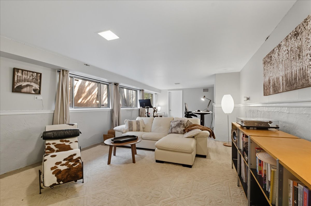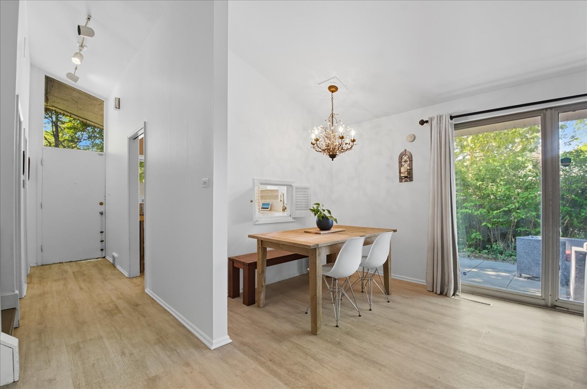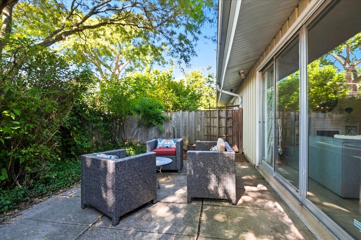 Spacious townhouse in prime Wilmette location – Feels Like a Single-Family Home. This beautifully updated 3-bedroom, 1.1-bath tri-level offers comfort and space. Fee simple with no assessment. Featuring NEW luxury vinyl flooring in the living room and family room, and soaring ceilings in the living room, along with skylights throughout this home, is both stylish and inviting. The white kitchen boasts quartz countertops, stainless steel appliances, including a Bosch dishwasher, and ample cabinetry. The kitchen has a charming opening into the dining space, with modern open concept living. Bathrooms have been updated to today’s standards with white finishes. 2nd level with hardwood floors throughout. Generously sized bedrooms with ample closet space, while the lower level includes a large family room, a convenient laundry area with washer and dryer, and additional storage. Recent updates include the furnace and water heater. Enjoy outdoor living with a private patio off the living/dining room space. Parking is a garage covered carport that provides space for bikes/equipment. Located in a quiet residential neighborhood within the sought-after Harper School District, this home is just minutes from downtown Wilmette and the Metra train. Easy access to shopping and the Edens Expressway. Great location for accessibility and all the perks of Wilmette, including parks, Gilson Beach, and Centennial pool/ice rink/and tennis. Enjoy low taxes in a top-rated school district. A must see!!