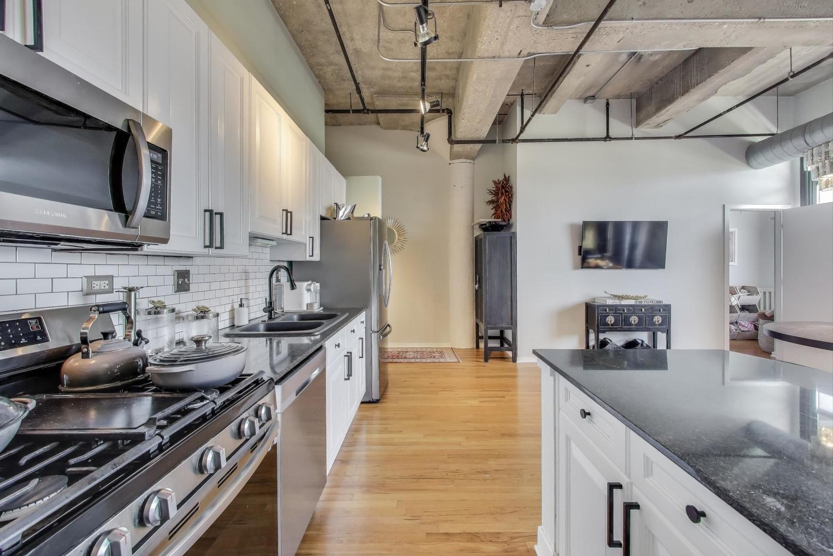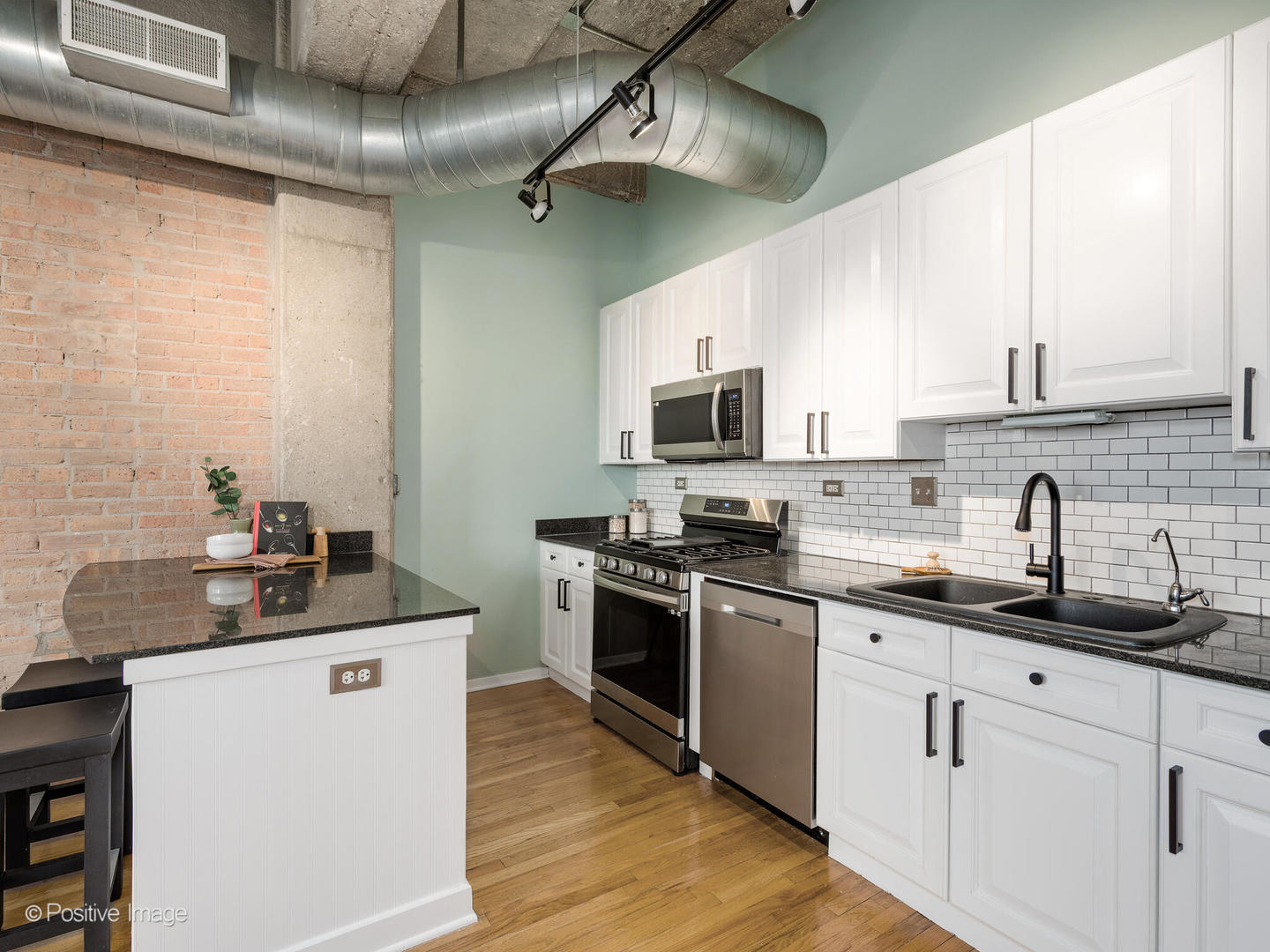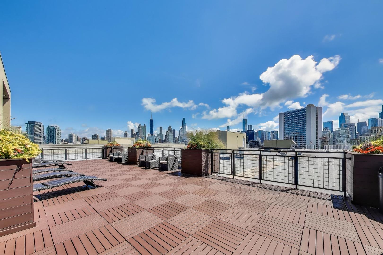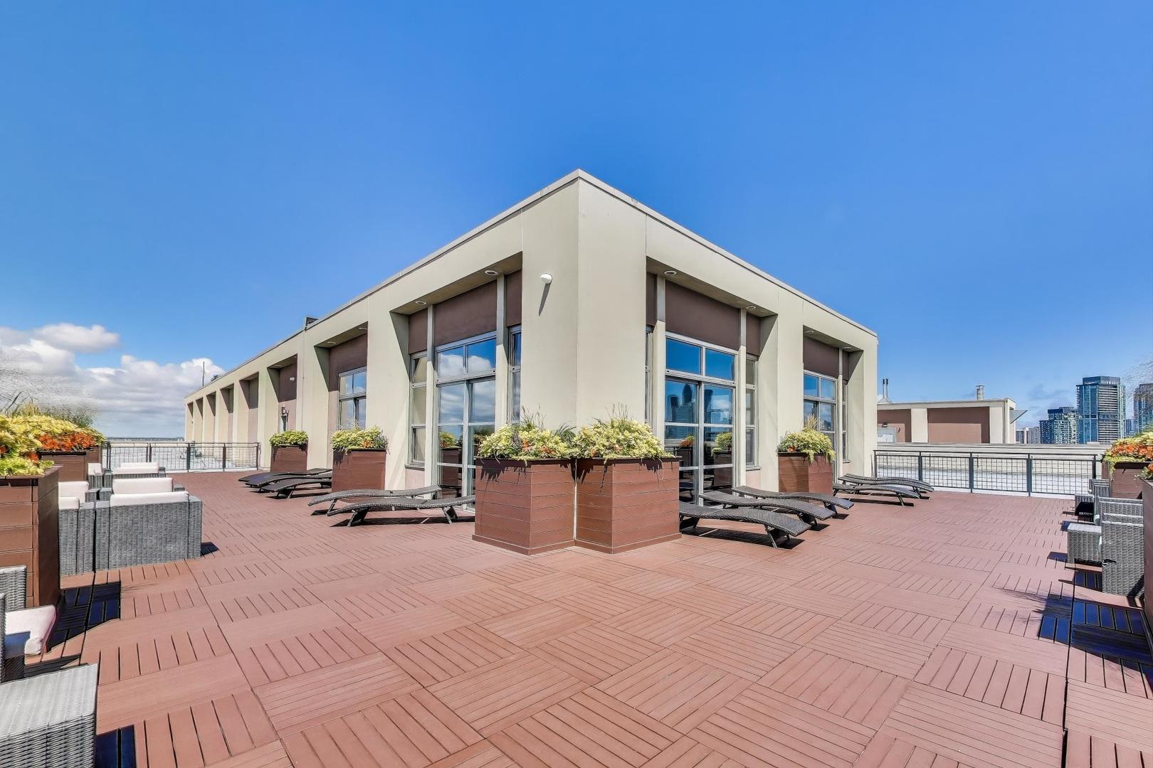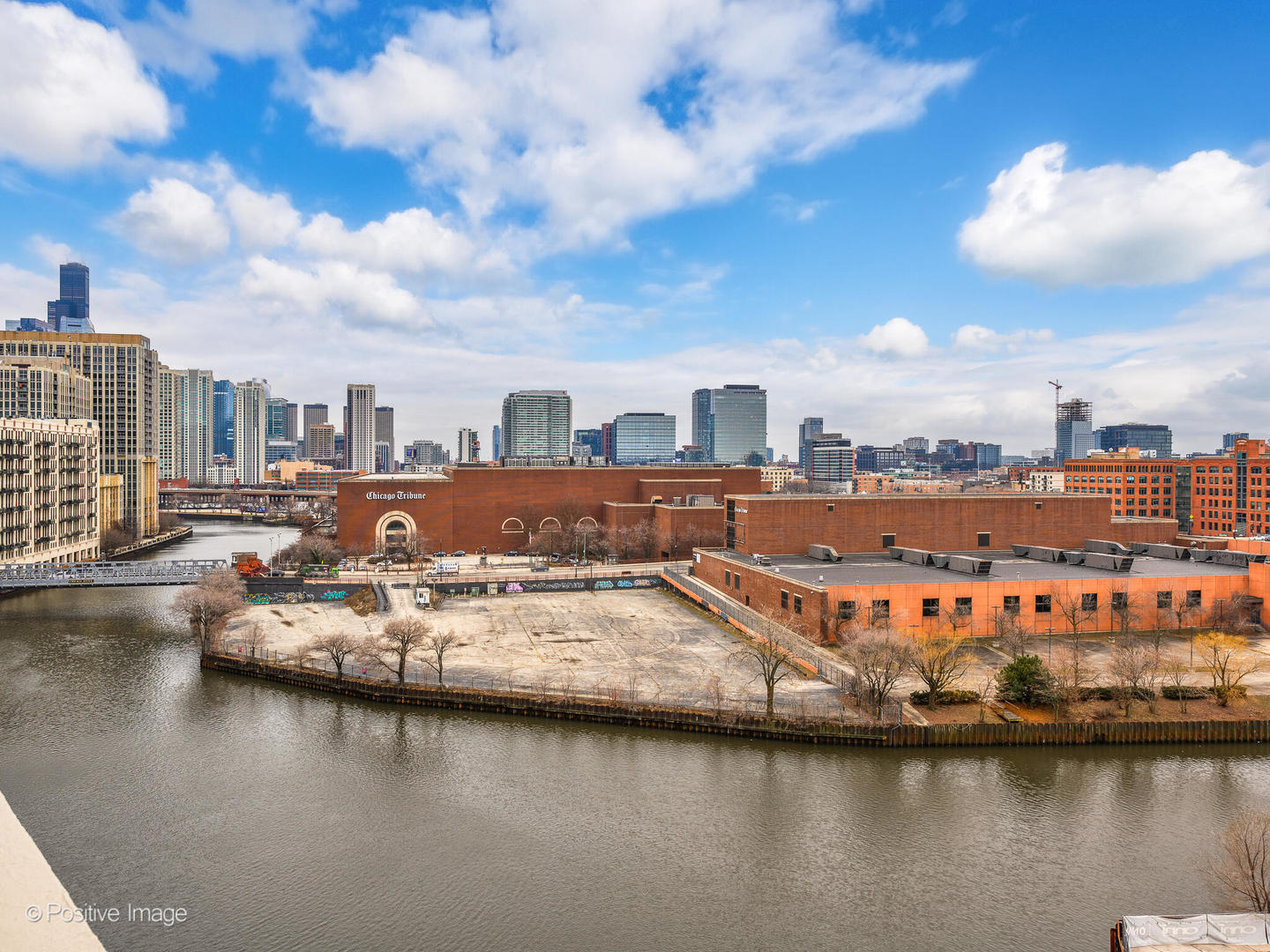 Amazing River and Skyline views from this highly sought after West facing unit at The Domain. This is a unique 2 bed 1 bath home that will not disappoint. Enjoy modern finishes, high-end light fixtures, ample natural sunlight beaming through, 11′ ceilings, oversized windows and hardwood floors throughout. Kitchen has been refinished with granite counters, updated cabinets, stainless steel appliances, and in unit W/D. Great size primary bedroom and ample closets, second bedroom is an ideal kids room or office space. One deeded garage parking space is included. Assessment includes: Heat, AC, Gas, Xfinity high speed Cable and Internet. Full Amenity Building at the Domain with: 24 hour doorman and receiving room, on-site management and maintenance team, exercise room, bike storage, rooftop party room and sundeck with amazing city views, riverwalk boat slips, restaurants, dry cleaners, and Allyu Day Spa. A+ location close to all the best restaurants, shopping, transit and more. 24 hour door staff, rooftop deck, fitness center and party room. Pet friendly with dog parks close by. Indoor secure heated parking space included.