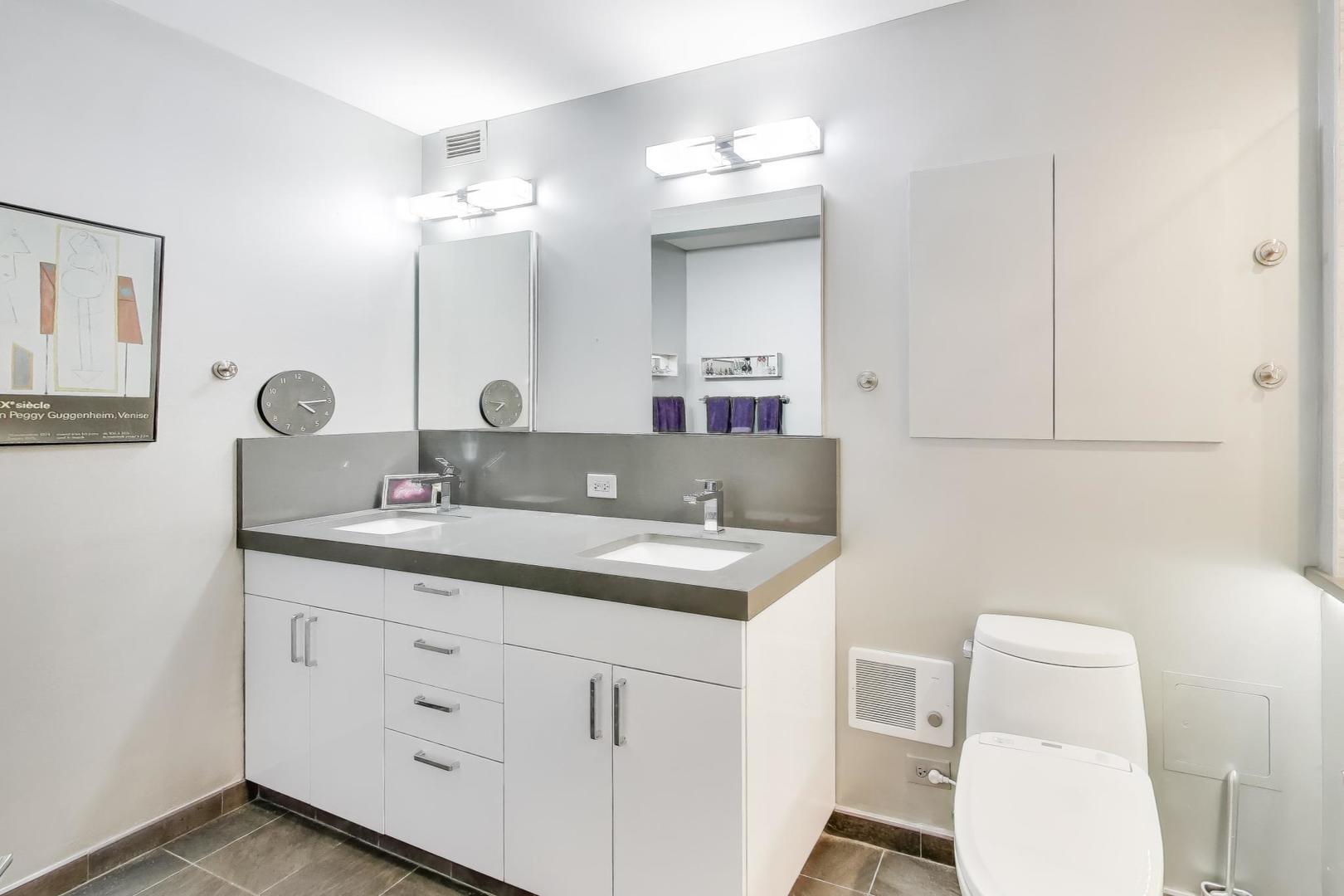 Nearly 2100 sq. ft of sophisticated urban living in Iconic Mies van der Rohe Building. Welcome to an elegant, expansive residence in one of Streeterville’s most celebrated addresses. Thoughtfully created by combining two units, this home offers 2 bedrooms, 2 full bathrooms, and an abundance of beautifully designed living space. Versatile 2-bedroom layout offers a natural space to create a 3rd bedroom, need be. The heart of the home is the bright and spacious living and dining area, ideal for entertaining or relaxing in style. Adjacent to this space is a separate family room, offering flexibility for a media lounge, reading area, or casual gathering spot-perfect for modern living. The open-concept kitchen is a chef’s dream, featuring high end granite countertops and backsplash, 42″ maple cabinetry, and a full suite of high-end appliances: Double oven, Sub-Zero refrigerator and a dedicated wine cabinet. This home is one of the few units in the building to offer a Bosch in-unit washer and dryer for everyday convenience. The primary suite is a luxurious retreat, featuring two organized walk-in closets and a newly renovated spa-style bathroom complete with double sinks, Toto heated toilet, Kohler fixtures with Grohe hardware, and a generously sized walk-in shower. The second bedroom includes a Murphy bed offering exceptional flexibility for guests or additional workspace. Additional features include hardwood flooring throughout the living space, elegant custom lighting, and abundant storage. All this, within a prestigious full-service building in an unbeatable Streeterville location. The unit provides a slice of lake view, while the common sundeck offers expansive lake and Navy Pier views-perfect for unwinding with your favorite food and drink and watching boats from spring through fall. Steps to the Magnificent Mile, Northwestern Hospital, the Museum of Contemporary Art, the lakefront, and world-class shopping and dining. This home is a true must see!