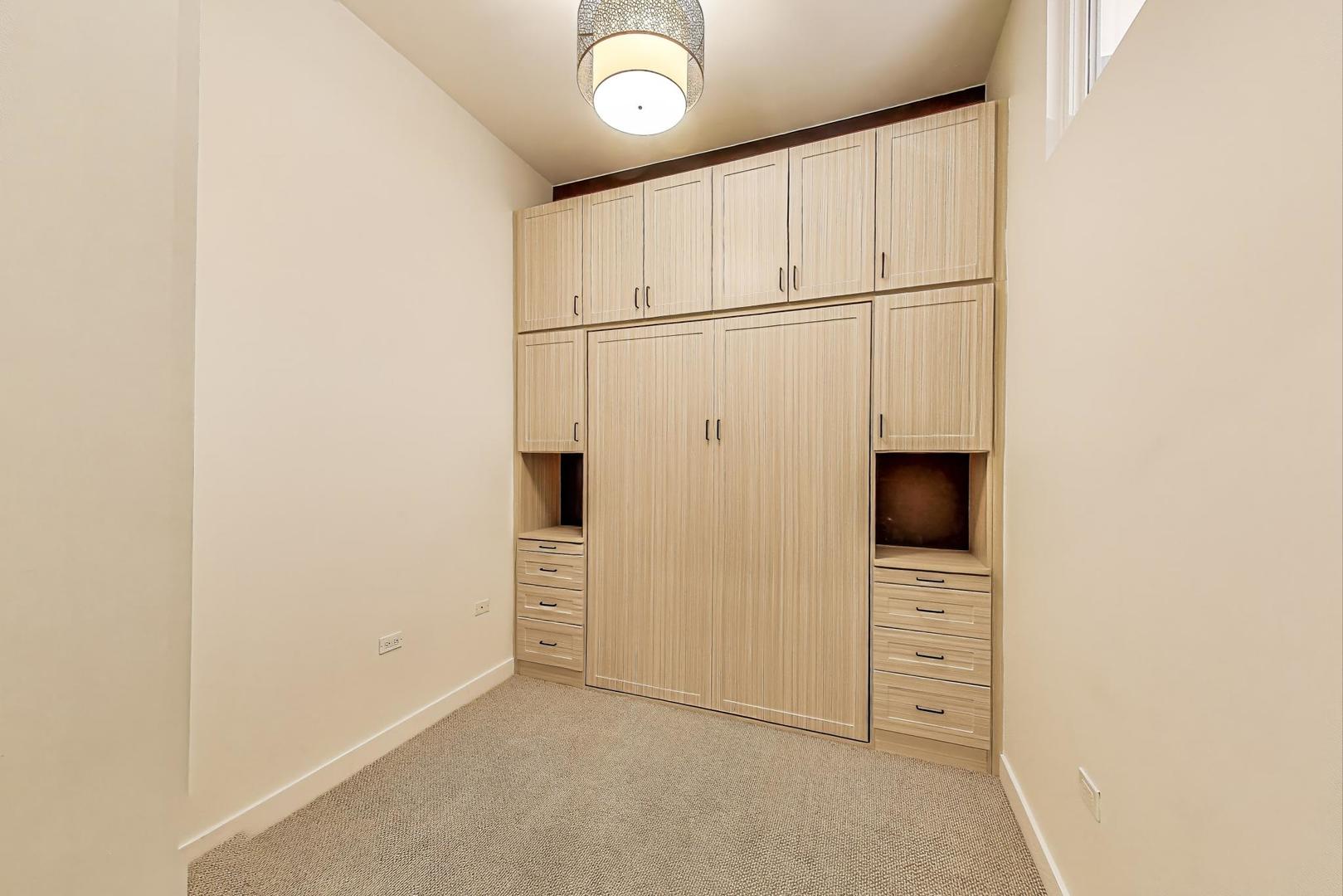 Experience luxury living in one of the West Loop’s most sought-after buildings in this fully renovated 2 Bed / 2 Bath + Den, offering 1,450 sq. ft. of sophisticated city living. Floor-to-ceiling windows showcase East-facing city views, and spacious rooms and thoughtful updates throughout create an inviting space for entertaining. The modern kitchen opens to the living area, boasting classic white cabinetry, quartz countertops, stainless steel appliances, and a stylish backsplash. The generous primary suite features a custom walk-in closet and a newer, spa-like bath with a soaking tub, dual vanity, and separate, over-sized shower. The private balcony opens from both the primary and living room, creating a flexible outdoor retreat. A versatile den-complete with a built-in Murphy bed-provides the perfect option for a home office, guest room, or smaller third bedroom. Additional recent updates include newer flooring, newer appliances, including washer/dryer, and updated HVAC. Building amenities elevate the lifestyle with a state-of-the-art fitness center, party room, rooftop/sun deck, bike room, secure package room and attentive door staff. Residents also enjoy a landscaped terrace with outdoor seating, grilling stations, and a dog run. Ideally located just steps from Randolph’s Restaurant Row, Fulton Market, Mary Bartelme Park, SOHO House, Whole Foods, art galleries, and nightlife, with convenient access to CTA, expressways, Union Station, and Ogilvie. Situated in the coveted Skinner School District. Storage locker included and deeded garage parking available for $30,000. Pet friendly!
