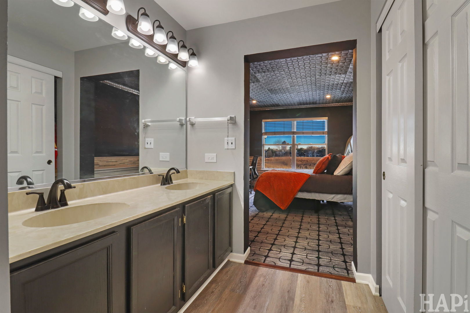 Step into your new dream home in Elk Grove Village! This stunning townhouse, ideally situated just off the expressway at Biesterfield/Rohlwing, is a real gem in the Huntington Chase community. It faces serene wetlands and has convenient access to additional visitor parking; it’s a perfect blend of comfort and practicality. As you enter, a spacious foyer invites you into a bright and airy living space, filled with natural light pouring through expansive windows. The living room, complete with a cozy gas fireplace and sliders to a patio, shows off vaulted ceilings and whimsical lighting fixtures throughout enhance the home’s unique charm. The main level is adorned with designer ceramic tiles and features a captivating rock wall, plus an elevated half bath for your guests. If you love to cook, you’ll be thrilled by the chef-worthy kitchen boasting sleek black cabinets, exquisite white granite countertops, and top-of-the-line stainless steel appliances. Enjoy the convenience of a dual drawer dishwasher, double oven, Viking warming oven, pot filler, soft-close cabinets, and ample space for an eat-in table. Journey upstairs along the charming catwalk railing to discover a luxurious primary suite featuring dual closets, a vanity area, and an additional linen closet. Down the hall, you’ll find a full bath and two well-sized bedrooms designed for comfort and functionality. Don’t worry about storage-all your needs will be met with an attached two-car garage equipped with organizational shelving. This property stands out with its playful decor, unique rock walls, artistic tiled stairs, and creative lighting moments. Sellers are eager for a quick closing and prefer no home sale contingency. Don’t miss your chance to make this enchanting townhouse with a budget friendly monthly HOA of $316 your own-schedule a viewing today and grab this opportunity before it’s gone!
