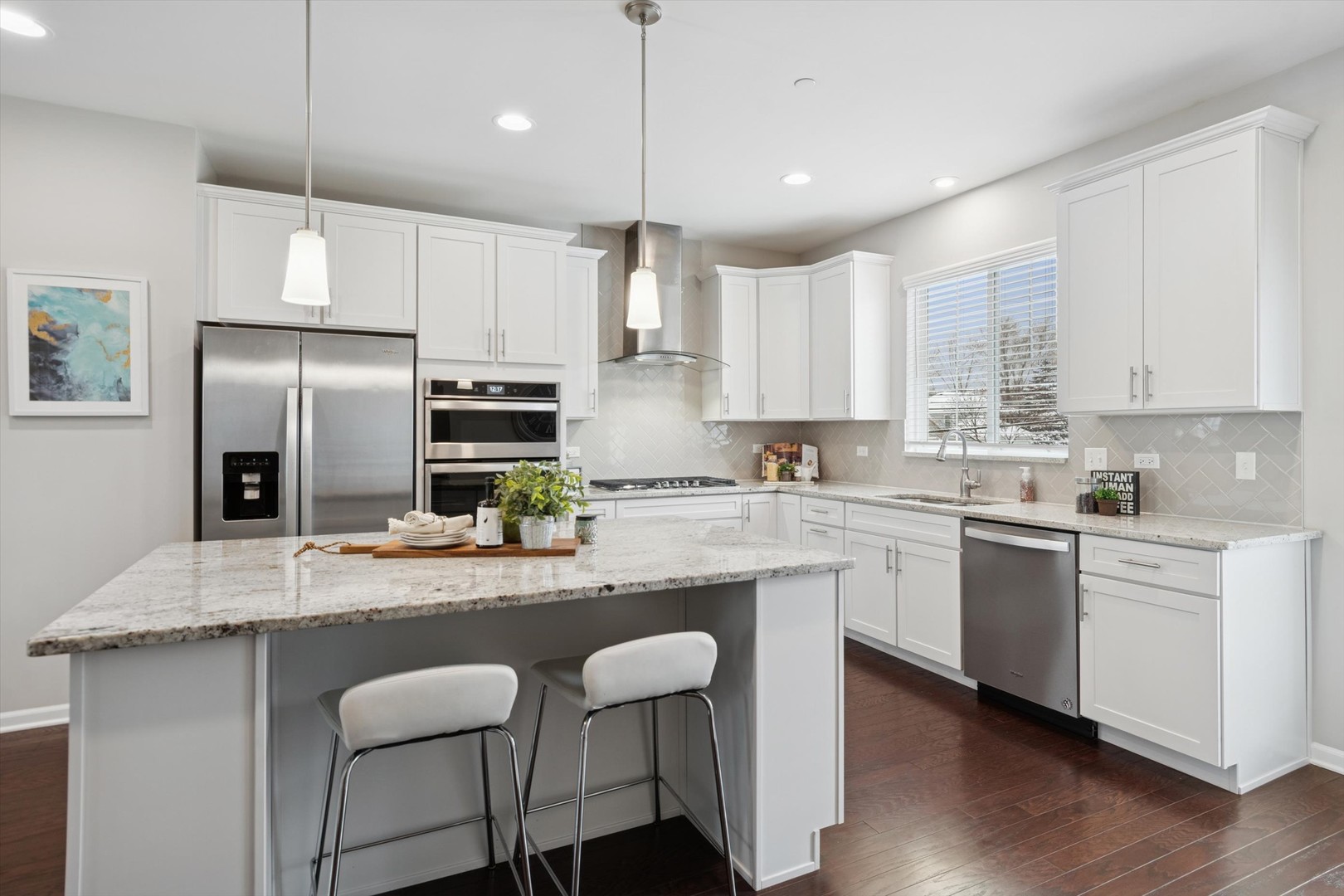 Highly sought after north Naperville location. Columbia Park Townes subdivision is conveniently nestled with close proximity to the Metra, downtown Naperville and I88. The 9′ ceilings on the main level plus an open floorplan gives you a great entertaining space. Enjoy the dream kitchen with stainless steel appliances, designer backsplash, an open range hood and an over sized island with quartz countertops. Relax in your third floor master suite suite after a day of shopping or entertaining. Two secondary bedrooms and laundry room finish out the third floor. Each bedroom has California closets for maximum storage. Attached 2 car garage has epoxy floors, above storage racks and a full size access door to extra storage. Enjoy maintenance free living and spend your time enjoying all the convenient amenities.