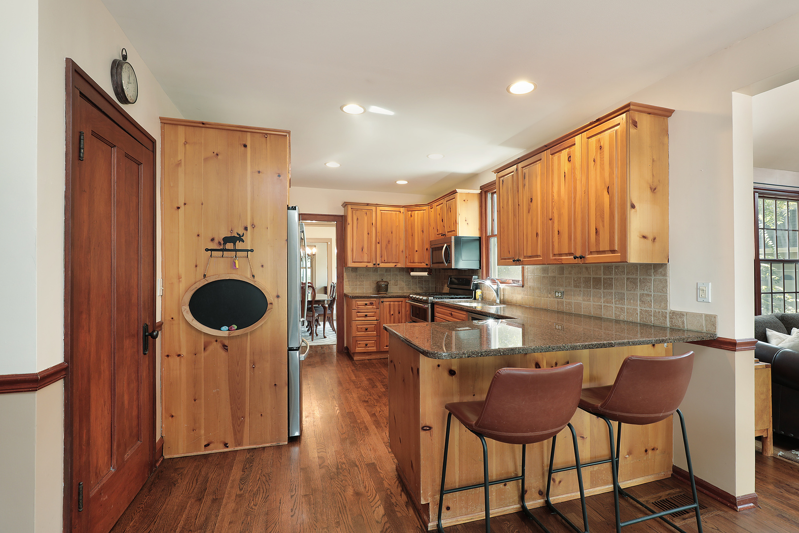 This Cherished Vintage Treasure has been lovingly updated for today’s lifestyle. Love a gracious setting? Look no further! Set on almost 1/2 acre backing up to Maplewood park in a most convenient in-town location. This charming home features large spacious rooms, beautiful hardwood floors, updated kitchen, stunning family room and 1st floor primary suite. Three additional bedrooms and updated hall bath complete the 1st floor. The second floor offers a 5th bedroom, full bath and loft that would make the perfect sitting room, office or play room and access to large attic. The full basement features a large knotty pine recreation room complete with bar giving you a feeling your in the North Woods. Tons of additional storage and space available. From the moment you arrive you will be charmed by the large front porch the perfect place to sip lemonade and relax. The backyard is delightful, shaded by towering trees the deck is the perfect place for summer entertaining. The views will delight you year-round. Great home in a wonderful location offering some of the finest schools in Illinois.