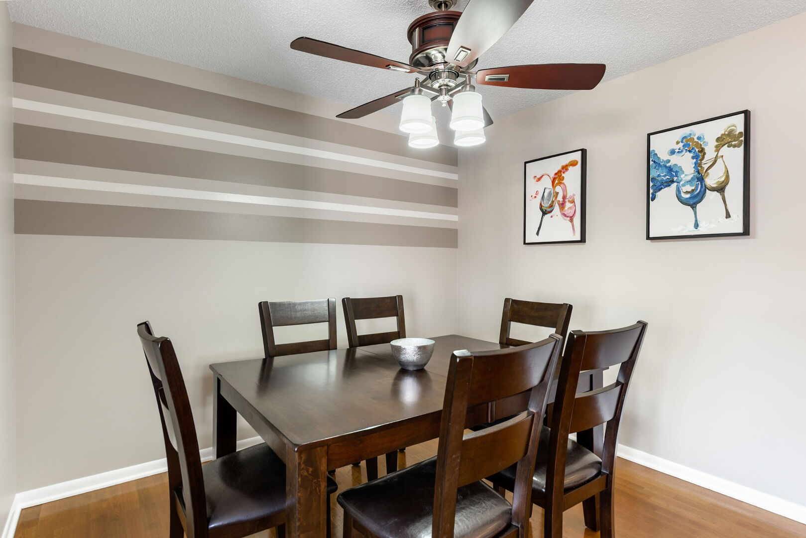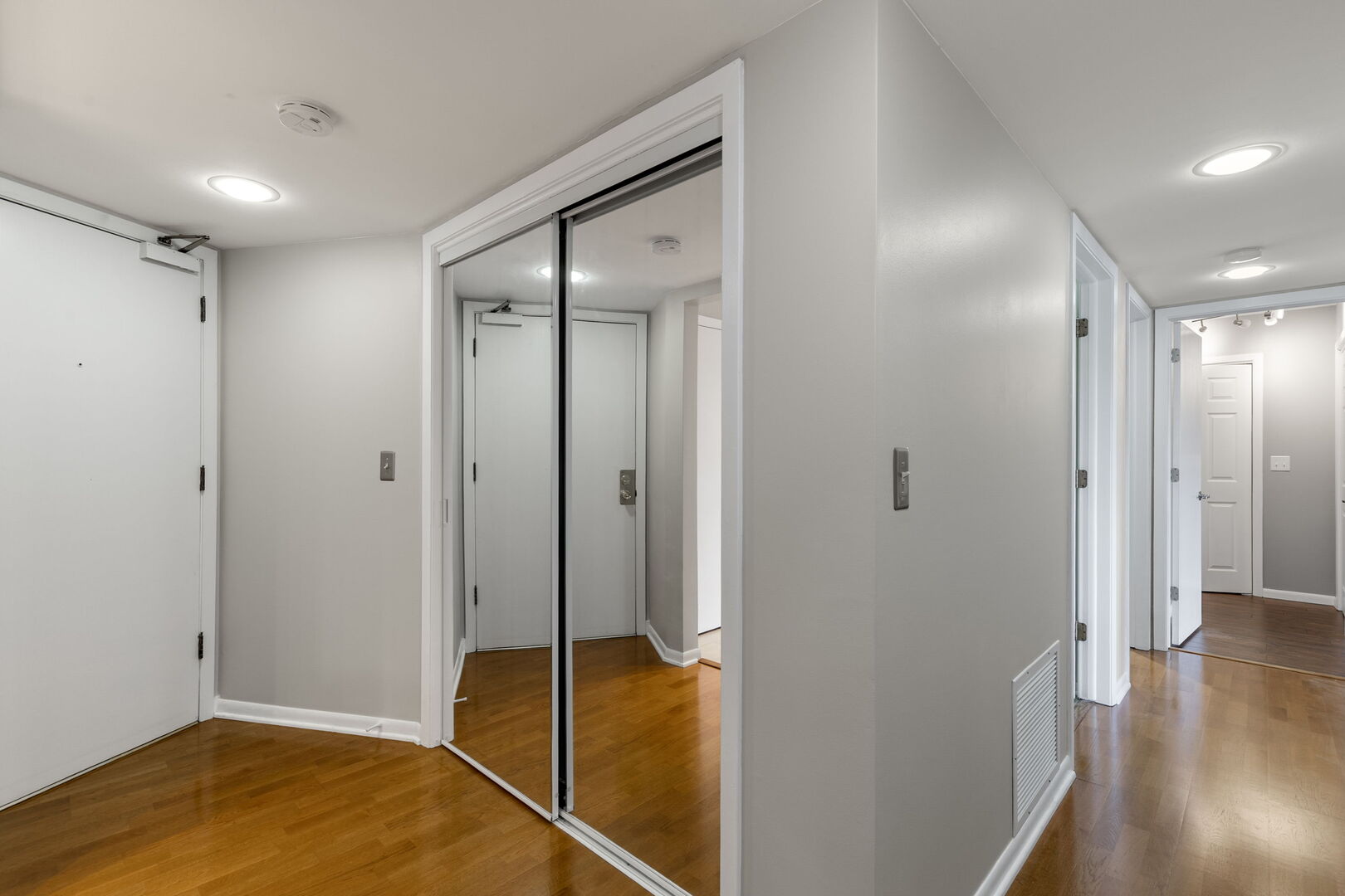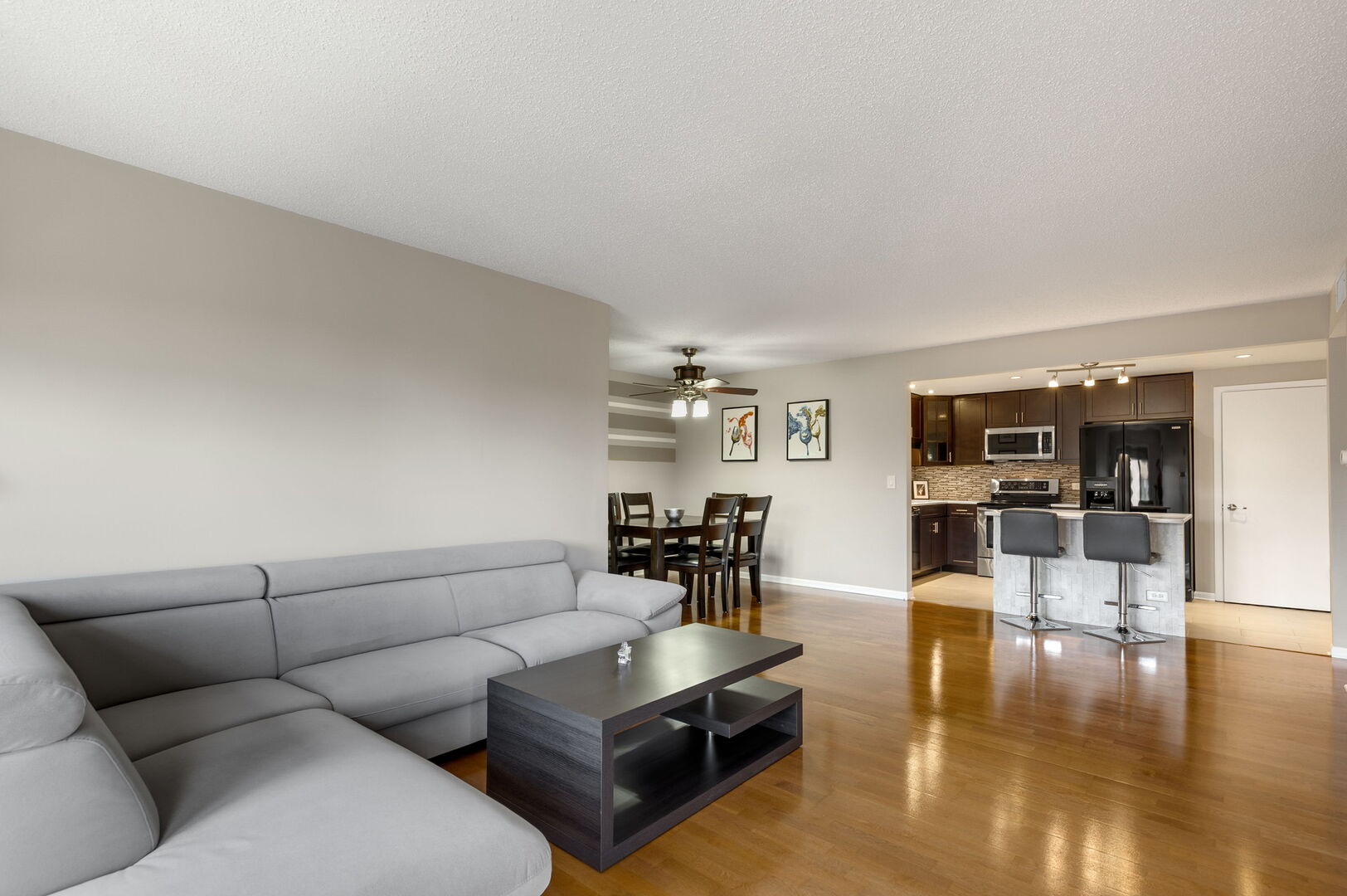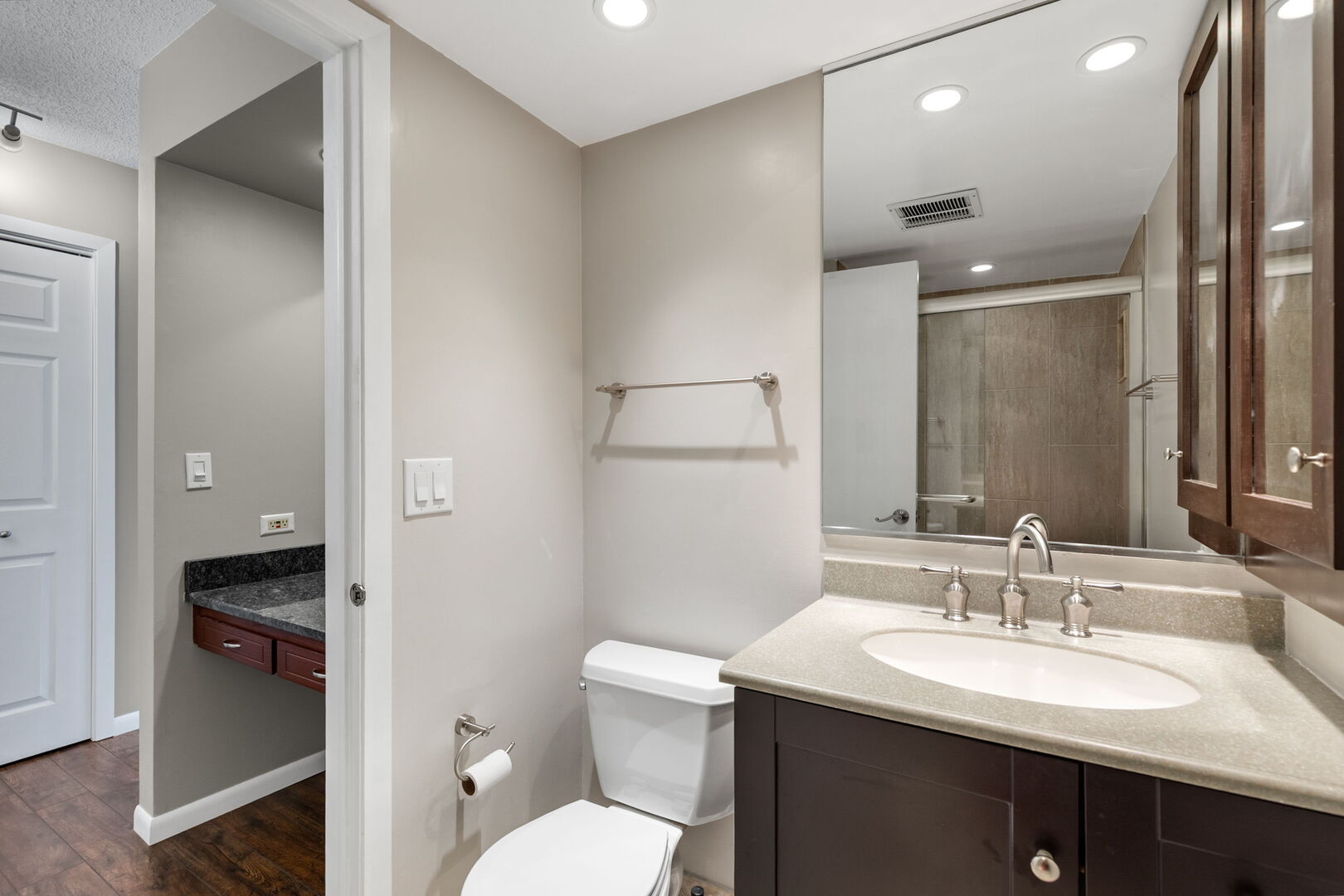 Spacious 2 Bed / 2 Bath Condo – Downtown Des Plaines Bright and updated condo just steps from shops, restaurants, parks, the library, and Metra, with quick access to the expressway. Open-concept kitchen/living room, separate dining, in-unit laundry, and large balcony accessible from bedrooms and living room. Includes 1 heated garage space, 1 outdoor space, and same-floor storage. Updates feature hardwood floors, 42″ kitchen cabinets with quartz island, renovated baths with upgraded primary shower, and laminate bedroom flooring.