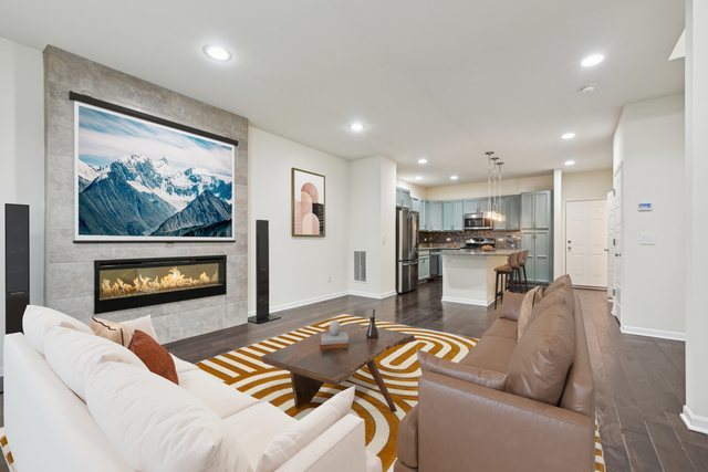 Welcome to this beautiful 3 bedroom, 2.5 bath, townhome built in 2018. Located in the highly sought after Union Square subdivision and the Indian Prairie (204) school district. This home boasts an open-concept layout and high-end upgrades throughout. The main level features a gourmet kitchen with granite countertops, a Signature island, backsplash, and Stainless Steel appliances. The spacious living room features an electric fireplace, perfect for entertaining guests. Upstairs, you’ll find a luxurious owner’s suite, walk-in closet, and an en-suite bath featuring a dual vanity, upgraded large tiled shower, and ceramic flooring. The 2nd level has 2 additional bedrooms and a full bathroom. Enjoy the convenience of the second-floor laundry. This is a Prime location – walking distance to Metra, just minutes from I-88, Downtown Naperville, and Aurora, surrounded by parks/walking paths. Don’t miss out on this beautiful home!