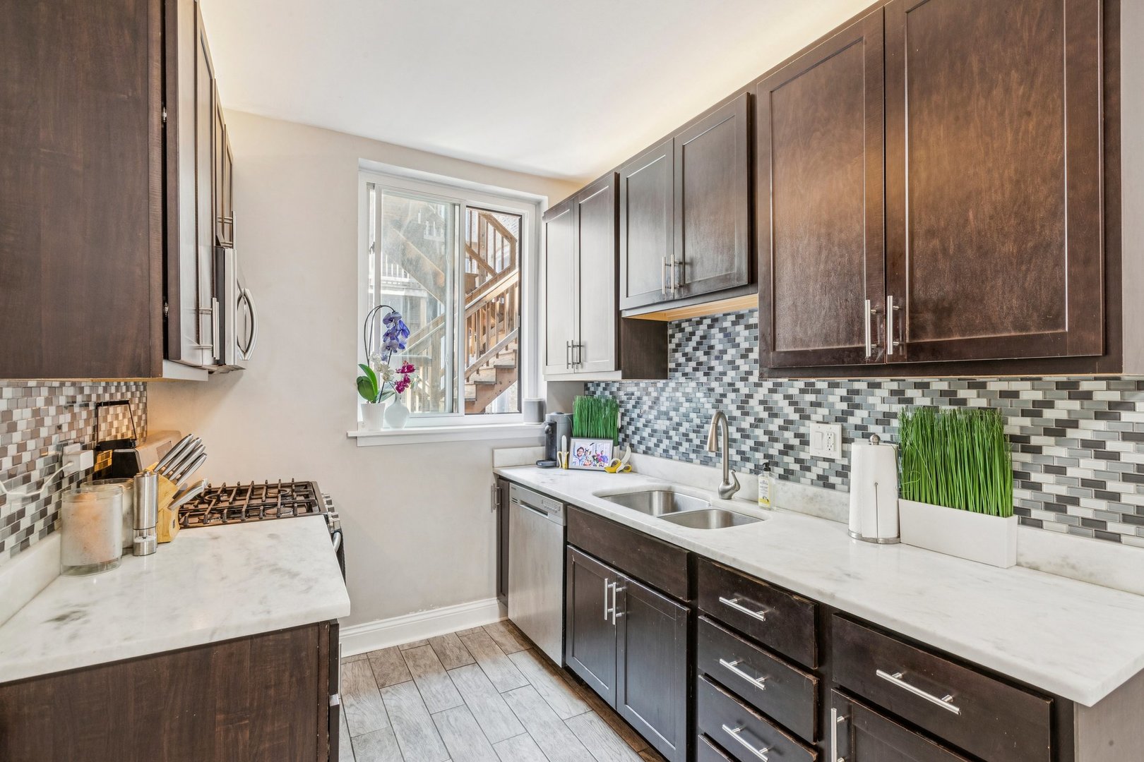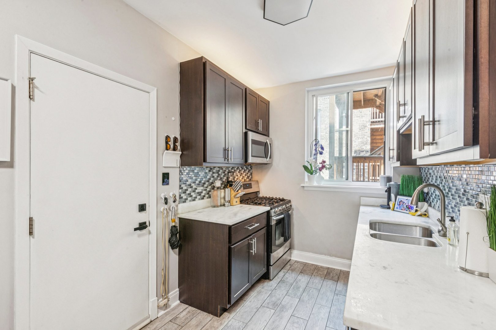 Welcome to 906 W Sunnyside Ave #1B – a stunningly renovated 2-bedroom, 1-bathroom residence nestled within a beautifully maintained, gated courtyard building in one of Chicago’s most vibrant and walkable neighborhoods. Thoughtfully reimagined with designer detail, this stylish condo offers a bright, open layout that blends classic warmth with contemporary sophistication. Gleaming hardwood floors flow throughout, anchored by a sun-drenched living room with a statement fireplace – perfect for cozy evenings or stylish entertaining. A separate formal dining room sets the stage for intimate dinners or lively gatherings, while the all-new chef’s kitchen impresses with sleek stainless steel appliances, modern cabinetry, and elegant finishes. Step outside to your private patio, ideal for grilling and al fresco moments, with lush courtyard views enhancing the peaceful, tree-lined setting. Additional highlights include a deeded exterior parking space, on-site laundry, generous storage space, and abundant street parking. HOA dues include heat and cable – a rare convenience in city living. Situated just blocks from the Lakefront Trail and Montrose Beach, this location offers unbeatable access to outdoor recreation, with the newly opened Clarendon Park Community Center only one block away. Grocery runs are a breeze with Jewel, Target, and Aldi just two blocks from your door. Commuters will love the multiple transportation options, including nearby bus routes, the Wilson Red and Purple Line station, and quick access to Lake Shore Drive. Whether you’re a first-time buyer, seasoned city dweller, or looking to downsize in style, this beautifully appointed home delivers on every level. Welcome home!