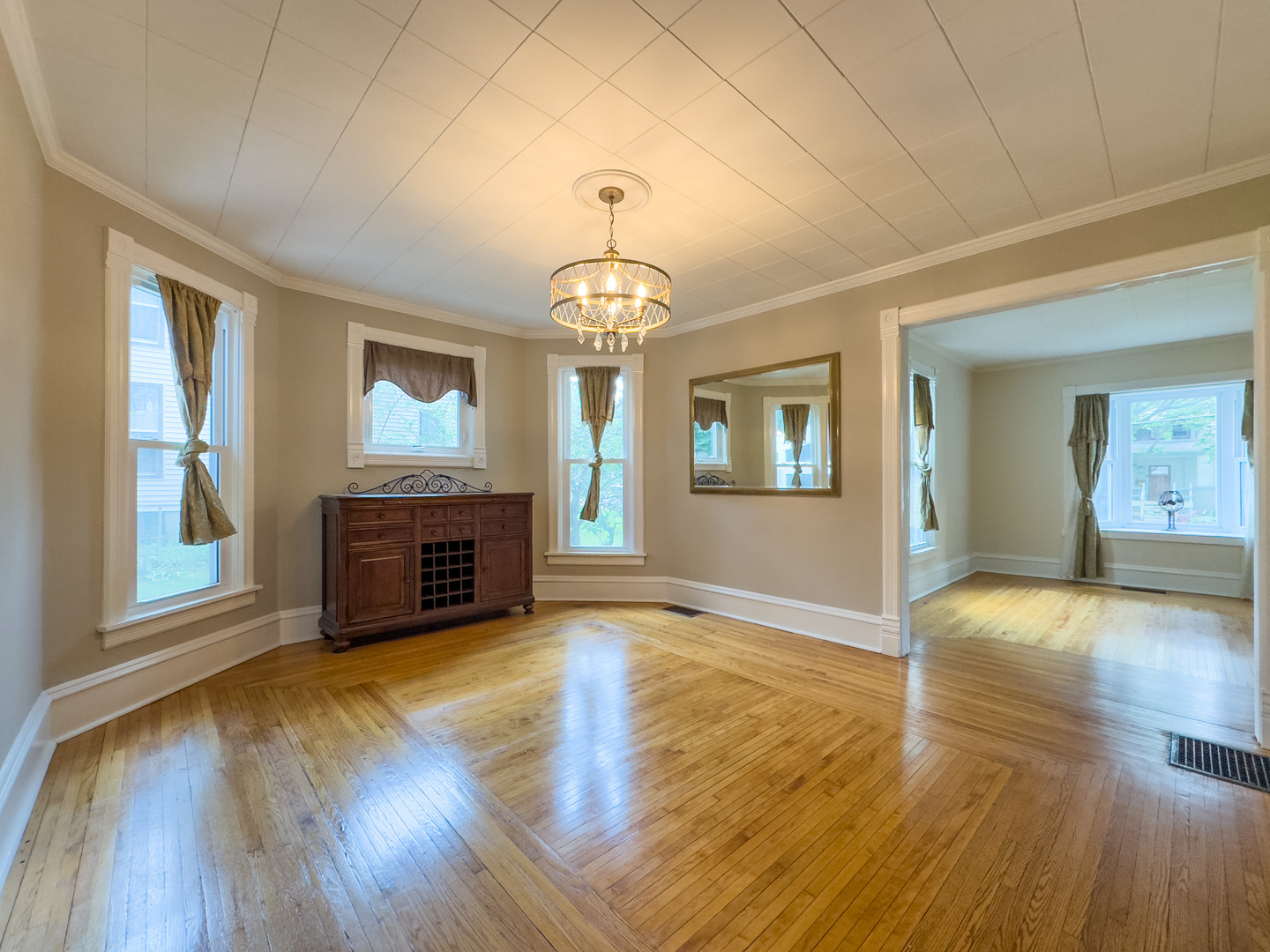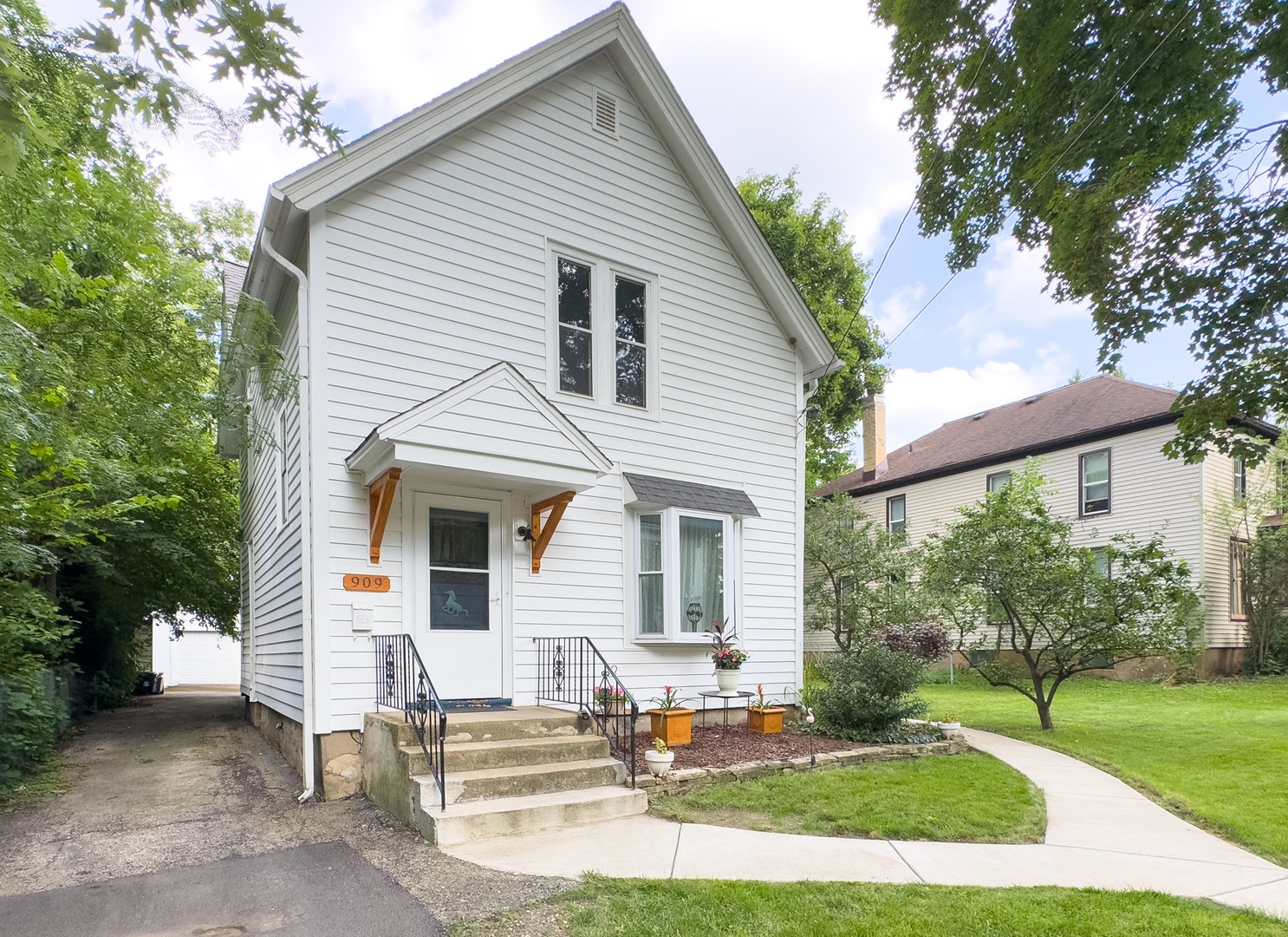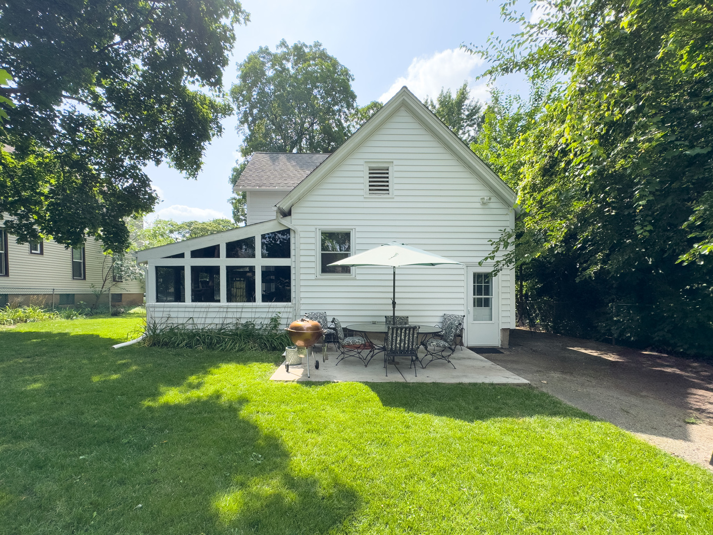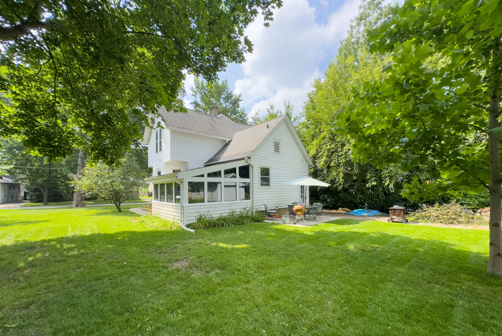Charming Elgin historic district home with spacious rooms, hardwood floors, and 9′ ceilings. First-floor bedroom with remodeled half bath. Sunroom off kitchen adds year-round living space. Upstairs offers 2 large bedrooms, full bath with clawfoot tub, and walk-in closets. Full unfinished basement with potential. Updates: windows 2022, sewer main 2024, sidewalks 2022, HVAC/water heater/electric 2015-2017, roof ~10 yrs. Double lot with porch, patio, and room to expand. 3D tour + floor plans included. Seller has an assumable mortgage with a low interest rate.