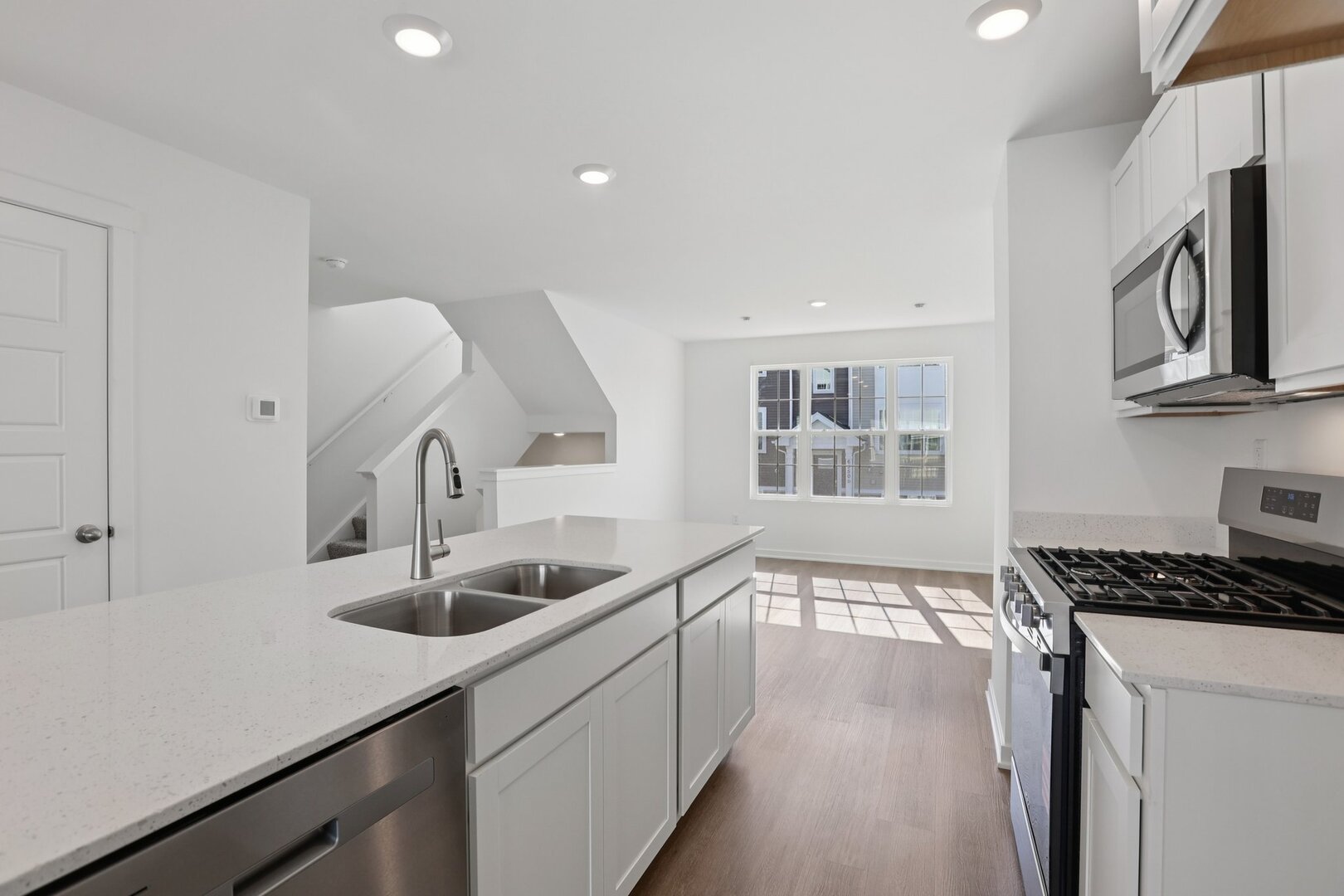 Find yourself at 909 Briar Glen Ct in Hampshire, Illinois, a beautiful new home in our Prairie Ridge community. This townhome will have an Early Next Year delivery date! Homesite includes a fully sodded yard that is maintained throughout the year as well as snow removal in the winter. The McKinley townhome plan offers 1,579 square feet of living space with 2 bedrooms, 2.5 baths, a loft, and a finished lower-level bonus room. Walking up to the main level, you will find this home’s open concept living space. The expansive kitchen overlooks both the front dining and back great room areas. Step outside onto your balcony, relax and enjoy your morning coffee. Additionally, your kitchen features designer soft-close cabinetry, a spacious island with quartz countertops, and pantry. Walking upstairs, enjoy your private get away with your large primary bedroom on its own side of the second floor with a en-suite bathroom containing a raised dual quartz vanity and walk-in closet. Enjoy the convenience of a second-floor laundry, loft, and a secondary bedroom with a full second bath. Luxury vinyl plank flooring throughout the kitchen, bathrooms, and laundry. On the lower level you will find the finished bonus room with ample space for a home office, game room, or an additional hang out area. All Chicago homes include our America’s Smart Home Technology. Photos are of similar home and model home. Actual home built may vary.