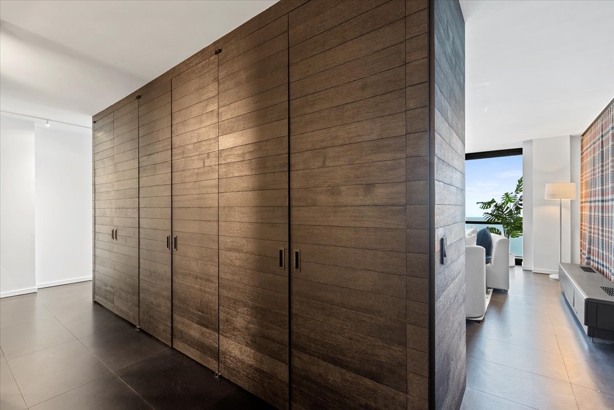 Spectacular, totally rehabbed apartment w/ panoramic unobstructed views of Lake Michigan from floor-to-ceiling windows, in full-amenity iconic Mies Van Der Rohe bldg. Stunning high-end materials were used throughout this custom renovation, which offers a refined, minimalist aesthetic, and no surface was left untouched. Features expansive living rm w/ custom A/V cabinet w/ birch bark doors. Dining rm that easily accommodates a large table. Gourmet kitchen w/ custom built-in cabinets, integrated high-end appliances, custom steel open shelving w/ LED lighting, Ann Sachs tile backsplash & honed marble countertops. Designer spa bth features luxurious Ann Sachs tile & custom Tadelakt plaster walls. Large bedroom offers 14 feet of professionally organized California closets w/ two full-length mirrors & custom LED lighting. Whisper-quiet cork flooring & LED mini track lighting run throughout the apartment, creating a sleek, modern atmosphere. Building offers 24-hour door staff, storage, bike storage, commissary, on-site management & sundeck w/ views of the Lake & Navy Pier. Short wait list (about 2 to 3 months) for rental parking in attached, heated garage. Low assessment includes cable and internet – all you pay is an electric bill. Steps to Oak Street Beach, Michigan Avenue shopping, Chicago’s finest restaurants, the Museum of Contemporary Art, Lakeshore Park & all that the Gold Coast & Streeterville have to offer.