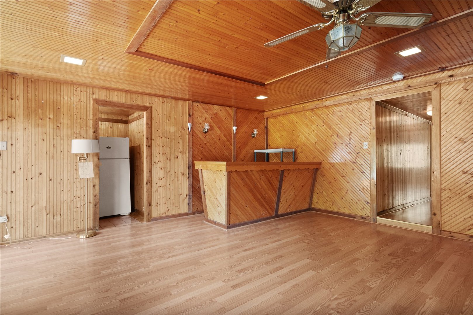 NEW PRICE!! GREAT VALUE!! Cute as a button! Charming 4-bedroom, 1-bath Cape Cod is tucked on an oversized lot with manicured landscaping and a private, fenced backyard. Step inside to a warm and inviting living room. The spacious kitchen with dining area is ideal for daily meals, while the large family room-complete with fireplace and bar-sets the perfect scene for entertaining. The main floor also offers the primary bedroom and a second bedroom, both sharing the full bath. Upstairs, you’ll find two additional bedrooms. Recent updates bring peace of mind: furnace (2021), AC (2020), gas water heater (2019), washer/dryer & refrigerator (2017), and roof (2016). Conveniently located near the high school, shopping, dining, entertainment, and expressway access, this home has it all! Make this one yours today. Quick close possible!