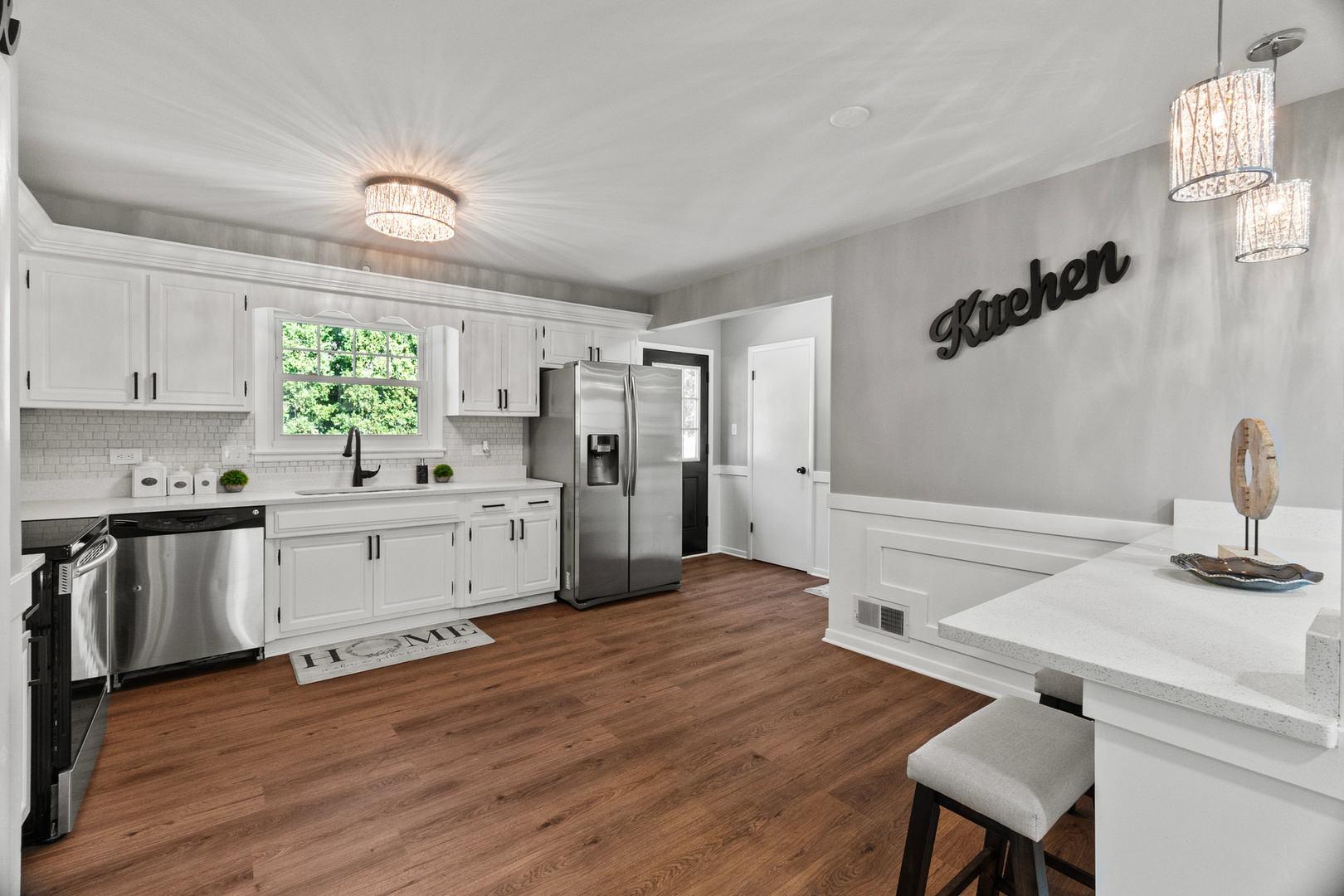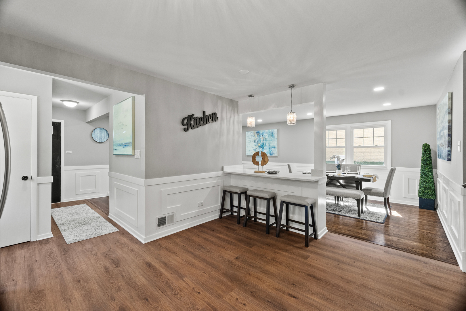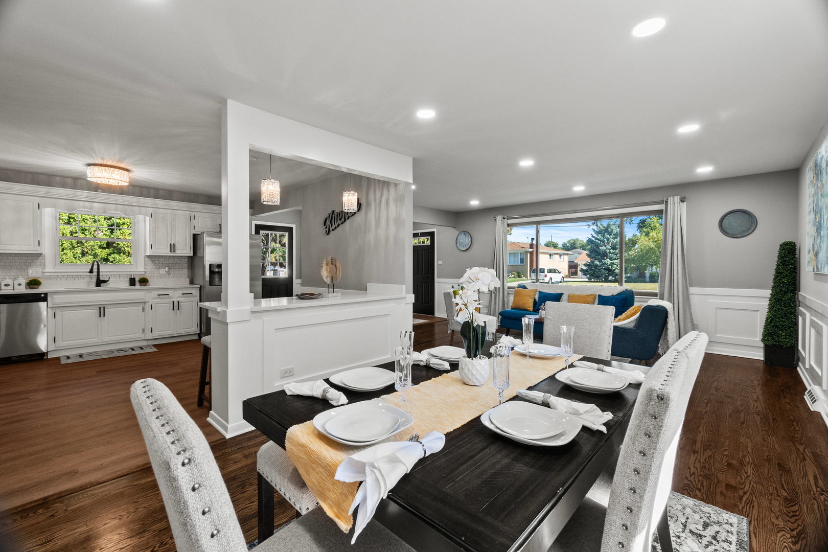 Welcome to this stunning split-level home located in a peaceful cul-de-sac in one of Naperville’s most desirable neighborhoods. This spacious and modern residence offers 3 bedrooms and 2 fully updated bathrooms, making it ideal for families who value space and flexibility. The main level features multiple living areas, including a bright and open living room and dining room, all with hardwood flooring, creating a seamless flow throughout. The stylish kitchen is a chef’s dream with white cabinets, sleek quartz countertops, stainless steel appliances, and large pantry. Upstairs, the second level includes three generously sized bedrooms and one modern bathrooms, including a comfortable primary suite with two closets. The lower level offers a spacious family entertainment room, a dry-bar, laundry area, mechanical room and its own full bathroom-perfect for guests or multi-generational living. Step outside to a private backyard, ideal for relaxing, entertaining, or enjoying family gatherings in a serene setting. Located within the School District 122, and just minutes from shopping centers, dining, parks, and easy access to I-294, this home combines comfort, convenience, and location in one perfect package. Don’t miss this incredible opportunity-schedule your private showing today!