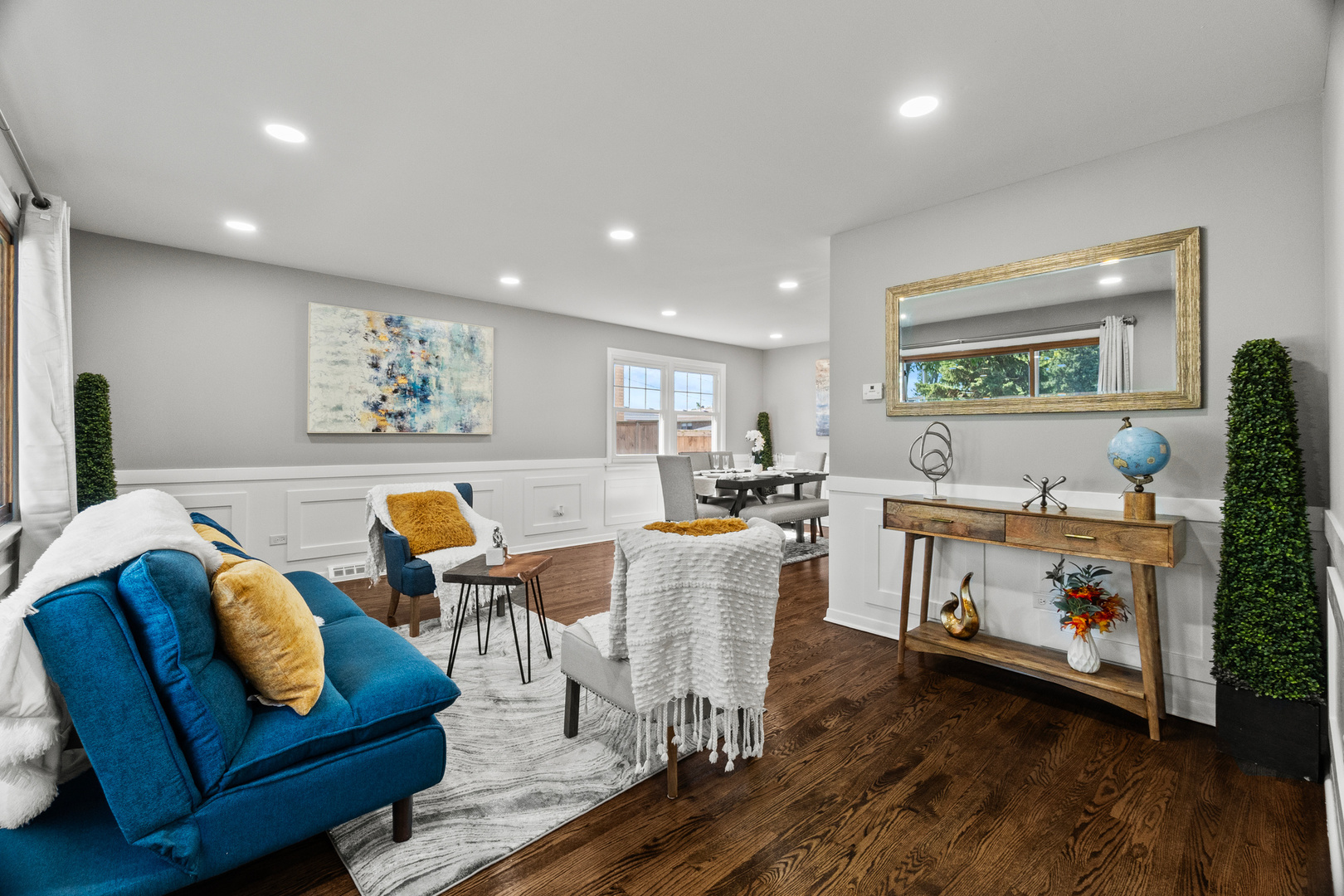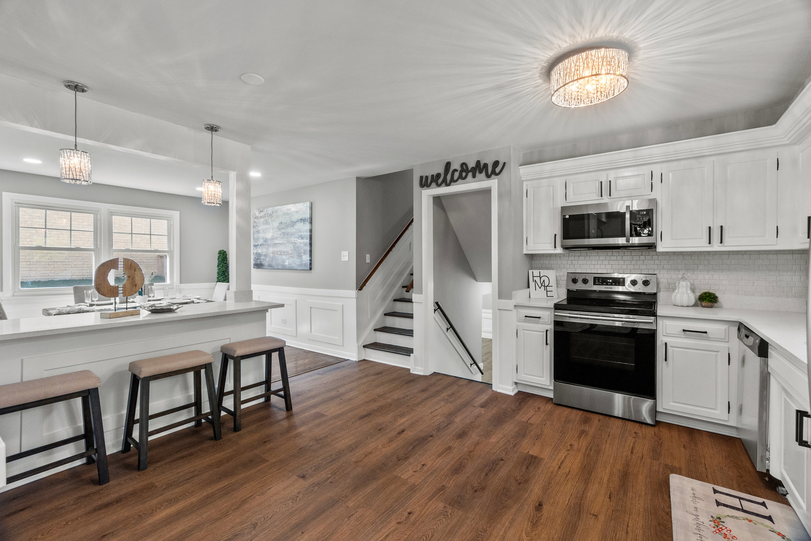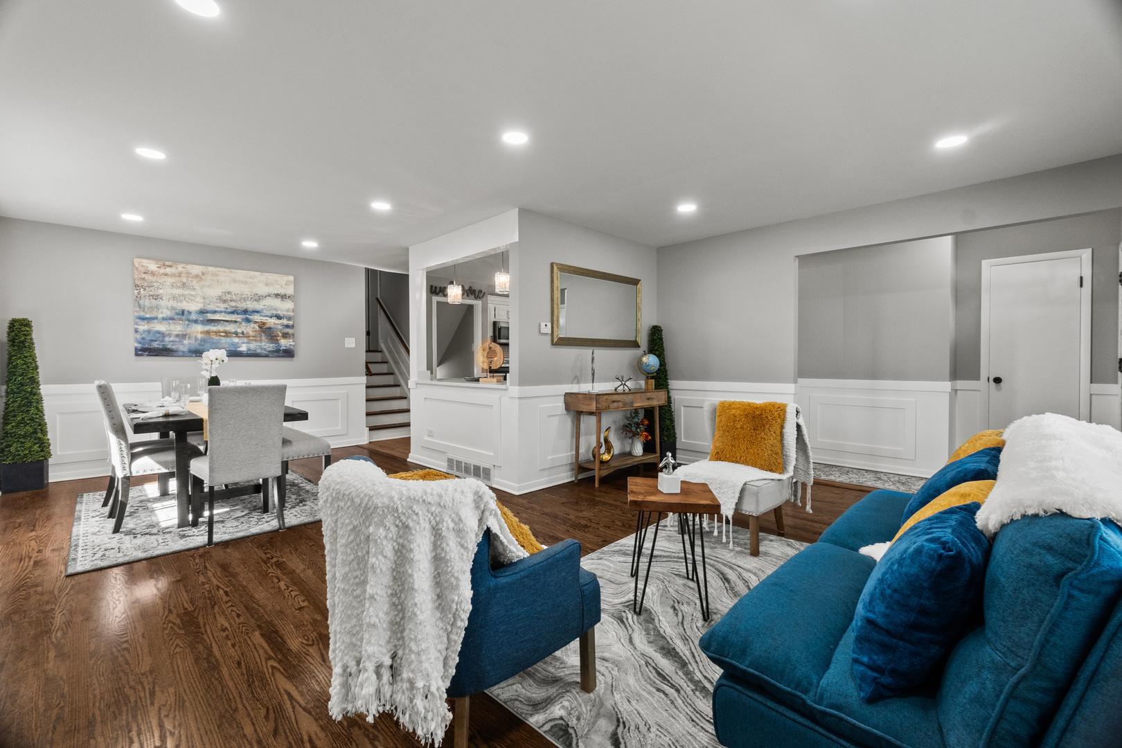 Welcome to this stunning split-level home located in a peaceful cul-de-sac in one of Naperville’s most desirable neighborhoods. This spacious and modern residence offers 3 bedrooms and 2 fully updated bathrooms, making it ideal for families who value space and flexibility. The main level features multiple living areas, including a bright and open living room and dining room, all with hardwood flooring, creating a seamless flow throughout. The stylish kitchen is a chef’s dream with white cabinets, sleek quartz countertops, stainless steel appliances, and large pantry. Upstairs, the second level includes three generously sized bedrooms and one modern bathrooms, including a comfortable primary suite with two closets. The lower level offers a spacious family entertainment room, a dry-bar, laundry area, mechanical room and its own full bathroom-perfect for guests or multi-generational living. Step outside to a private backyard, ideal for relaxing, entertaining, or enjoying family gatherings in a serene setting. Located within the School District 122, and just minutes from shopping centers, dining, parks, and easy access to I-294, this home combines comfort, convenience, and location in one perfect package. Don’t miss this incredible opportunity-schedule your private showing today!