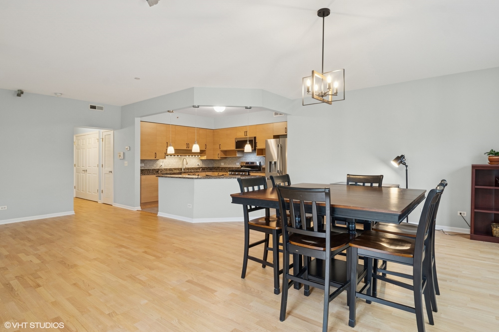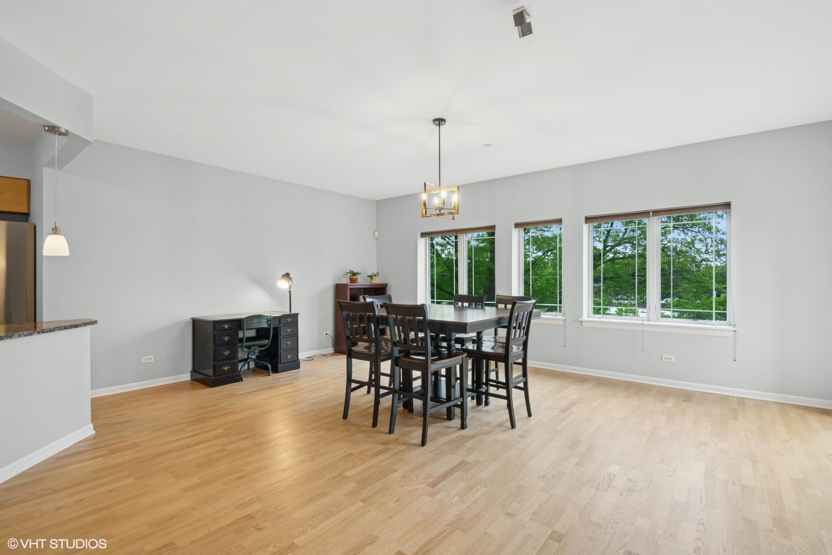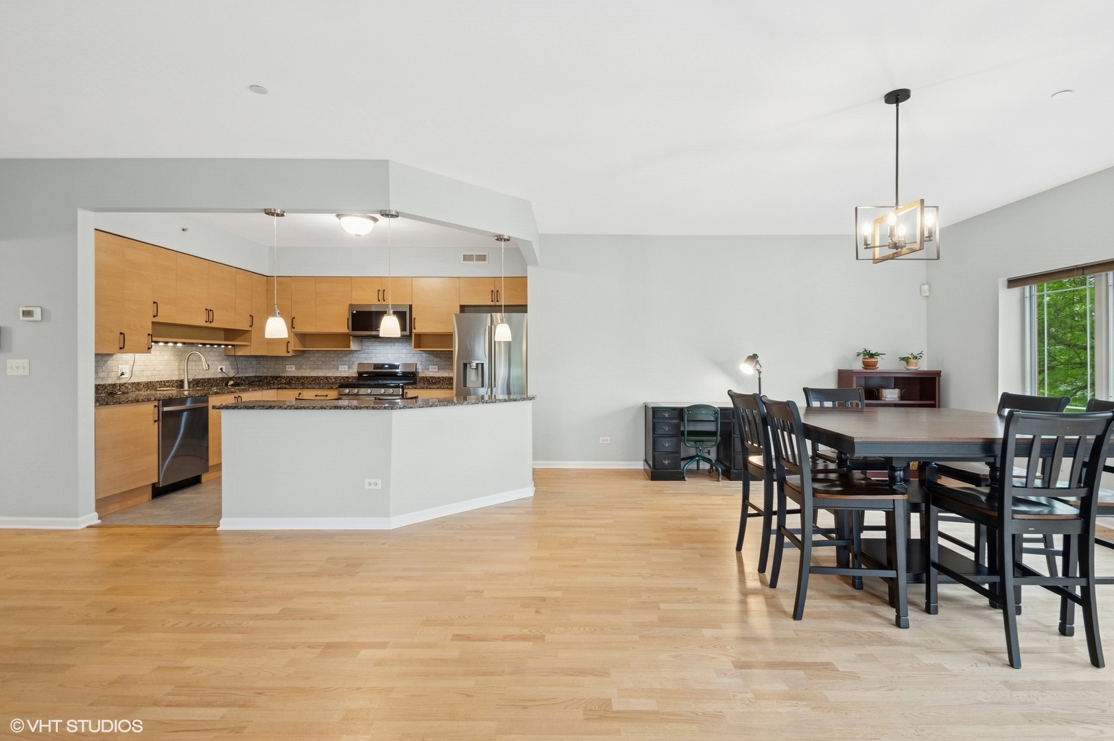 Come experience this impressive condo! Showcasing a top floor location plus a sought-after end, corner positioning with 2 exposures! A multitude of large, Prairie style windows offer an abundance of natural light and picturesque views. A separate entry foyer sets the stage for generous room dimensions throughout. The open kitchen compliments today’s design trends where style meets appeal. Featuring granite counters and brand-new stainless appliances. The kitchen also provides abundant cabinets and work area plus additional under cabinet lighting. Delightful breakfast bar overlooks the living/dining area and is perfect for a quick bite or serving guests. The living room highlights surround sound speakers and versatile options for furniture placement. Step out to a corner balcony with Prairie style lighting and open views. The primary bedroom is an oasis of comfort with a large walk in closet and ensuite bath, complimented by a soaking tub and walk in shower. A separate fully equipped laundry room with sink offers plenty of storage options. Updated and upgraded throughout with fresh new paint in a pleasing color palette, new hardwood floors in both bedrooms and tasteful lighting fixtures complete the package. Heated, underground garage with 2 spaces and elevator access make this a lifestyle you won’t want to miss. Enjoy the benefits of living near all that Park Ridge has to offer.