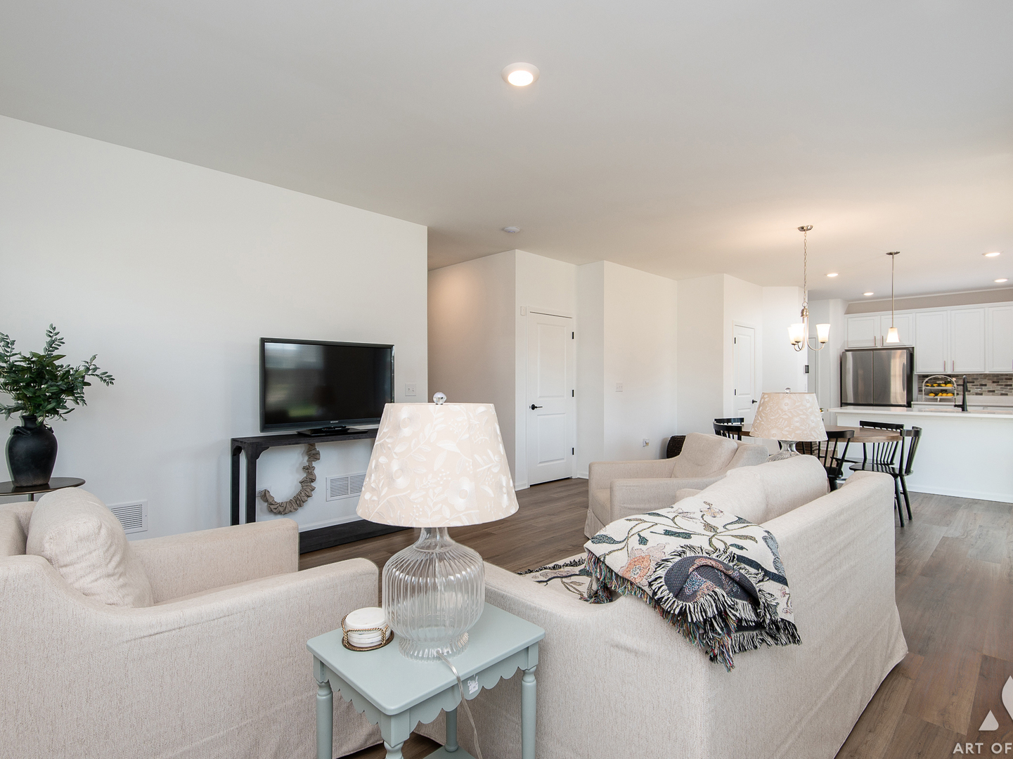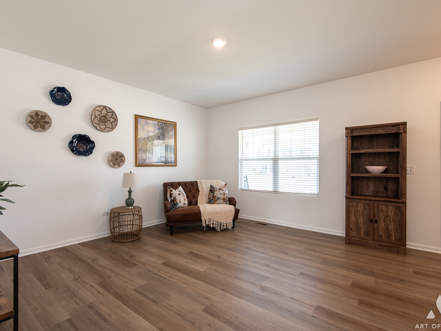 Welcome to the Corliss at Darby Farm! This BEAUTIFUL single family home includes three bedrooms, an upstairs loft, two-and-a-half bathrooms, a flex room, an open-concept kitchen, and a two-car garage. Walking up to the front door and into your future home, you will notice the first unique feature of this home design; a flex room. This versatile room can be used to fit your lifestyle: a study, a home office, a living room, or an additional dining area. Down the hall is a powder room that is tucked away for privacy and a convenient hall closet for storage. Around the corner, you will find the bright and airy family room. The spacious family room is perfect for entertaining friends or having family movie night! The adjoining eating area and adjacent kitchen make this space the heart of the home. This fantastic kitchen includes a pantry and a long peninsula with cozy a breakfast area for additional seating, stainless steel appliances a lovely backsplash and plenty of counterspace for cooking and preparing. Heading upstairs, you will notice the extra-wide staircase giving it an open, airy feeling. Arriving at the top of the staircase, you will see the oversized loft area complete with its own storage closet. Located off the loft is the first of two secondary bedrooms. Both bedrooms are oversized and include walk-in closets. The hall bathroom has been designed to have multiple users with a dual sink vanity top. Tired of carrying laundry up and down the stairs? You will be thrilled when you see your spacious second-floor laundry room, just steps away from all bedrooms! Finishing the second floor is your owner’s suite, which features a large bedroom, a walk-in closet, and a bathroom. Getting ready in this bathroom will be something to look forward to each morning! Rounding out this home is a full basement with a rough-in for a future bathroom. This home has a beautiful fenced in yard complete with a stamped concrete patio perfect for entertaining. You won’t want to miss this beautiful home. Call for your private showing today!
