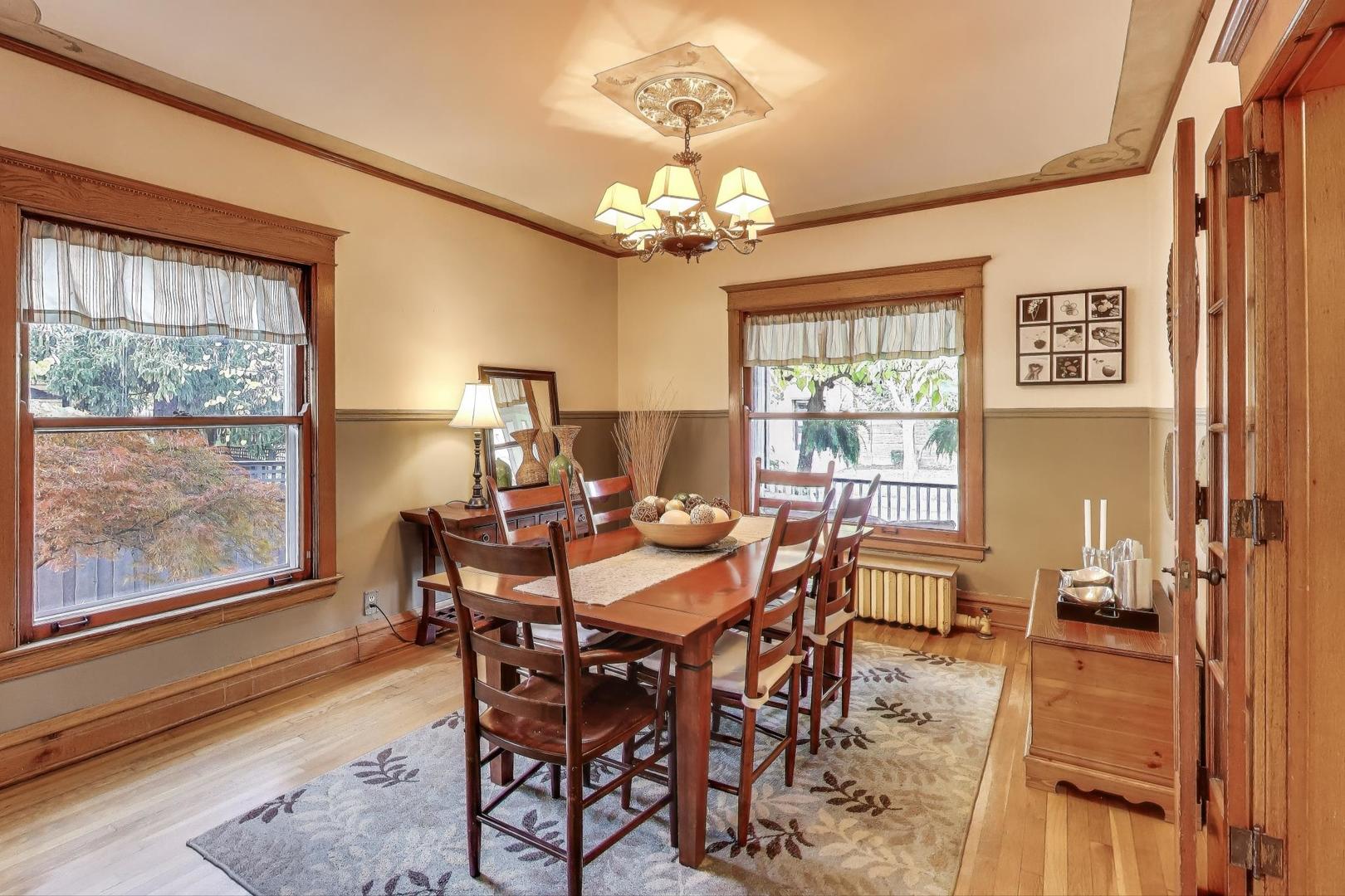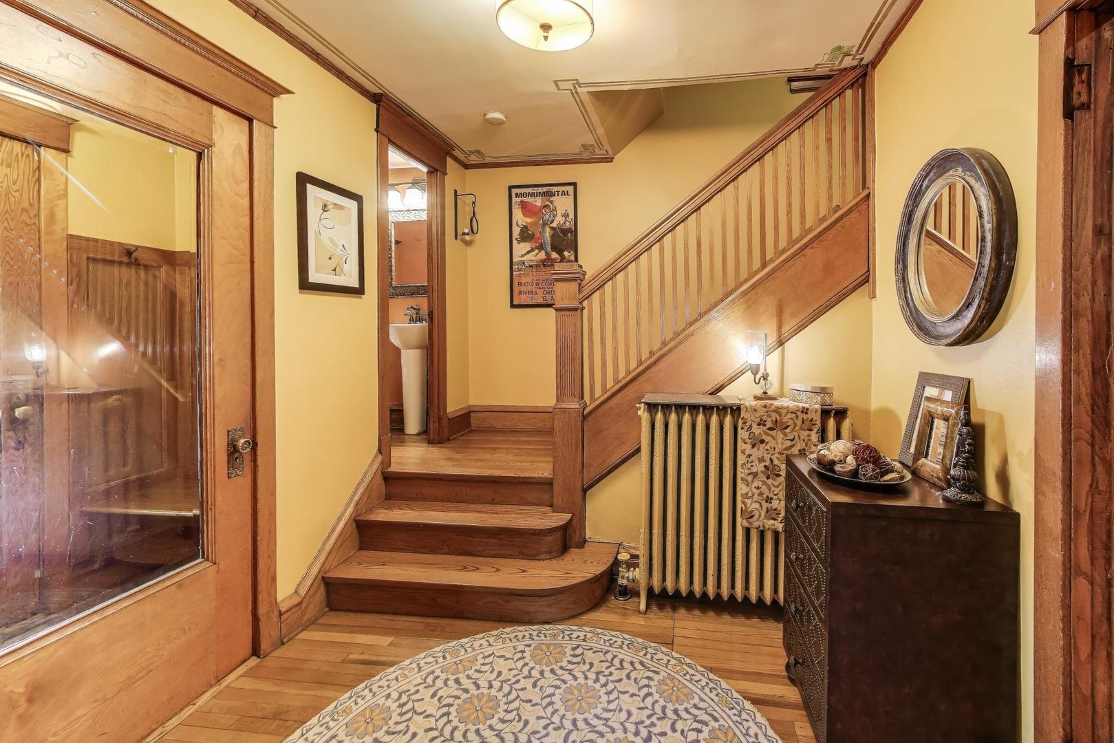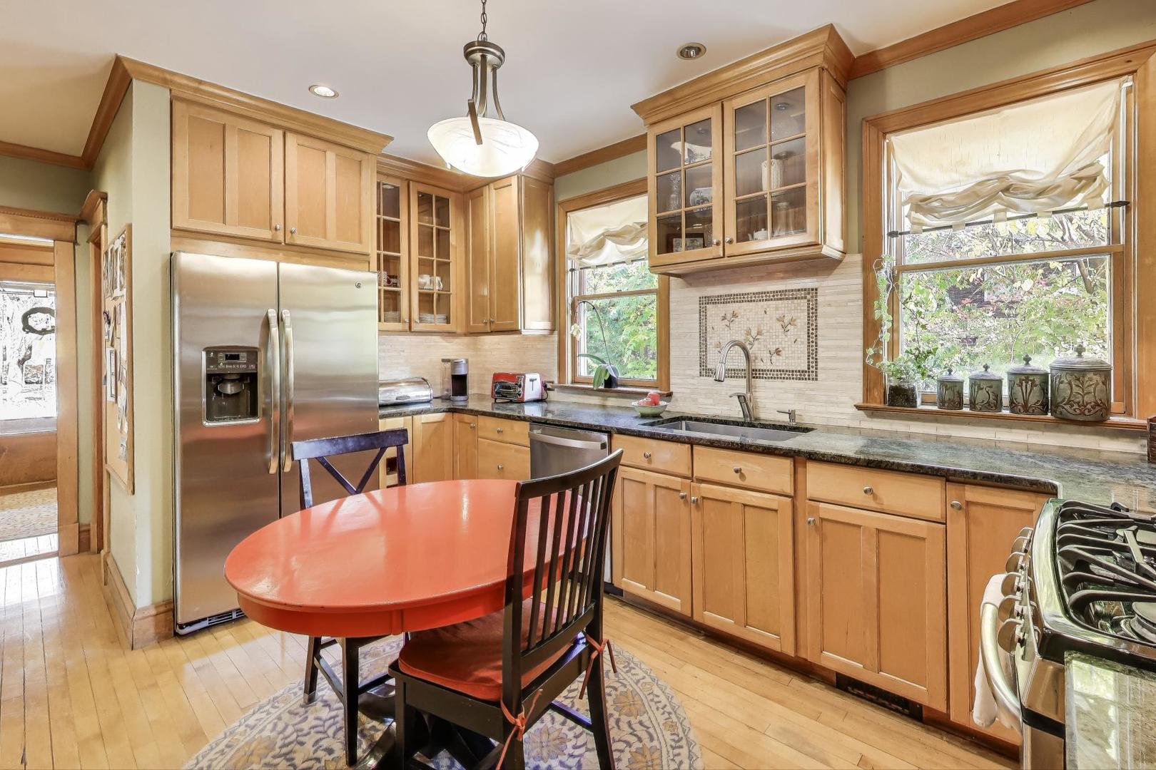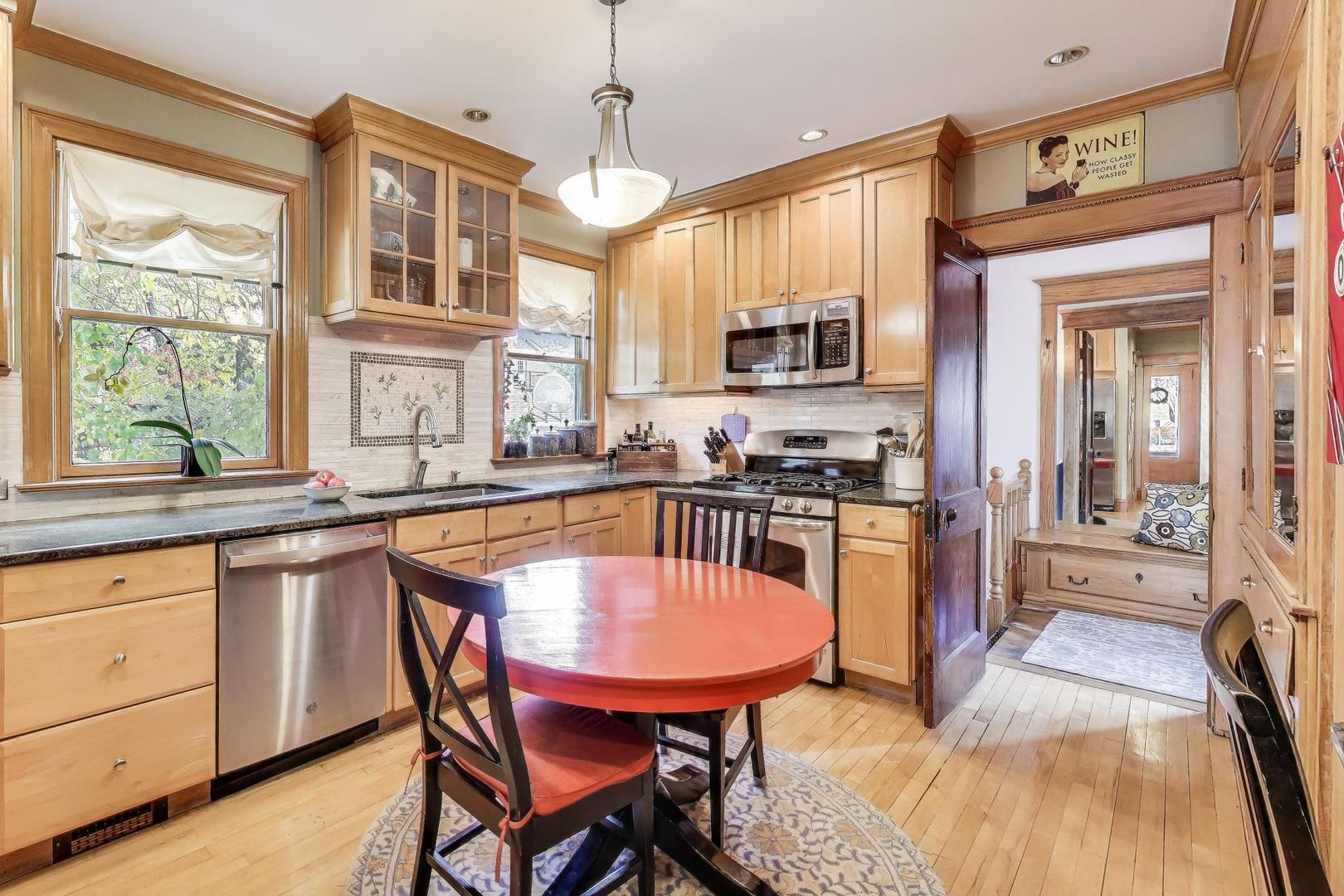 This absolute GEM of a home has gorgeous original woodwork throughout- including crown molding, Oak doors, glass french doors into the dining room and beautiful Oak staircase. Adorable powder room tucked into the staircase landing, generous pantry and built-in antique Pier Mirror in the mudroom are some of the wonderful surprises in store! This home lives large with 4 bedrooms PLUS an office upstairs with plenty of natural light. First floor features Eat-in kitchen, living room with wood burning fireplace and separate dining room ready to host your gatherings with ease. Beautifully finished basement offers lots of spaces for homework, crafting, laundry or just hanging out watching a movie together. Wonderful center of town location offers easy commuting with Metra & El trains nearby, plus shopping, grocery, pool & farmers market all within close walking distance. Fenced in yard offers privacy & room for evenings al fresco, with 2 car garage offering plenty of storage. New Boiler 2023, full exterior of house painted 2024. Come take a look at this beauty!