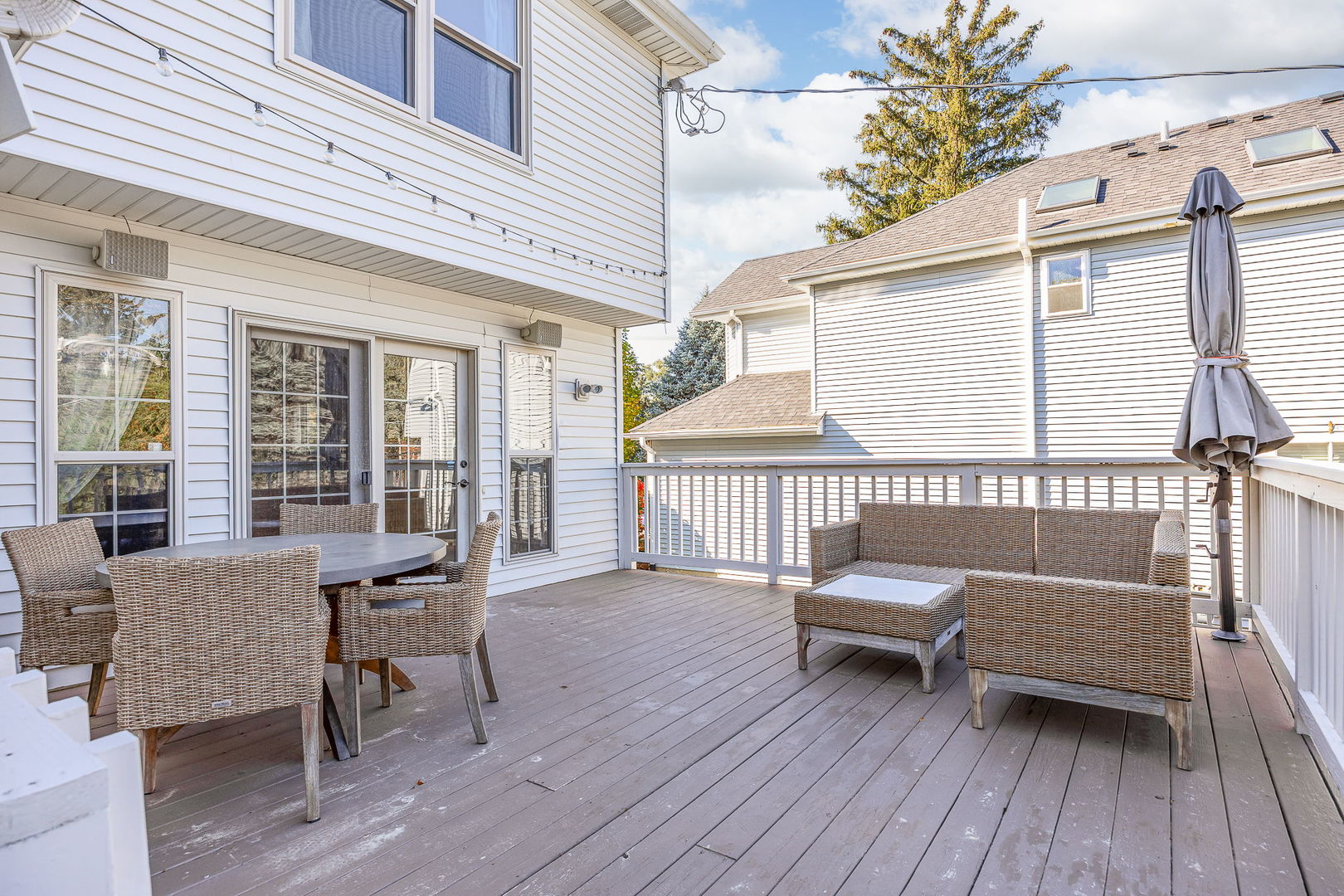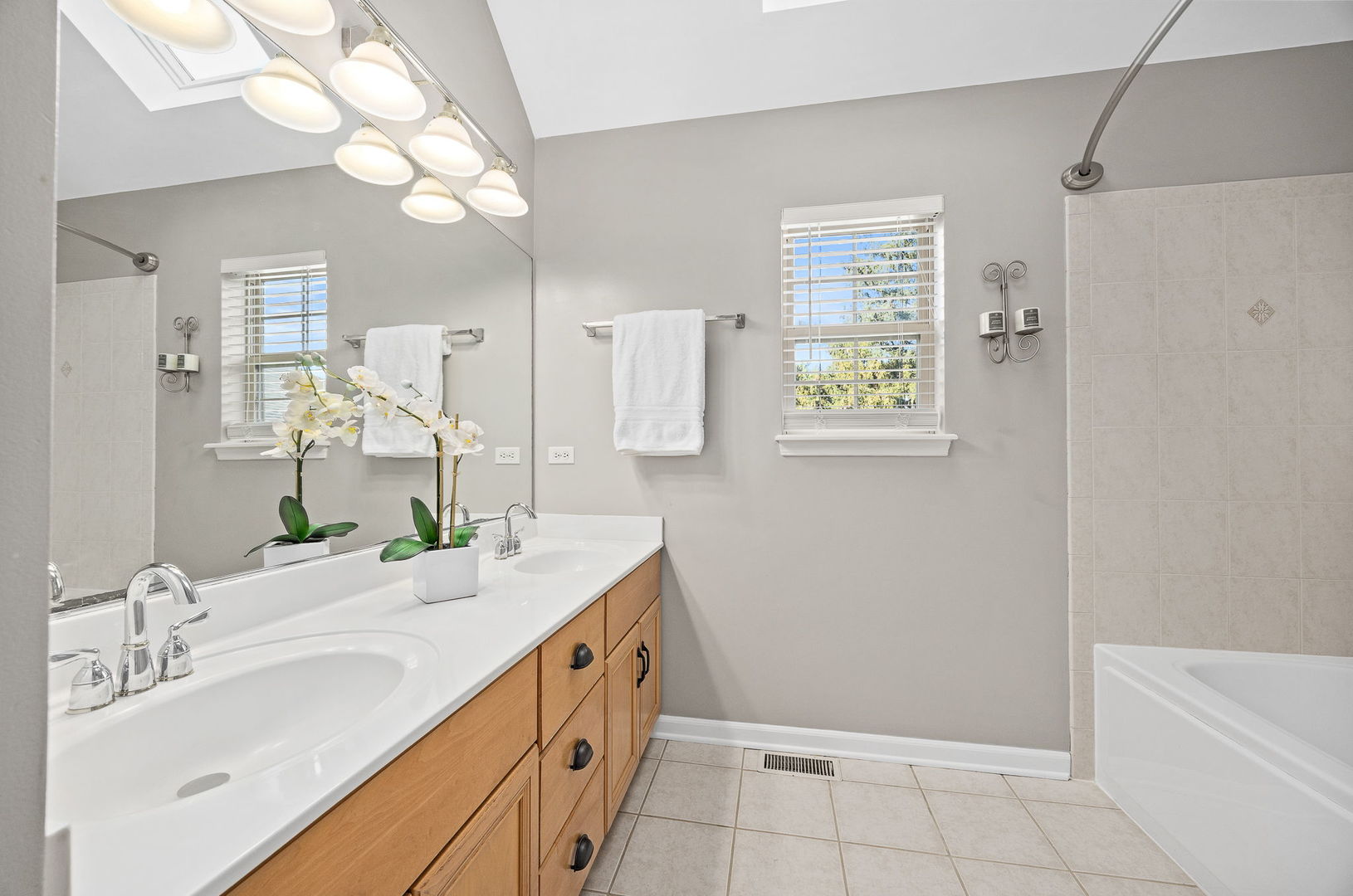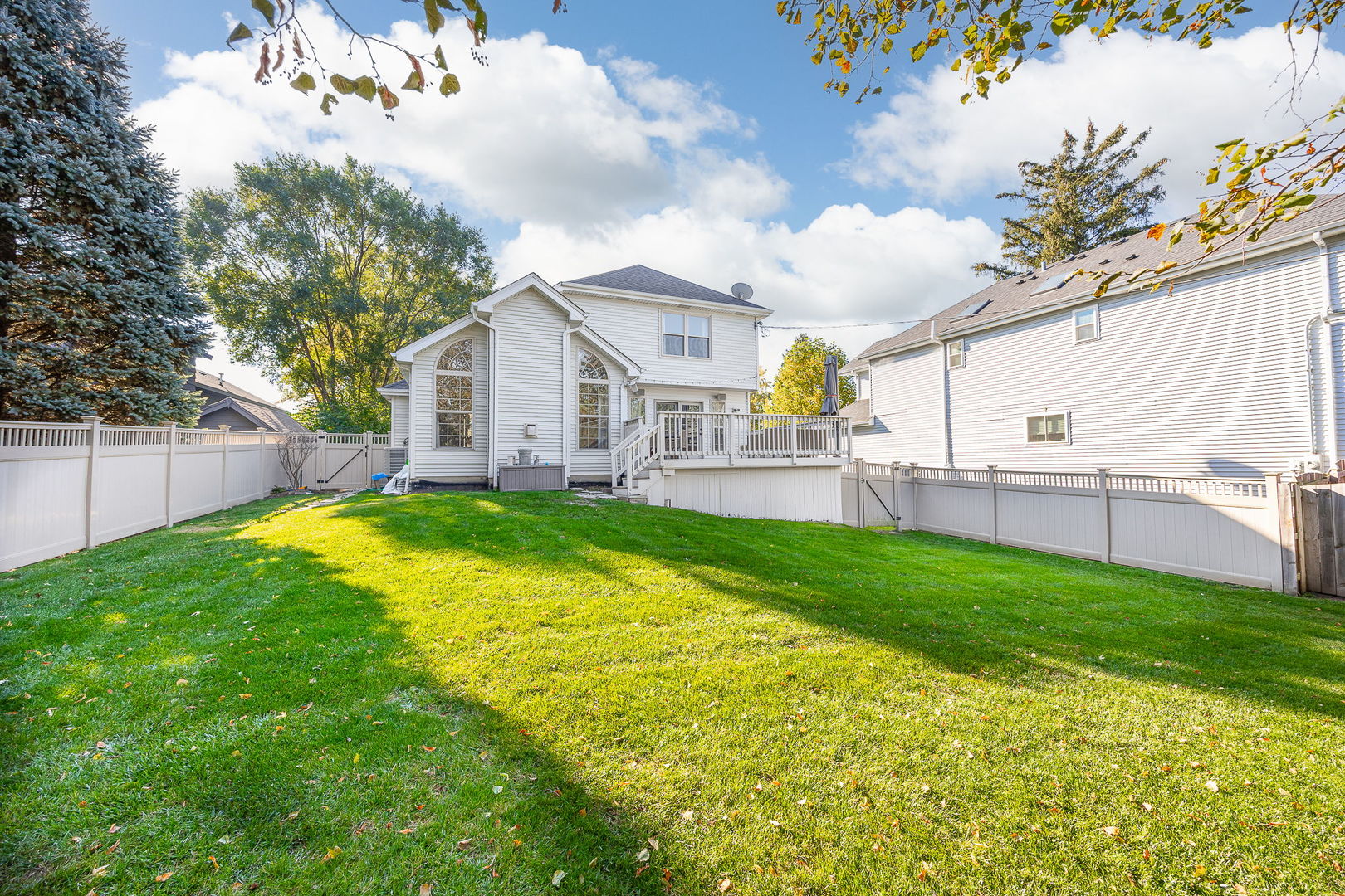 Charming Custom 4 Bedroom 3 1/2 Bath Home on a Spacious Lot in Lisle – Just Blocks from the Metra Station and all Downtown Lisle has to offer. This beautifully designed home features an open floor plan with newly re-finished hardwood floors, multiple skylights and an inviting front porch perfect for relaxing. The family room with cozy fireplace and soaring ceiling is light and bright. The spacious kitchen boasts maple cabinetry and seamlessly flows into the dining and family rooms, ideal for entertaining. The door in eat-in-kitchen leads to a deck overlooking the fenced backyard, surrounded by mature trees for added privacy. The primary suite offers a soaring volume ceiling, 2 generous walk-in closets and a bathroom with dual sinks and a soaking tub. Additional highlights include convenient first-floor laundry and a fully finished basement complete with a full bathroom-perfect for guests or recreation.