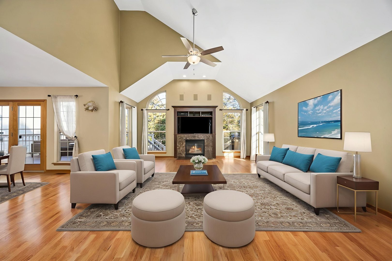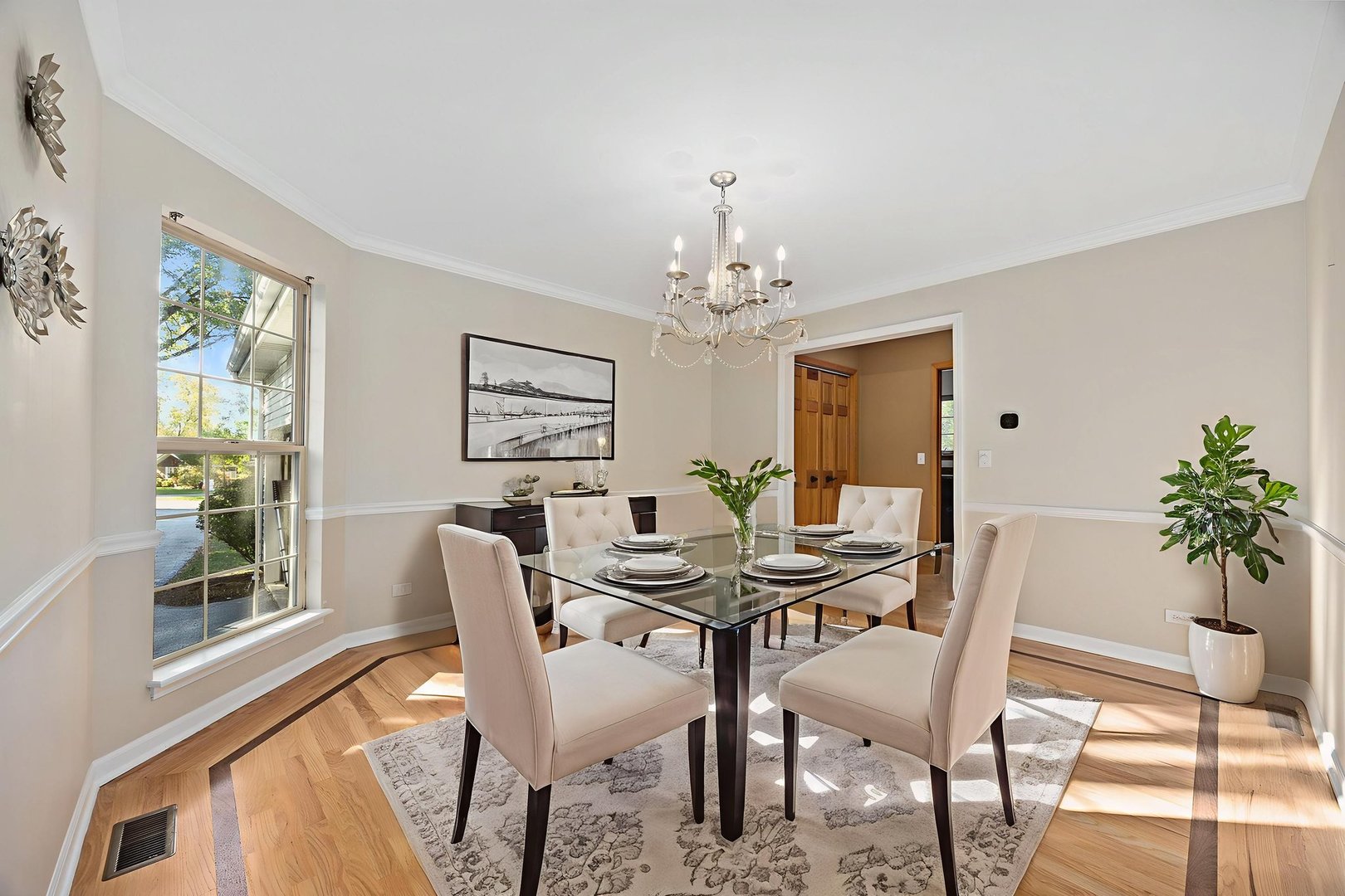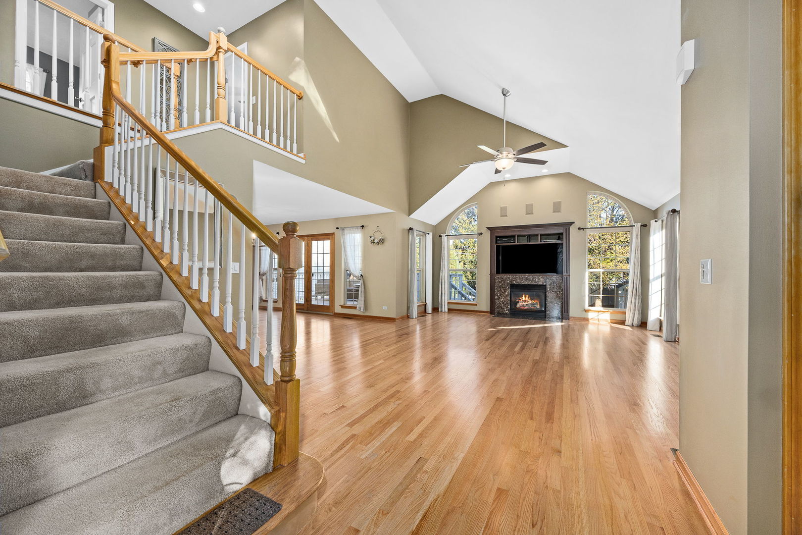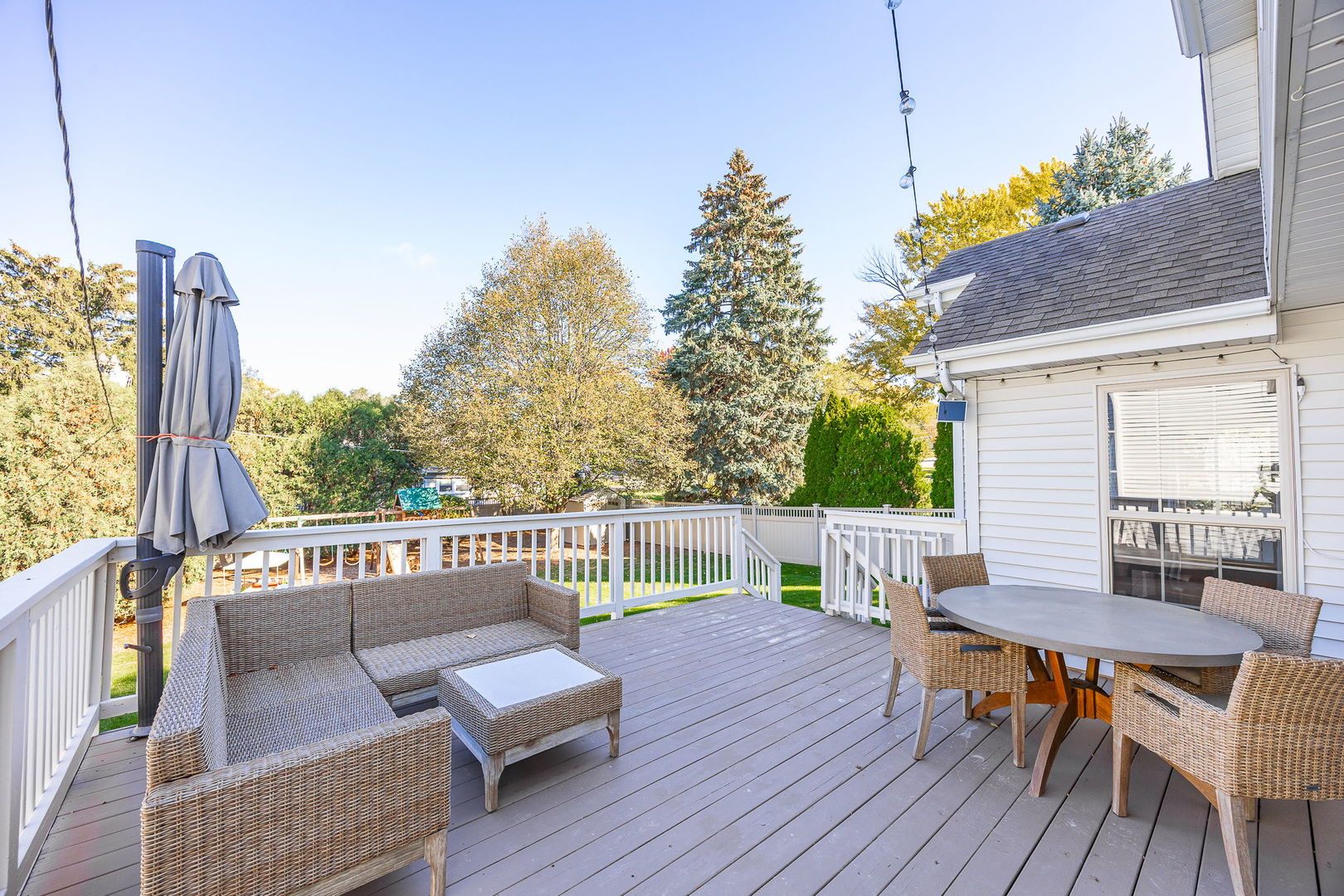 Charming Custom 4 Bedroom 3 1/2 Bath Home on a Spacious Lot in Lisle – Just Blocks from the Metra Station and all Downtown Lisle has to offer. This beautifully designed home features an open floor plan with newly re-finished hardwood floors, multiple skylights and an inviting front porch perfect for relaxing. The family room with cozy fireplace and soaring ceiling is light and bright. The spacious kitchen boasts maple cabinetry and seamlessly flows into the dining and family rooms, ideal for entertaining. The door in eat-in-kitchen leads to a deck overlooking the fenced backyard, surrounded by mature trees for added privacy. The primary suite offers a soaring volume ceiling, 2 generous walk-in closets and a bathroom with dual sinks and a soaking tub. Additional highlights include convenient first-floor laundry and a fully finished basement complete with a full bathroom-perfect for guests or recreation.