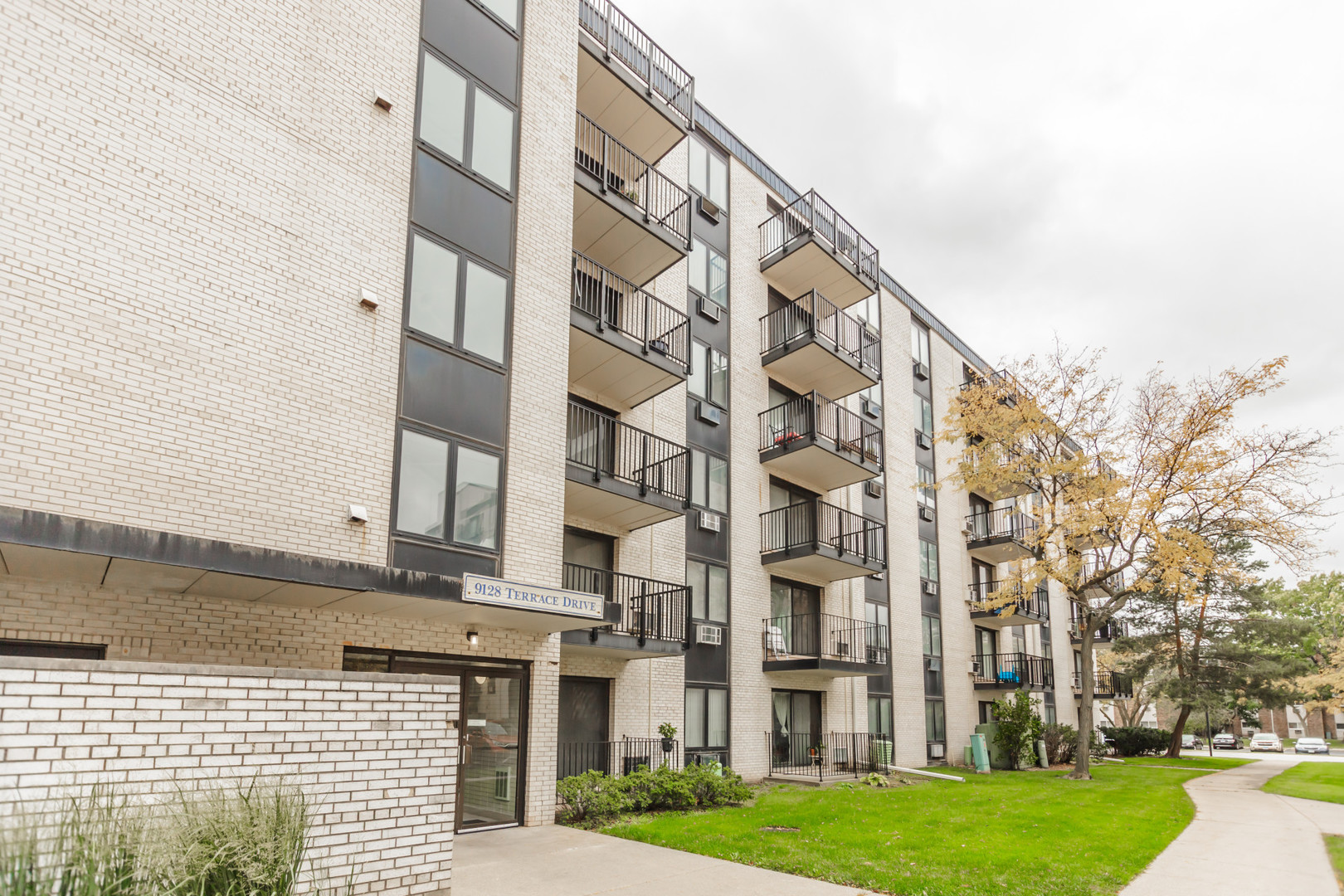 Largest corner unit, open space with formal living, dining area. Oak cabinets in kitchen, granite counter, SS appliances including dishwasher. Very spacious bedroom with three closets in bedroom. Large living room with patio doors lead to a balcony. Same floor laundry and storage. Clubhouse features a pool, party room and a library, & exercise room. There are cameras on both entrances. Near shopping and 294. Pet friendly complex.