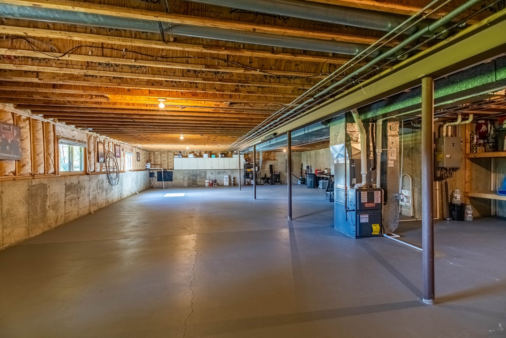 Welcome Home! This beautiful ranch-style home blends comfort, space, and modern updates in one perfect package. Step inside and fall in love with the open-concept great room, featuring volume ceilings, surround sound, and a cozy wood-burning fireplace – ideal for relaxing or entertaining. With a new roof, newer windows, and newer wood laminate floors, this home is truly move-in ready. The chef’s kitchen boasts granite countertops, updated cabinetry, hardwood flooring, and plenty of counter and cabinet space. Enjoy casual meals in the eat-in kitchen or step through the sliding doors to your huge Trex deck overlooking peaceful nature views complete with a hot tub and no homes behind you for ultimate privacy. Your private primary suite features a walk-in closet, a beautifully newer primary bath, jacuzzi tub, double sinks, and a separate shower, a true retreat after a long day. The laundry room, located conveniently off the kitchen, includes its own half bath and extra pantry storage. The massive unfinished basement is clean, open, and ready for your ideas – finish it to add living space and increase your home’s value. Don’t miss the heated 3-car garage with tons of storage space, a tankless water heater, and the extra land to the left of the home – all part of your property! Located in a desirable area surrounded by nature, recreation, and convenience, this home offers privacy, character, and room to grow. Homes like this don’t last long – schedule your showing today!