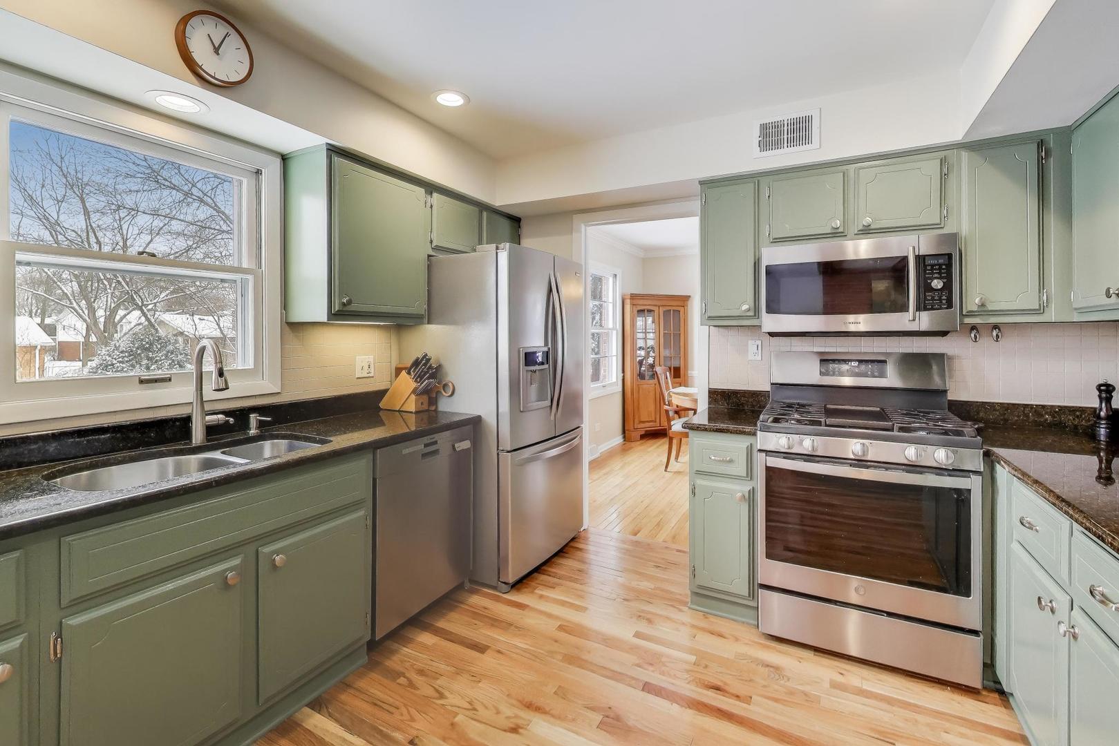 Welcome to your dream home in the sought-after neighborhood of Reseda! This move-in ready gem sits within a sidewalk community, offering both comfort and convenience. Step through the inviting foyer and into a spacious living room bathed in natural light from an abundance of windows. The formal dining area is perfect for hosting gatherings or special dinners. The open concept design seamlessly connects the kitchen to the family room, making it the perfect space for entertaining or gatherings. The kitchen is a chef’s delight, featuring granite countertops and stainless steel appliances. The family room boasts warm hardwood floors and a brick gas fireplace, creating a welcoming hub for relaxation. An updated half bath (2019) completes this level. Step outside to your own backyard oasis, where you’ll find a private new trek deck (2023) and spacious green area, perfect for entertaining. Venture upstairs to discover the primary suite complete with a walk-in organized closet and updated bath featuring a walk-in shower (2017). Three additional bedrooms and an updated full bath (2016) featuring a double vanity and a luxurious soaking tub with tile. But that’s not all! This home offers a fully finished basement, equipped with a recreation room, office area, epoxy floored laundry room and ample storage, making it perfect for entertaining or simply unwinding after a long day. Additional updates include: a/c (2024), furnace (2024), water heater (2024), oven/stove (2023), dishwasher (2023), hardwood flooring (2018 & 2025), new sewer line (2023), gutter guards (2024), epoxy garage floors. Situated close to parks, schools, and the vibrant downtown Palatine, you’ll have easy access to Metra trains, dining, shopping, nightlife, and so much more!