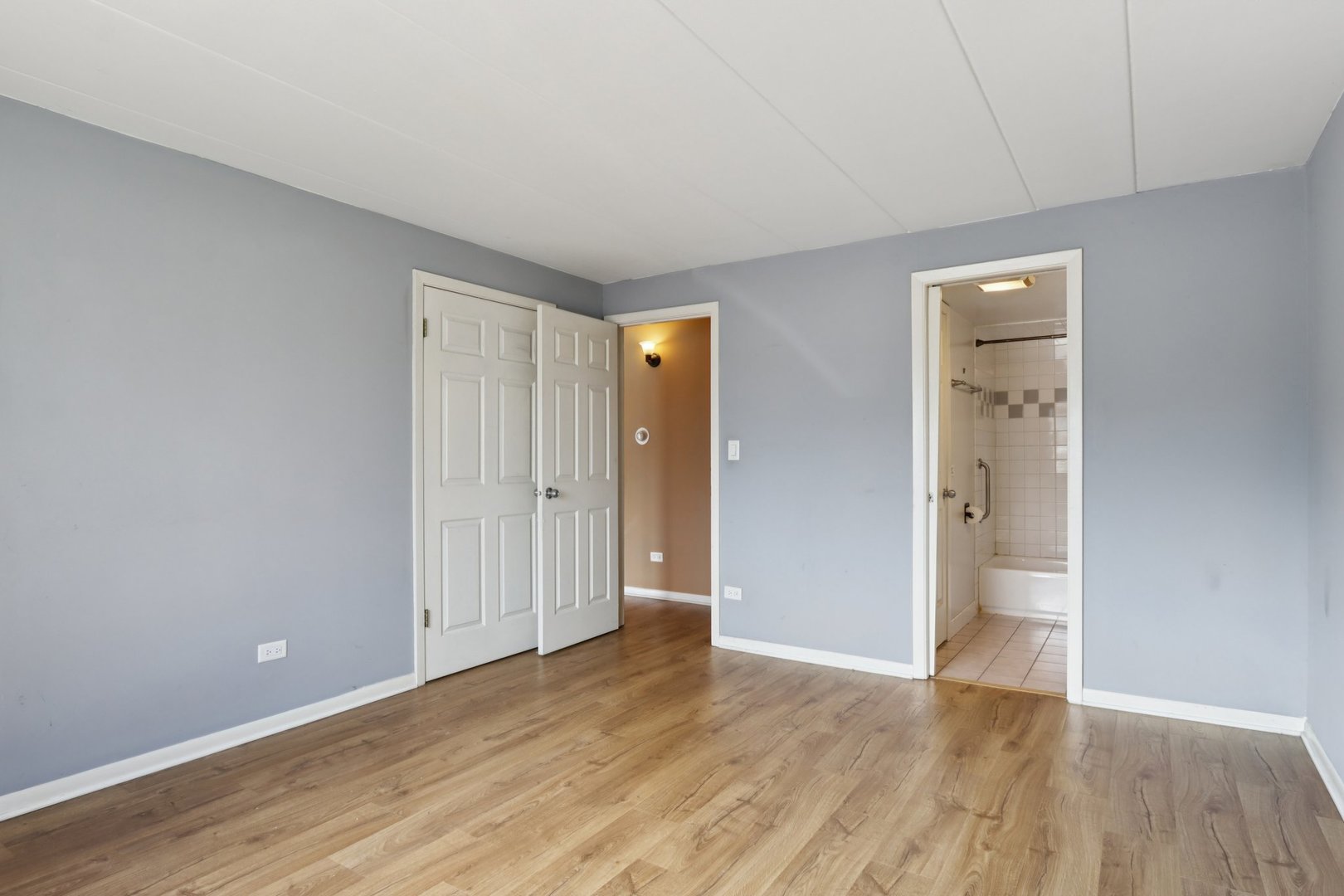 *** All reasonable offers will be considered! Tenant has vacated, unit has been professionally cleaned, freshly painted, & is ready for immediate owner occupancy!***NEAR DOWNTOWN DES PLAINES AMENITIES! EASY ACCESS TO SHOPPING, METRA, & RIVER WALK! This oversized ranch layout is the one you’ve been waiting for! Enjoy easy living in a beautifully maintained condo building boasting durable brick curb appeal & ample parking! Step inside the shared foyer and note the security doors, convenient doorbell/cell phone system, and well-maintained interior! Enjoy a well-maintained and beautifully updated condo! As you enter, take note of the formal foyer, newer paint, beautiful wood-look flooring, & updated fixtures! This spacious ranch floorplan offers an oversized bedroom with plenty of room for a king bed + bedroom set, ample closet space, and bonus entrance to the bathroom! Bathroom offers a soaking tub/shower combo & dual entrances! No need for blinds, this south-facing unit has no direct neighbors! Host events with ease in the formal dining room & adjacent galley-style kitchen offering neutral white cabinetry! You will love the spacious living room boasting private south-facing views, sliding doors, & open space next door! The building is very well maintained and offers a spacious laundry room, private storage locker, & 1 dedicated parking space! Located near Metra, shopping, restaurants, entertainment, parks, & public transportation! Incredible location, easy HOA living, beautiful brick building, & quick closing is possible! Associate covers the cost of gas, heat, water, garbage, & lawn care/snow removal. Very low electric bill & affordable taxes. Peaceful building with no rentals allowed; owner occupancy only!
