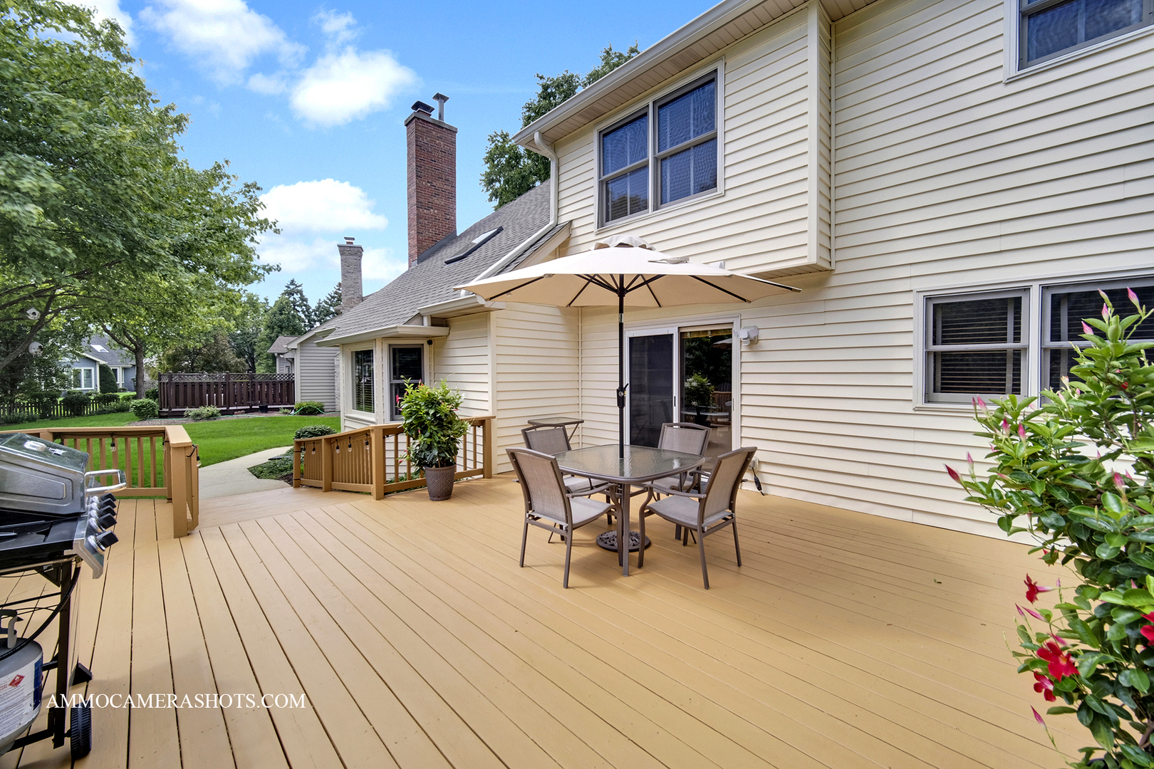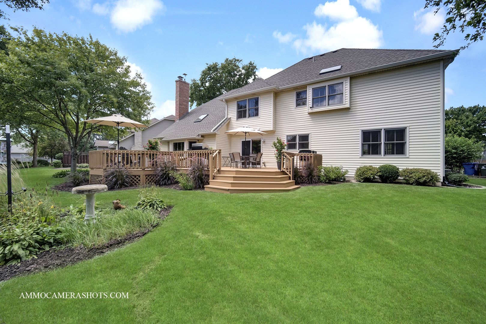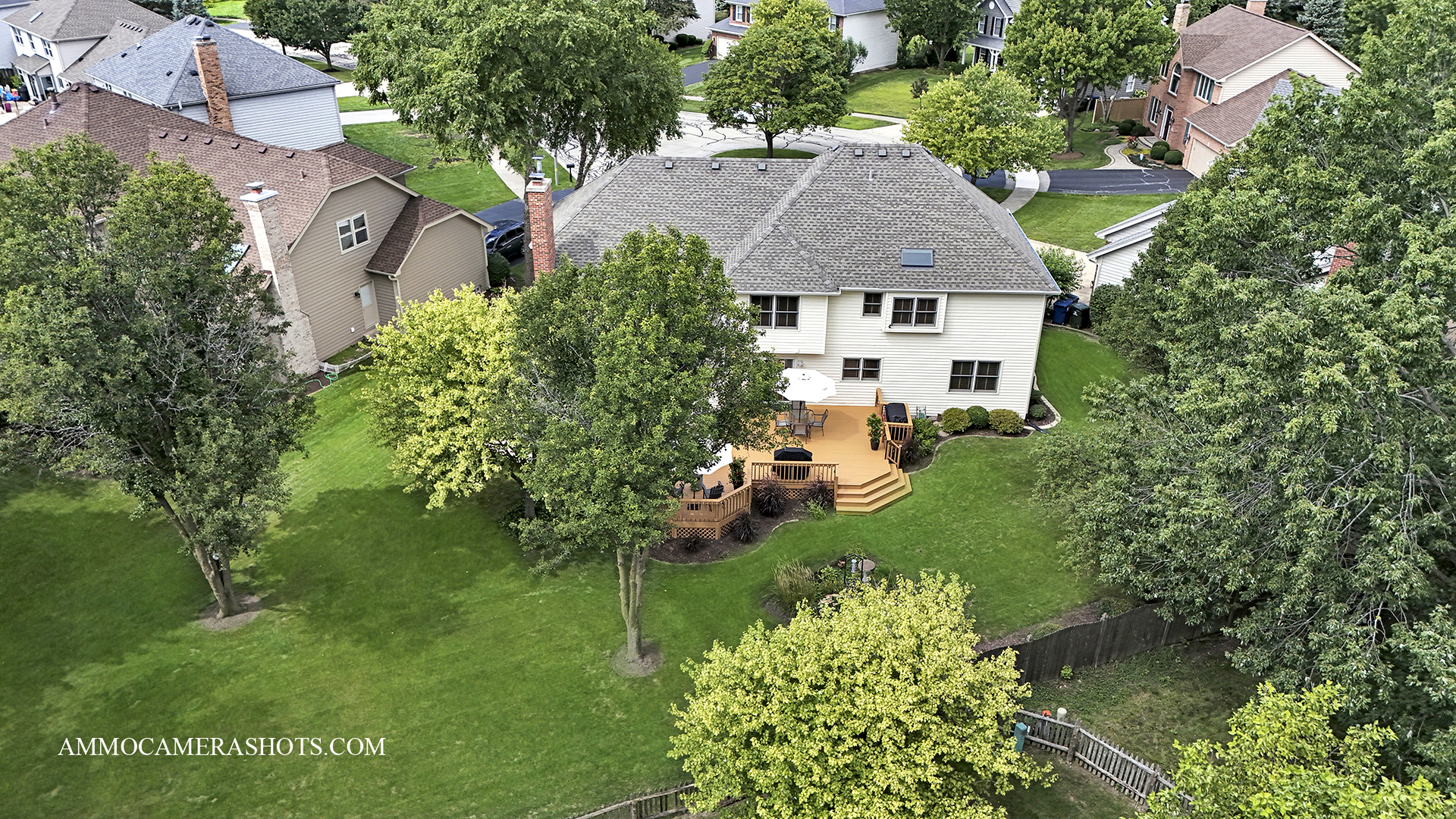Maintained to perfection – and it has an elevator! A custom-designed, Krughoff built home tucked into a quiet River Woods cul-de-sac, just blocks from the elementary school. Original owners take superb care of this wonderful property inside & out. From its sophisticated brick front with manicured landscaping to its super-spacious interior filled with tasteful details, this home has so much to offer. Step inside to a welcoming 2-story foyer and see hardwood floors, sunlit rooms with some crown molding and even French doors. The main level flows easily from the cozy den/office and formal living room and dining rooms into the heart of the home – a generous kitchen with white cabinetry, granite counters, stainless steel appliances, pantry, wine fridge, and an eating area (that fits any shape table). This space provides convenient access to a very large wood deck (re-stained Aug 2025), perfect for BBQs and entertaining. The family room warms up with the floor to ceiling fireplace, vaulted wood beamed ceilings and a wall of windows with a view to the lush greens of the outdoors. Choices…choices…two staircases lead to the 2nd level. Upstairs, four bedrooms including a private, expansive primary suite with whirlpool tub under a skylight, dual sinks, and a huge walk-in closet. A special bedroom features an attached bath designed with accessibility in mind. Wide hallways, oversized doors, and a rare ELEVATOR to all three levels make this home both functional and versatile for a handicapped member or multigenerational living. The finished basement is a true extension of the home – offering a full kitchen and dining area, spacious rec room, 5th bedroom, full bath, and endless storage. Ideal for guests, in-laws, or someone who needs their own space. Outside, enjoy a large yard with room to play, plus a deck big enough for all your outdoor furniture. Notable updates include LG washer/dryer (2023), two hot water heaters (2021), furnace/ac/humidifier (2019) and roof/gutters/skylights (2019). All this in a established neighborhood close to parks, shopping, dining, and just a short drive to downtown Naperville. With District 203 schools – River Woods Elementary, Madison Jr. High, and Naperville Central High – you’ll love calling Salt River Ct home!