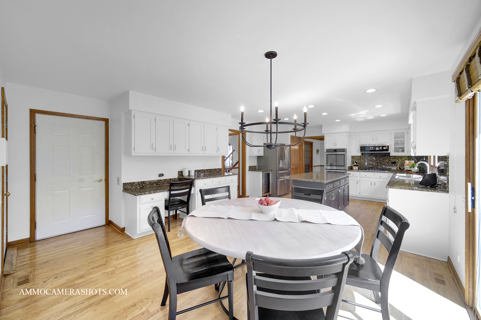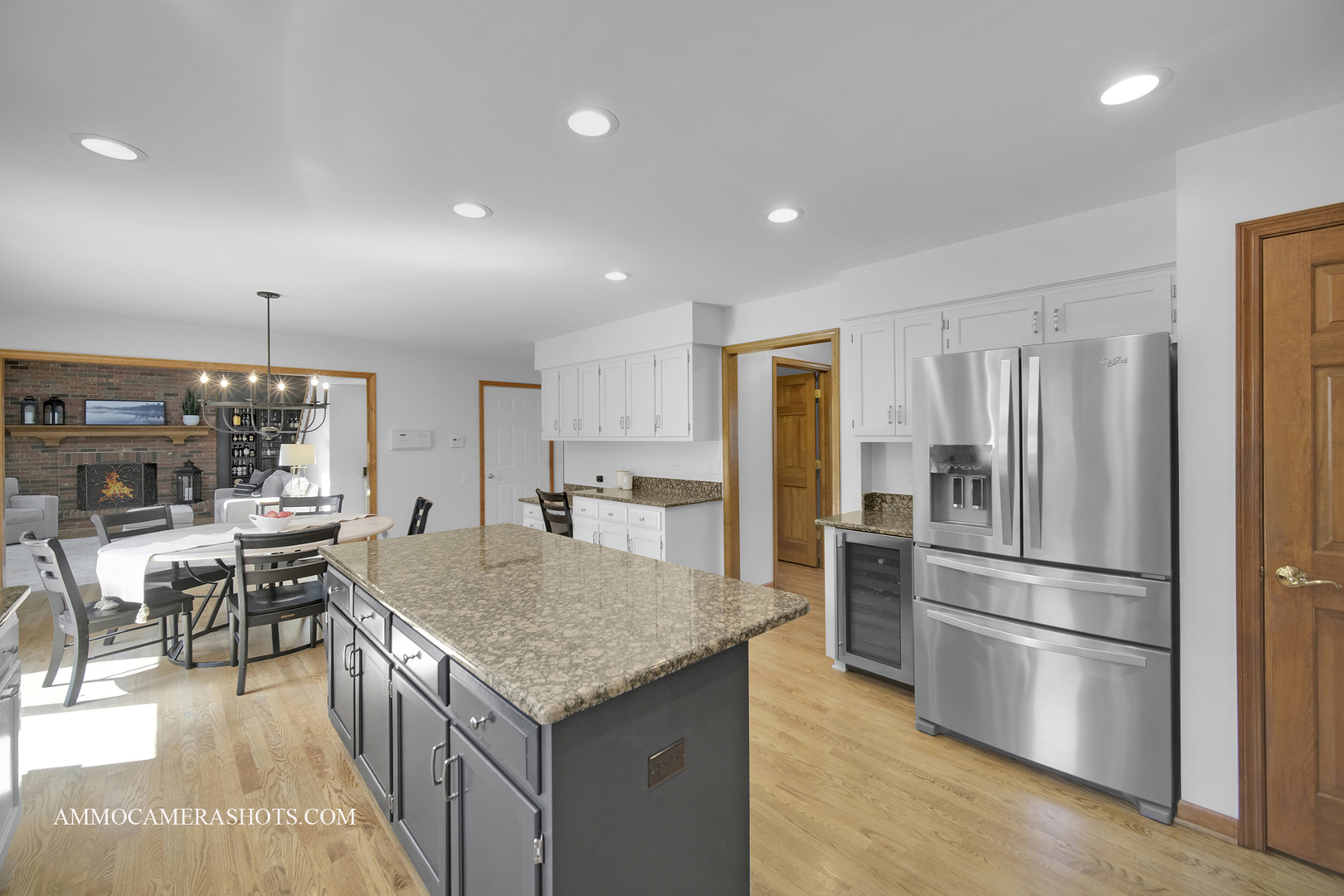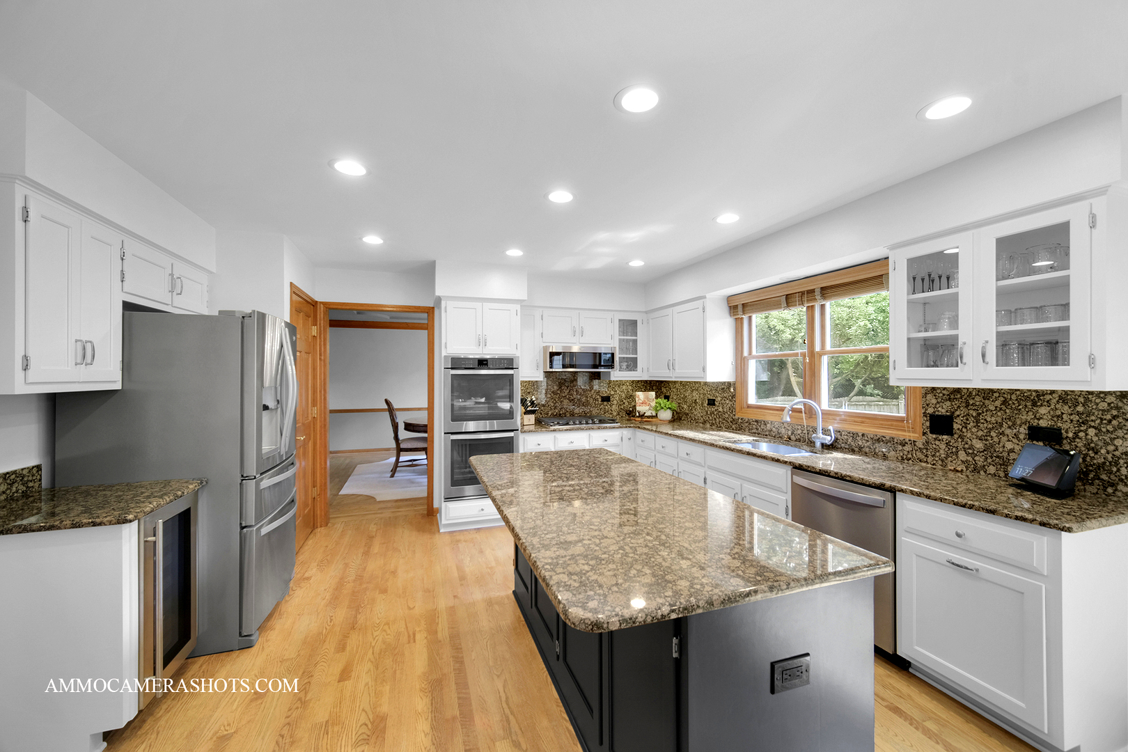Maintained to perfection – and it has an elevator! A custom-designed, Krughoff built home tucked into a quiet River Woods cul-de-sac, just blocks from the elementary school. Original owners take superb care of this wonderful property inside & out. From its sophisticated brick front with manicured landscaping to its super-spacious interior filled with tasteful details, this home has so much to offer. Step inside to a welcoming 2-story foyer and see hardwood floors, sunlit rooms with some crown molding and even French doors. The main level flows easily from the cozy den/office and formal living room and dining rooms into the heart of the home – a generous kitchen with white cabinetry, granite counters, stainless steel appliances, pantry, wine fridge, and an eating area (that fits any shape table). This space provides convenient access to a very large wood deck (re-stained Aug 2025), perfect for BBQs and entertaining. The family room warms up with the floor to ceiling fireplace, vaulted wood beamed ceilings and a wall of windows with a view to the lush greens of the outdoors. Choices…choices…two staircases lead to the 2nd level. Upstairs, four bedrooms including a private, expansive primary suite with whirlpool tub under a skylight, dual sinks, and a huge walk-in closet. A special bedroom features an attached bath designed with accessibility in mind. Wide hallways, oversized doors, and a rare ELEVATOR to all three levels make this home both functional and versatile for a handicapped member or multigenerational living. The finished basement is a true extension of the home – offering a full kitchen and dining area, spacious rec room, 5th bedroom, full bath, and endless storage. Ideal for guests, in-laws, or someone who needs their own space. Outside, enjoy a large yard with room to play, plus a deck big enough for all your outdoor furniture. Notable updates include LG washer/dryer (2023), two hot water heaters (2021), furnace/ac/humidifier (2019) and roof/gutters/skylights (2019). All this in a established neighborhood close to parks, shopping, dining, and just a short drive to downtown Naperville. With District 203 schools – River Woods Elementary, Madison Jr. High, and Naperville Central High – you’ll love calling Salt River Ct home!