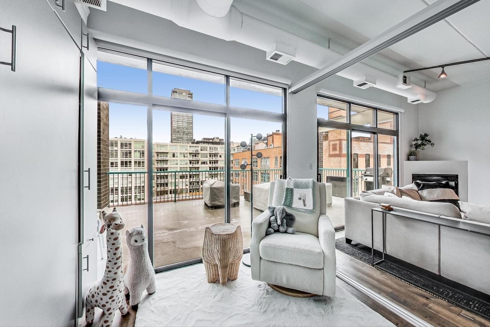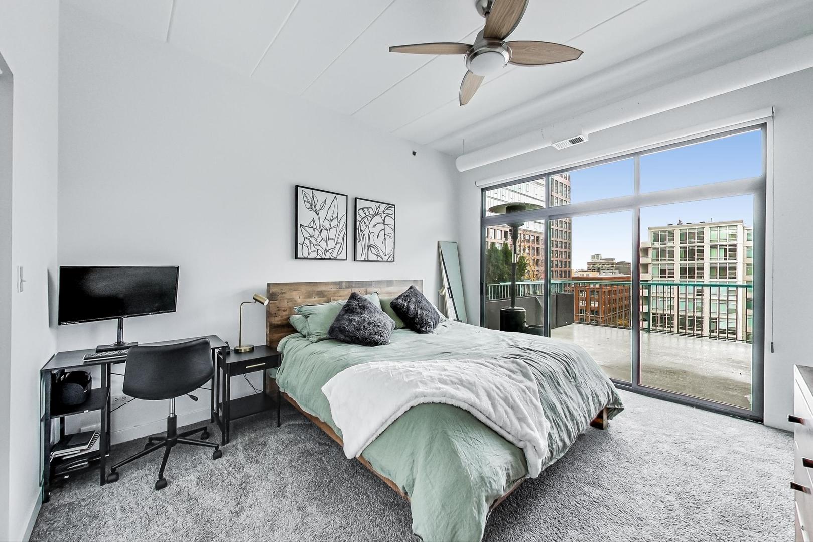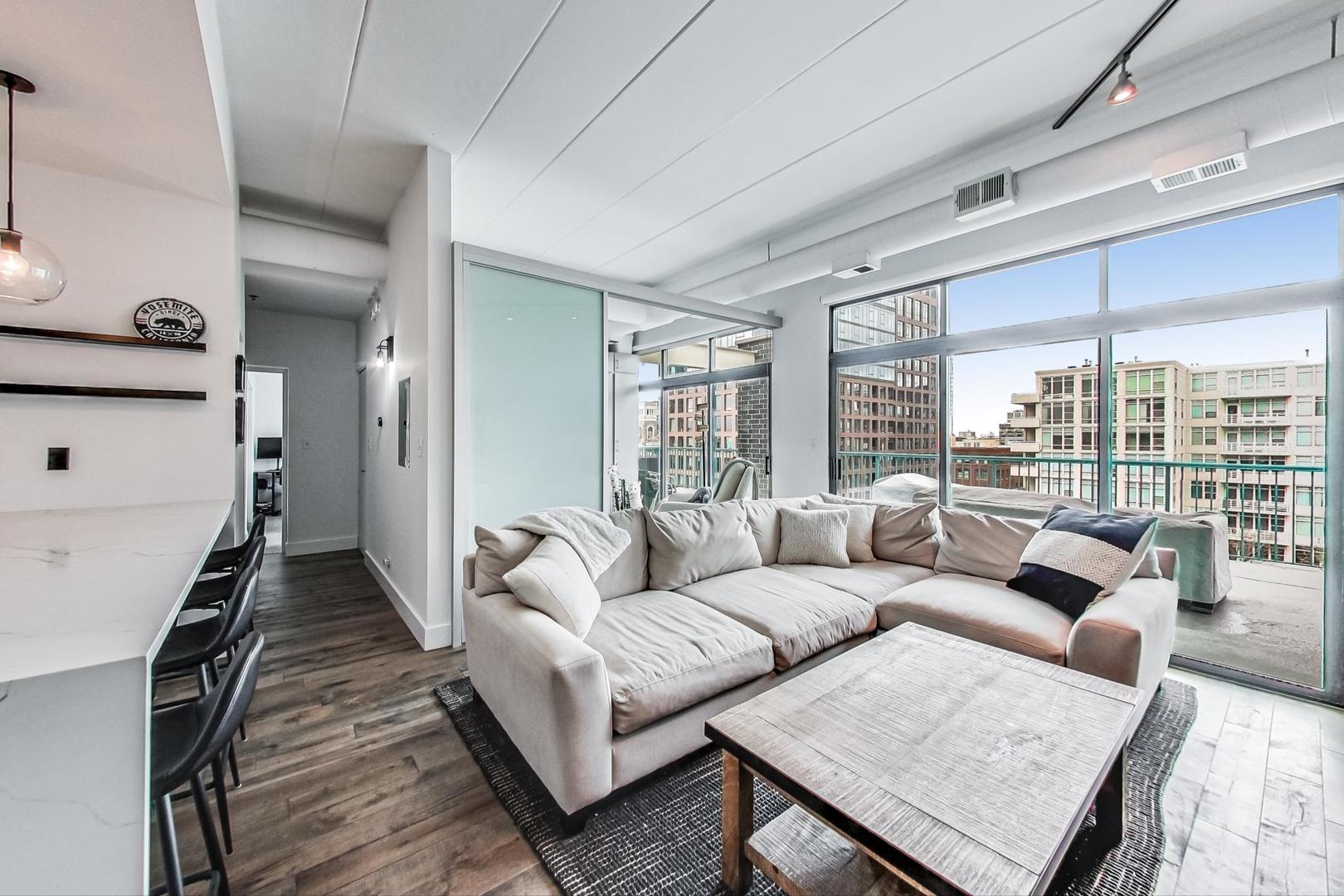 Step into your urban oasis in the heart of West Loop! This stunning condo boasts a recently redone kitchen with sleek 42″ cabinetry and a show-stopping oversized waterfall island with quartz countertops – perfect for your next dinner party or cozy night in. The kitchen seamlessly opens into the living room, creating a spacious, open-concept vibe. The 2nd bedroom features a stylish sliding glass wall off the living room, with an attached Murphy bed and direct access to the expansive 42 x 15 patio. This outdoor haven is ideal for entertaining, offering beautiful views of the vibrant West Loop neighborhood. Enjoy newer hardwood flooring throughout the main living area, while the primary bedroom and living room are outfitted with luxury Hunter Douglas room-darkening roller shades for ultimate comfort. The primary suite includes an en-suite bathroom with a dual vanity and stone tile. Additional, this unit includes an extraordinarily large 15′ x 20′ storage space. Garage parking is also included in the price, making city living that much easier. Walking distance to all the best of West Loop/Fulton Market: trendy restaurants, coffee shops, parks, nightlife, Marianos, CTA bus routes, and the Green Line stop. It’s also a short walk to the Loop or Union Station for easy commutes.
