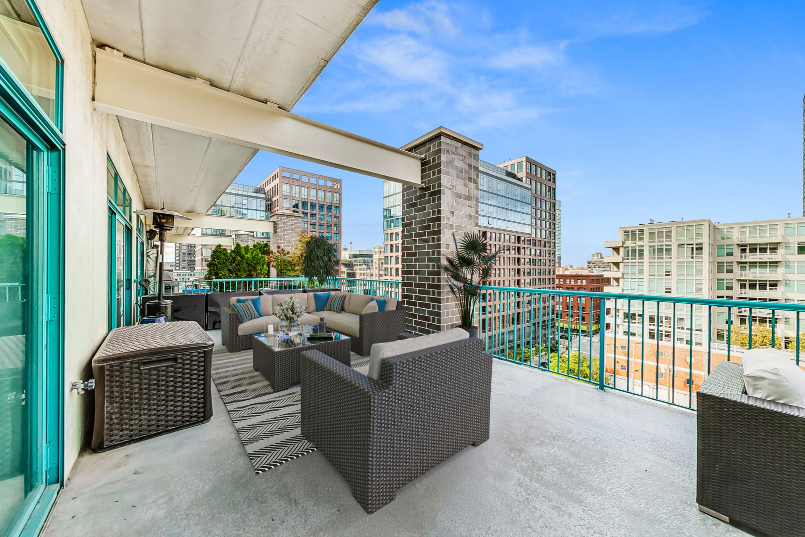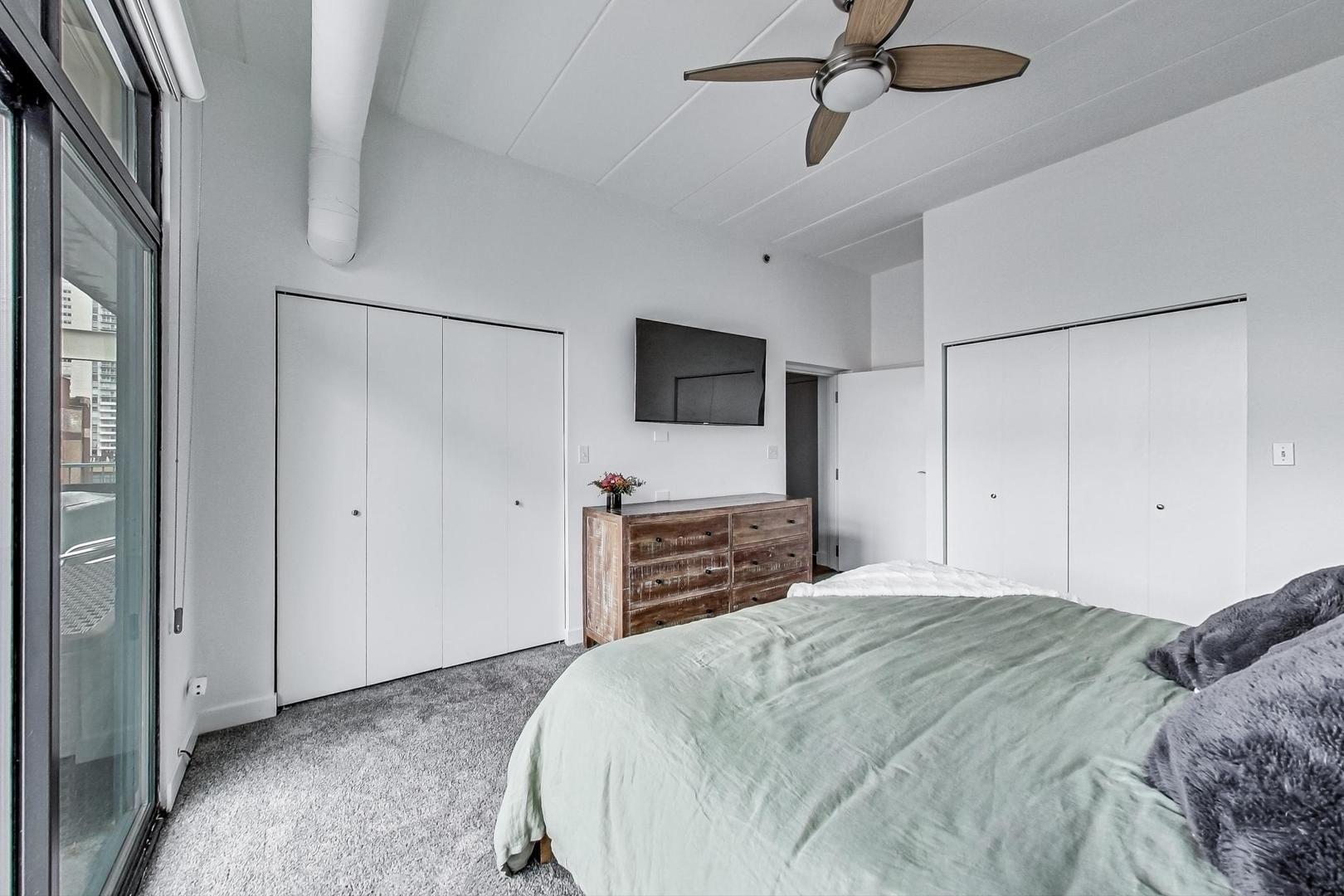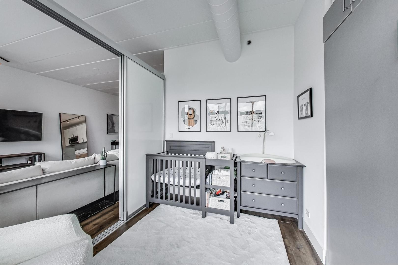 Step into your urban oasis in the heart of West Loop! This stunning condo boasts a recently redone kitchen with sleek 42″ cabinetry and a show-stopping oversized waterfall island with quartz countertops – perfect for your next dinner party or cozy night in. The kitchen seamlessly opens into the living room, creating a spacious, open-concept vibe. The 2nd bedroom features a stylish sliding glass wall off the living room, with an attached Murphy bed and direct access to the expansive 42 x 15 patio. This outdoor haven is ideal for entertaining, offering beautiful views of the vibrant West Loop neighborhood. Enjoy newer hardwood flooring throughout the main living area, while the primary bedroom and living room are outfitted with luxury Hunter Douglas room-darkening roller shades for ultimate comfort. The primary suite includes an en-suite bathroom with a dual vanity and stone tile. Additional, this unit includes an extraordinarily large 15′ x 20′ storage space. Garage parking is also included in the price, making city living that much easier. Walking distance to all the best of West Loop/Fulton Market: trendy restaurants, coffee shops, parks, nightlife, Marianos, CTA bus routes, and the Green Line stop. It’s also a short walk to the Loop or Union Station for easy commutes.