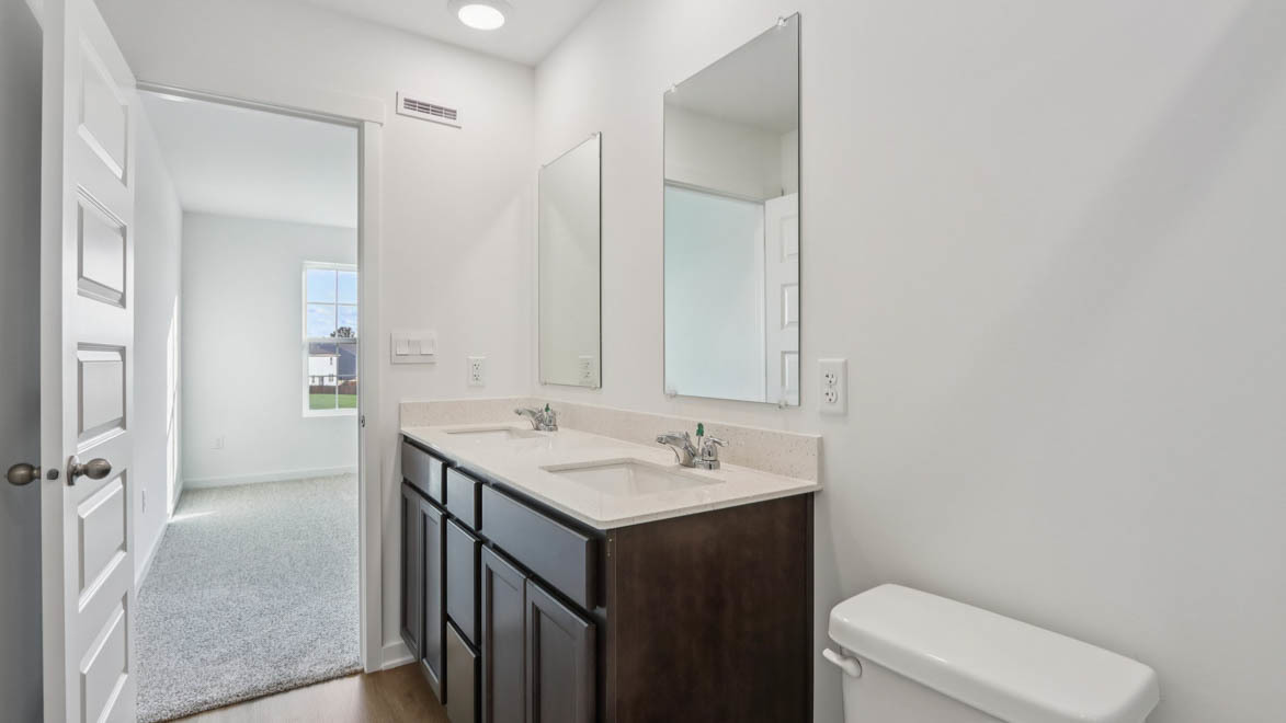 Find yourself at 921 Briar Glen Ct in Hampshire, Illinois, a beautiful new home in our Prairie Ridge community. This townhome will be ready for a spring move-in! Homesite includes a fully sodded yard that is maintained throughout the year as well as snow removal in the winter. This Garfield townhome plan offers 1,756 sq ft of living space with 3 bedrooms and 2.5 baths, and a finished flex room. Walking up to the main level, you will find this home’s open concept living space. The expansive kitchen overlooks both the front dining and back great room areas, making it the ideal space to entertain. Step outside onto your balcony, relax and enjoy your morning coffee. Additionally, your kitchen features designer white soft-close cabinetry, a spacious island with quartz countertops, and pantry. Walking upstairs, enjoy your private get away with your large primary bedroom on its own side of the second floor with en-suite bathroom containing a raised dual quartz vanity and walk in closet. Enjoy the convenience of a second-floor laundry, the second and third bedrooms, and a full second bath. Also, included in this amazing townhome is a finished lower-level bonus room. Great for an at home office, game room, workout space, etc. Luxury vinyl plank flooring throughout the kitchen, bathrooms and laundry. All Chicago homes include our America’s Smart Home Technology. Photos are of a similar home and model home. Actual home built may vary.
