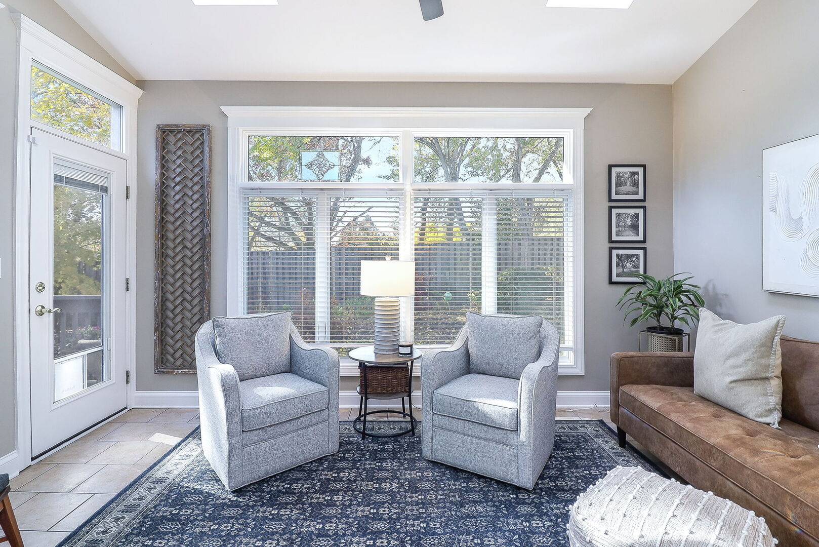Gorgeous, 3 bedroom, 3.1 bath St Charles Townhome with many updates located in the prestigious Oak Crest Community. Prepare to be impressed by the abundance of natural light filling the space with large windows offering pretty seasonal views. Freshly painted and newly refinished hardwood floors (2024) throughout the main level, with wood blinds and crown molding. Impressive two-story living room with brick, gas log fireplace. The formal dining room is currently used as an office space. The eat-in kitchen at the heart of the home features abundant cabinet and counter space, new refrigerator and stovetop. The kitchen is also open to the light and airy sunroom with French doors and vaulted ceiling with sky lights. Private back deck includes natural gas hookup for the grill and views of professional landscaped back yard. Powder room with new pedestal sink (2025). The mudroom/laundry combo with new utility sink is attached to the two-car garage offering additional storage and a convenient, protected hose connection. New carpet throughout second floor (2024). The large Primary Suite offers beautiful, updated spa bathroom and walk-in closet. Two additional bedrooms and updated hall bathroom complete the second floor. Finished deep pour basement with oversized family room, full bathroom, egress window and ample storage. New Roof and Gutters (2019), New Hot Water Heater (2024). Premium location, just minutes to Downtown Saint Charles, Downtown Geneva and Metra Train Station. A short walking path connects to the walking, running, and biking trails of Leroy Oakes Forest Preserve. A short drive to scenic Pottawatomie Park, Mount Saint Mary Park, and James O. Breen Community Park. Excellent schools at all levels in Unit School District 303.