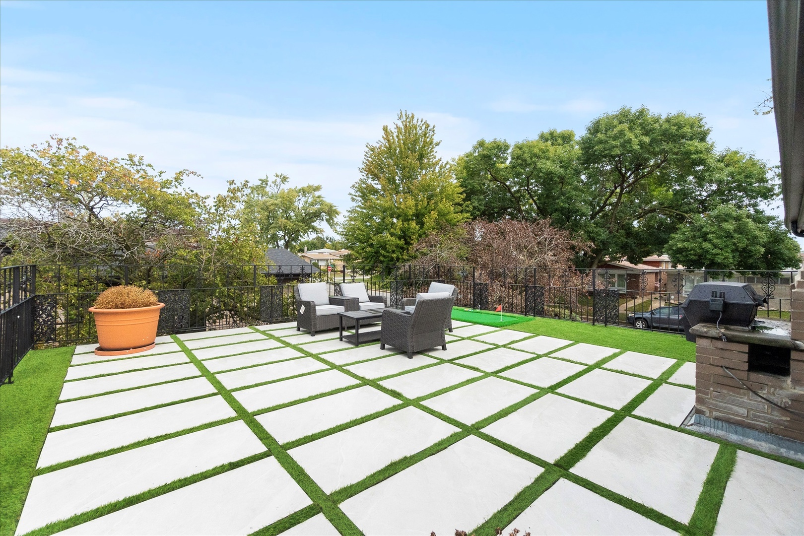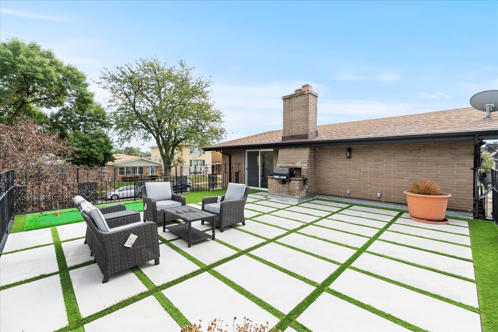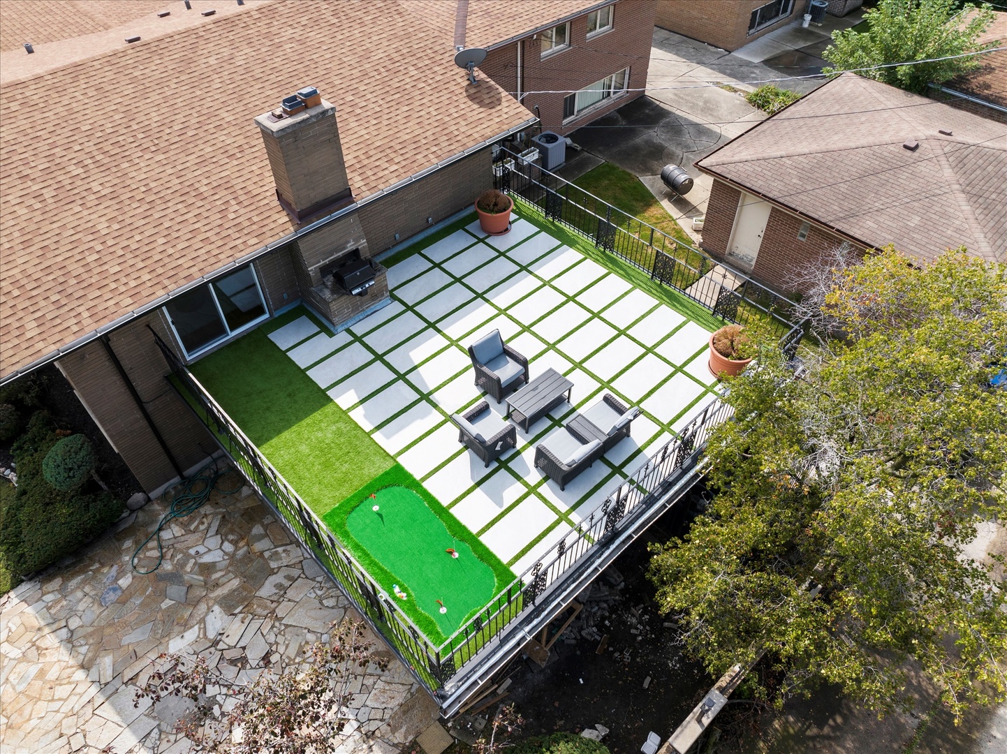 Welcome to 9222 S Cregier Ave – a Pill Hill masterpiece offering over 4,000 square feet of luxurious living in one of Chicago’s most sought-after neighborhoods. This beautifully updated mid-century gem seamlessly blends timeless architecture with contemporary sophistication. Featuring four spacious bedrooms-three with its own private en-suite bathroom-making a total of four and a half baths, this home is designed for both comfort and elegance. The outstanding chef’s kitchen showcases solid wood cabinets, Carrera marble countertops, a wine frig, high-end oven with built-in air fryer, a walk-in pantry, and a separate island ideal for prep or casual dining. Three cozy fireplaces create warmth and ambiance throughout. Step outside to the rooftop terrace, complete with a built-in grill and putting green-perfect for entertaining or relaxing. The private home theater is equipped with an 85-inch TV and surround sound system, creating the ultimate entertainment experience. Upgrades include all-new windows, a brand-new intercom system, two new furnaces, two humidifiers, and a whole-house generator, offering modern efficiency and peace of mind. Superior finishes, thoughtful updates, and impeccable craftsmanship set this home apart. Too much to mention! Don’t miss your chance to own a truly unique and luxurious residence in the heart of Pill Hill. A true statement home!