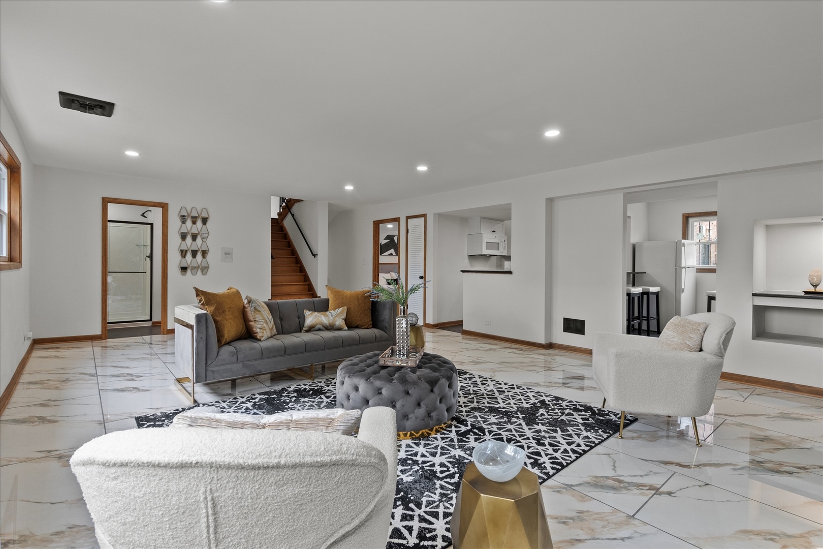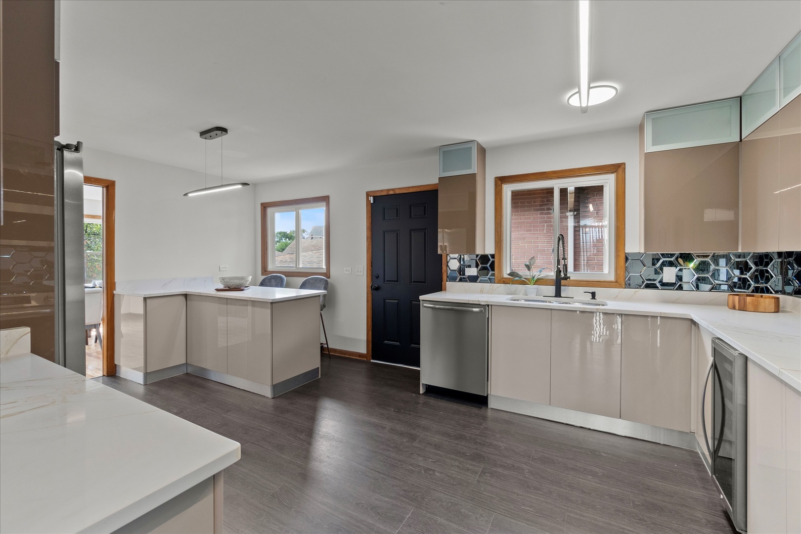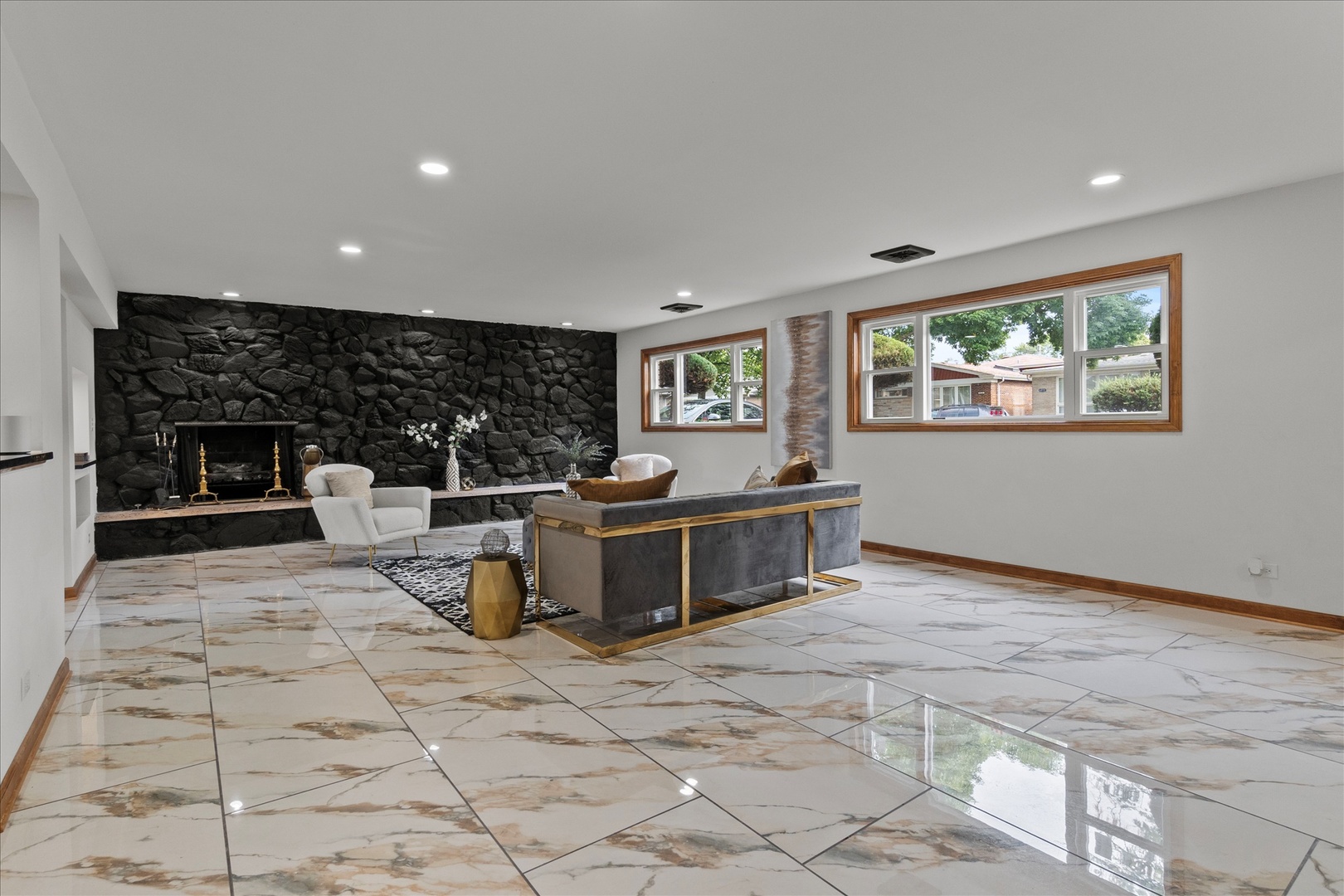 Welcome to 9222 S Cregier Ave – a Pill Hill masterpiece offering over 4,000 square feet of luxurious living in one of Chicago’s most sought-after neighborhoods. This beautifully updated mid-century gem seamlessly blends timeless architecture with contemporary sophistication. Featuring four spacious bedrooms-three with its own private en-suite bathroom-making a total of four and a half baths, this home is designed for both comfort and elegance. The outstanding chef’s kitchen showcases solid wood cabinets, Carrera marble countertops, a wine frig, high-end oven with built-in air fryer, a walk-in pantry, and a separate island ideal for prep or casual dining. Three cozy fireplaces create warmth and ambiance throughout. Step outside to the rooftop terrace, complete with a built-in grill and putting green-perfect for entertaining or relaxing. The private home theater is equipped with an 85-inch TV and surround sound system, creating the ultimate entertainment experience. Upgrades include all-new windows, a brand-new intercom system, two new furnaces, two humidifiers, and a whole-house generator, offering modern efficiency and peace of mind. Superior finishes, thoughtful updates, and impeccable craftsmanship set this home apart. Too much to mention! Don’t miss your chance to own a truly unique and luxurious residence in the heart of Pill Hill. A true statement home!