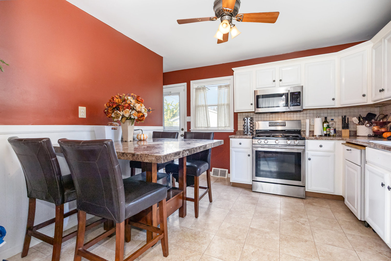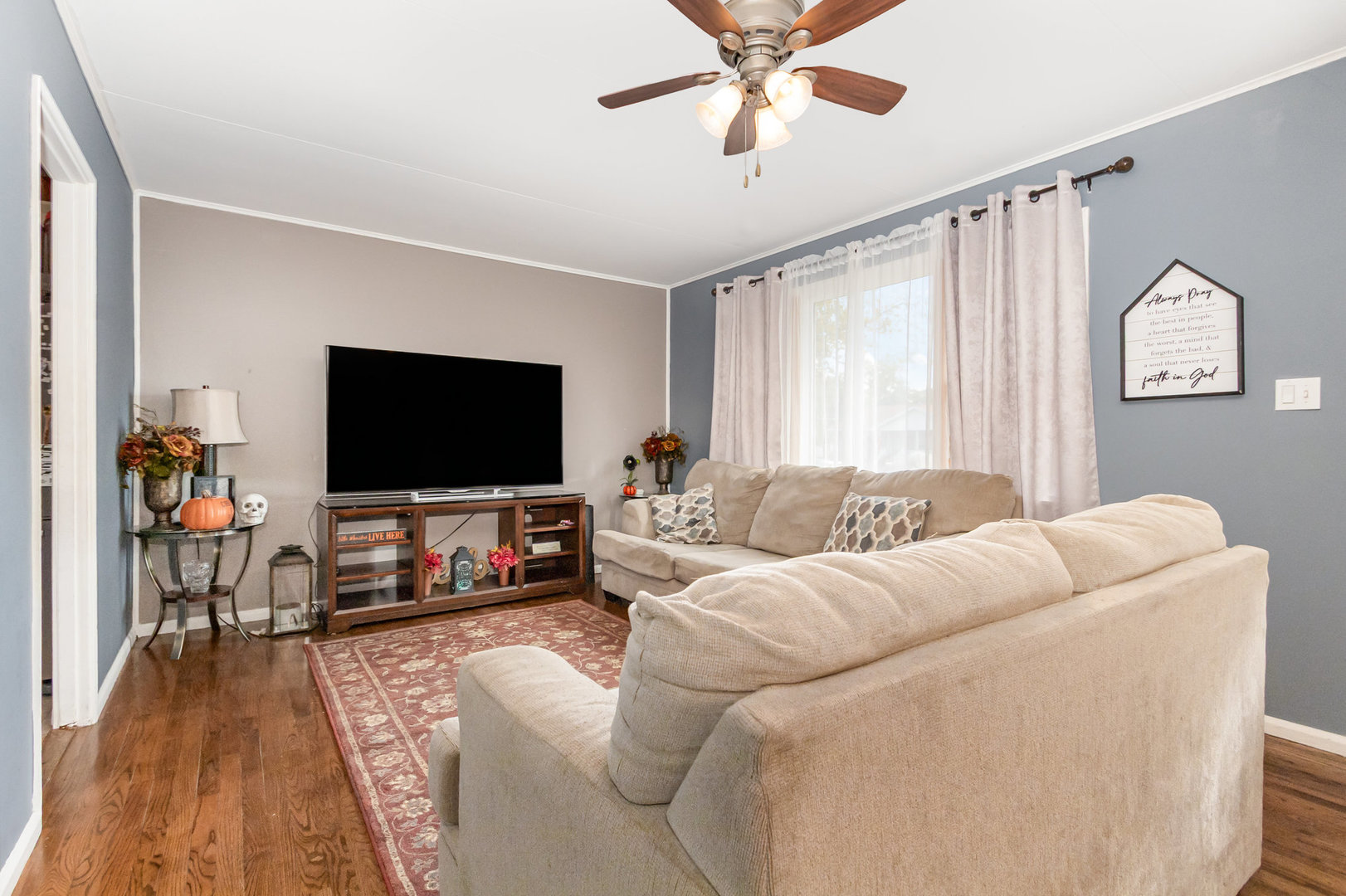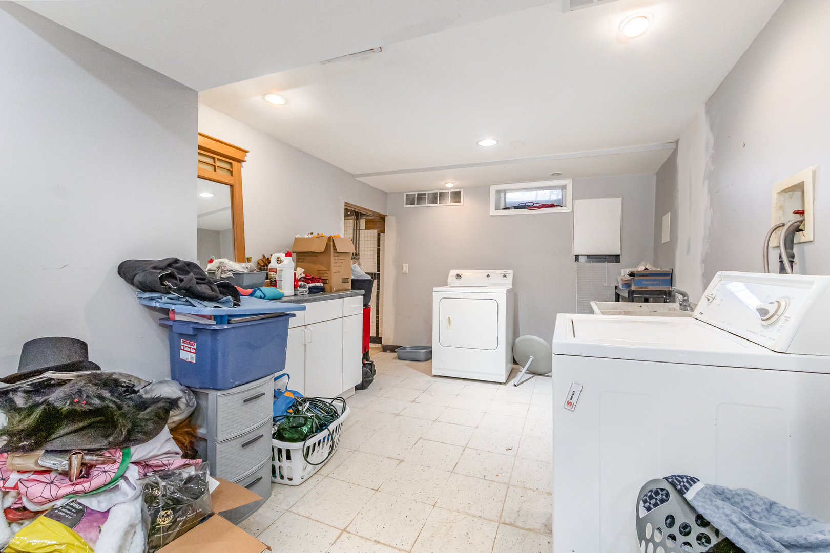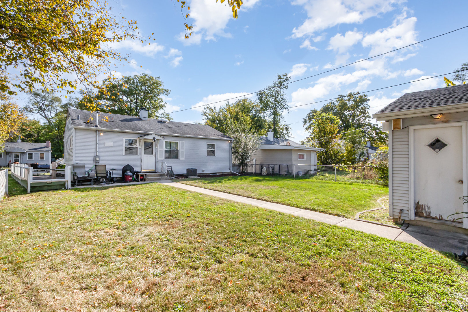 Cute home with 2 big bedrooms on the main level. Master bedroom with walk in closet. Hardwood floors in 2nd bedroom with living room. Eat in kitchen with stainless steal appliances all staying in the home. Finished basement with option for family room or 3rd bedroom. Basement also has a half bath and a huge laundry room washer and dryer included. Home has a huge fenced in yard with a patio and a detached 2 car garage. New HVAC system installed in August 2023. Home is being sold as is.
