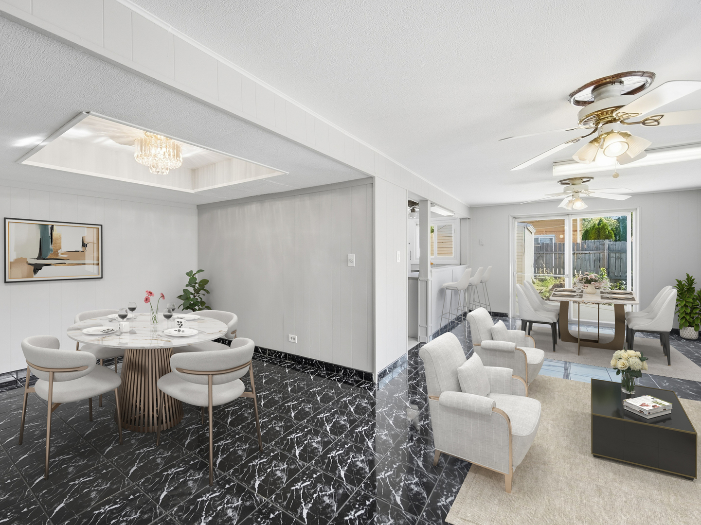 Don’t miss this rare opportunity to own a spacious 4-bedroom duplex in Des Plaines that lives like a single-family home-without the added cost of HOA fees! With low property taxes and an affordable price point, this home is a smart choice for anyone looking for value and space in a prime location. Enjoy the privacy of your own fenced yard and patio, perfect for outdoor gatherings, pets, or gardening. Inside, the bright living room features vaulted ceilings and large windows that fill the space with natural light. A formal dining room makes entertaining easy, while all 4 bedrooms are conveniently located on the same level-offering comfort and functionality for today’s lifestyle. The location adds to the value: just minutes to I-294, Pace bus service to Metra and the Cumberland Blue Line, plus close to Golf Mill Mall, grocery stores, restaurants, and more. Dee Park Recreation Center is within walking distance for year-round activities. With its unbeatable combination of price, low taxes, no monthly HOA, and commuter-friendly access to Chicago, this home is an incredible find. Bring your decorating ideas and start building equity today!