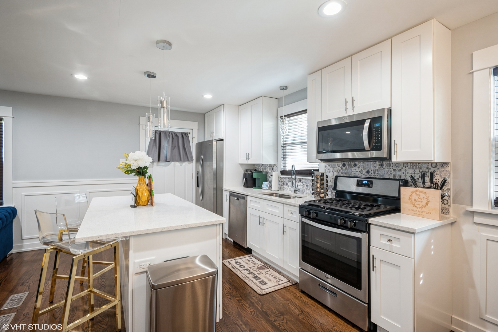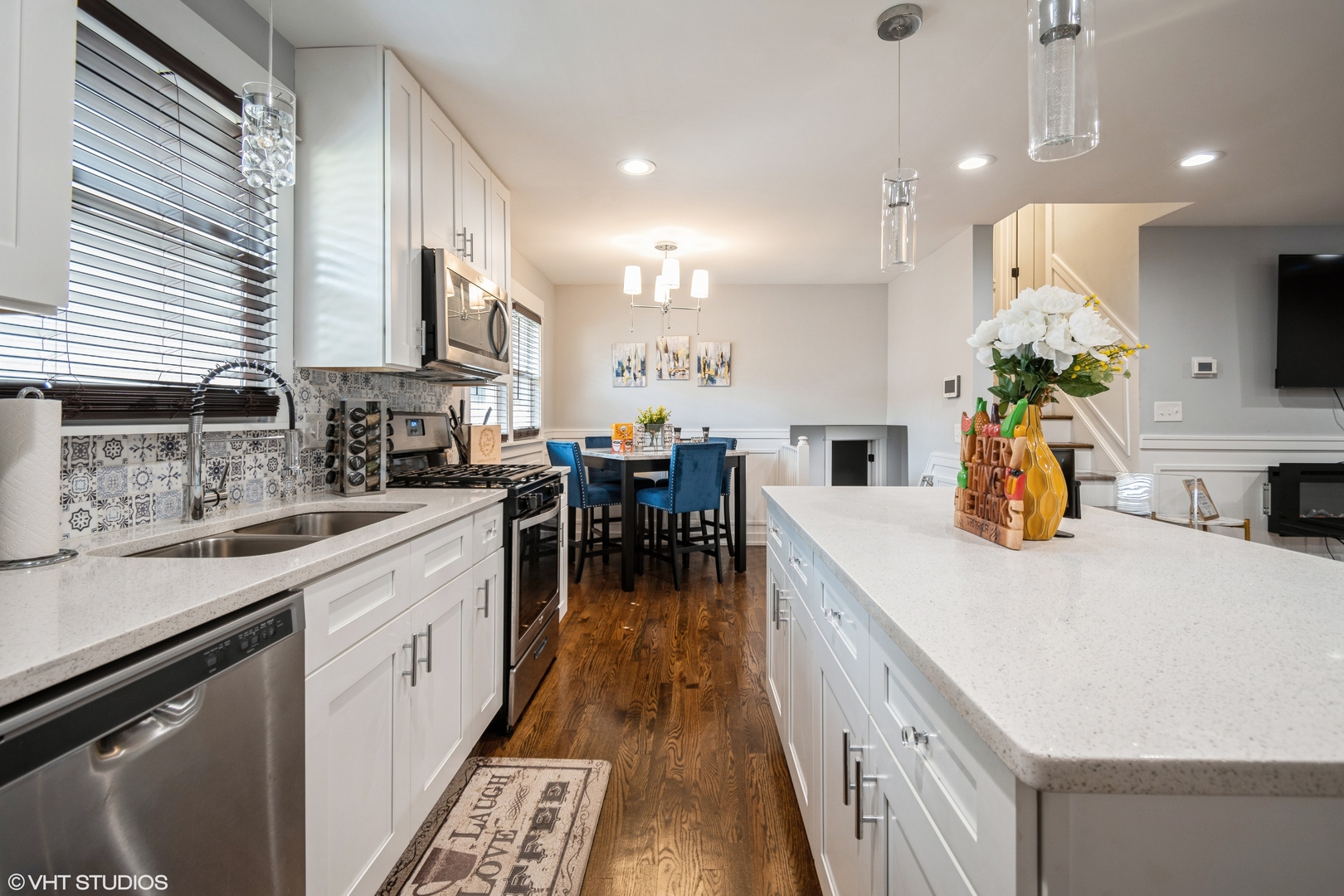 This beautifully renovated brick split-level home, located on a private cul-de-sac, offers modern living at its finest. The spacious eat-in kitchen features custom white shaker cabinets, a central island, high-end stainless steel appliances, and quartz countertops. The open-concept layout seamlessly connects the kitchen, dining, and living areas, perfect for entertaining or family time. Enjoy the convenience of an expansive, fenced-in backyard that includes a new concrete driveway and a custom-built 2-car garage. Modern upgrades in the last 3 years include new plumbing, electrical work with can lighting, and a central air conditioning system. This home is a must-see! Conveniently located near highway access and shopping on Lincoln Avenue.