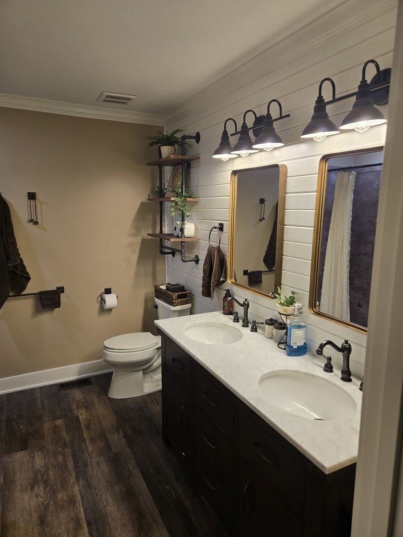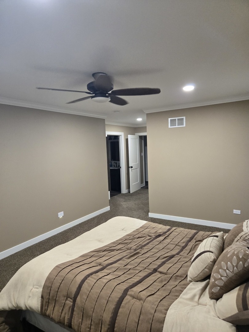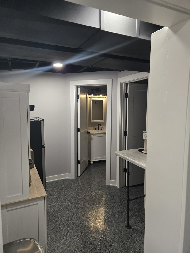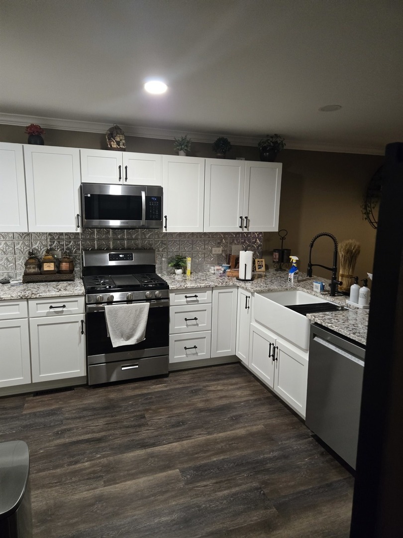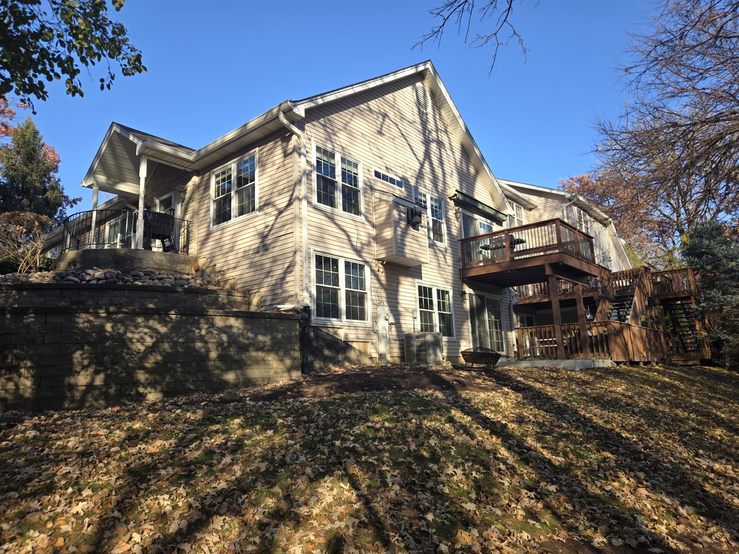 4BR/3BA townhome with walk out basement that backs to private wooded area. Main Level has 2BR/2BA. Walkout Basement has 2BR/1BA. Complete remodel in 2024. 2 Car attached finished garage with canned lighting, epoxy floor and gas heat. Main level Laundry Room features new stainless-steel washer/dryer, slop sink, and cabinet storage. Updated kitchen with crown molding, canned lighting, granite counter tops, new cabinets with accent lighting, all new stainless-steel appliances, pantry and farmhouse sink. Eating area with crown molding and sliding door to new (2025) private deck. Spacious family room with custom stone wall, gas fireplace, vaulted ceiling, skylights and coat closet with motion lighting and shelving unit. Master bedroom with canned lighting, crown molding, ceiling fan, and huge walk-in closet with crown molding and built-in shelving with shoe rack. Master bath with crown molding, shiplap wall, dual vanity, shower, & closet with built-in shelving. Bedroom #2 has vaulted ceiling and closet with built-in shelving unit. Main BA includes new vanity, shiplap wall, crown molding and tub/shower. Walk Out Basement Features include Epoxy flooring, full BA with shower, 3 storage areas and 2 bedrooms. One bedroom features canned lighting and walk-in closet with built-in shelving and is currently used as an office. The other bedroom is currently used as a workout room. Living area with canned lighting, sliding door to new (2025) concrete patio. 3 separate storage areas (one with crawl space), storage shelves/cabinets and a utility room.