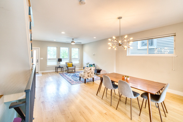 Live in the heart of Bridgeport, one of Chicago’s most vibrant and connected neighborhoods! This 4BR, 3.5BA home sits on a longer-than-standard lot, giving you a generous yard while still enjoying close proximity to downtown. Enjoy abundant natural light throughout the day in an open floor plan with cathedral ceilings, a front bay window, hardwood floors, and a gourmet kitchen with island and stainless steel appliances-perfect for gatherings. The primary suite offers a walk-in closet, double vanity, and European shower. A finished basement adds a family room, guest bedroom, full bath, laundry, and storage. Newer construction featuring NEST thermostat, high efficiency dual zone HVAC, enhanced exterior envelope sealing, high performing windows, low VOC paints, etc. Outside, relax on the rear deck with gas line, fully fenced yard, and 2-car garage. Steps from neighborhood parks, coffee shops, restaurants, White Sox Park, and easy public transit. Walking distance to the vibrant Morgan St where Bridgeport Art Center and many coffee shops and restaurants are located! Schedule your private tour today!