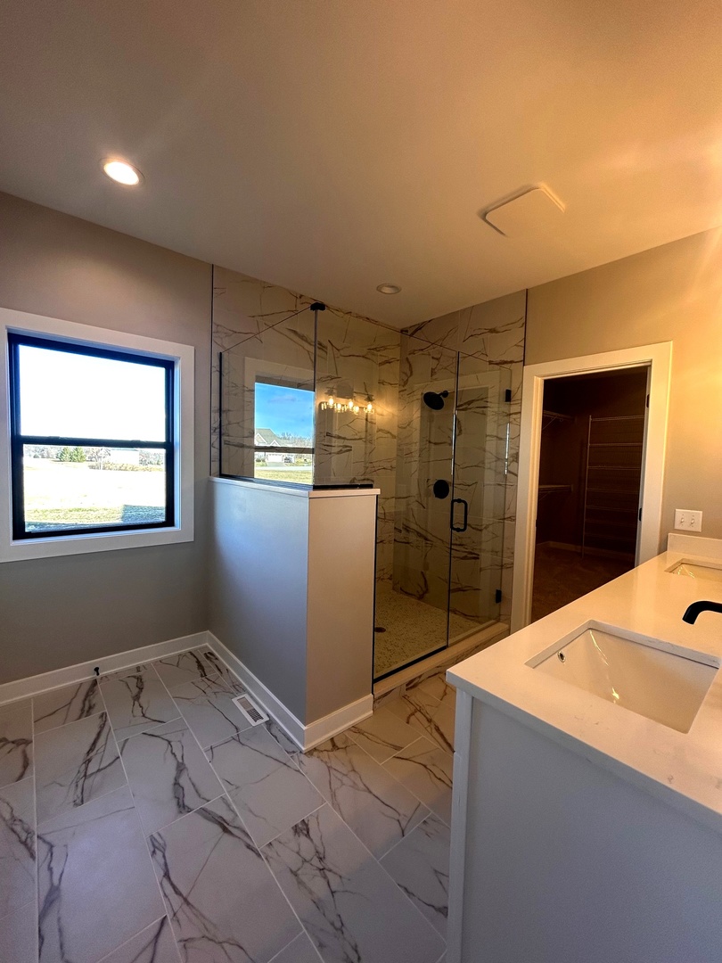 Welcome to this stunning brand-new 4-bedroom, 2.5-bath ranch-style home, offering modern comfort and timeless design. As you step inside, you’ll be greeted by spacious open-concept living, highlighted by soaring vaulted ceilings that create an airy, expansive feel throughout. The thoughtfully designed floor plan features a bright and inviting great room perfect for entertaining, with a modern, sleek fireplace wall. The kitchen boasts quartz countertops, high-end cabinetry, and stainless steel appliances, with a generous island for added prep space. Whether you’re hosting a dinner party or enjoying a casual meal, this kitchen offers both style and function. The kitchen also includes a large dining space overlooking the great room, making for seamless gatherings. The primary suite is a serene retreat with a fabulous on suite bathroom featuring dual vanities, and a large, separate shower for the ultimate relaxation experience. Three additional well-sized bedrooms offer ample closet space and easy access to the full bath. The exterior showcases a welcoming covered front and back porch, perfect for enjoying your morning coffee or relaxing at sunset. Set in a peaceful neighborhood, this home offers the perfect blend of modern amenities and ranch-style charm. With beautiful finishes and plenty of space to grow, this home is ready to welcome its new owners-schedule a tour today!